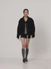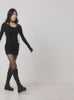 shirred-long-sleeve-mini-dress-cn411 / Black