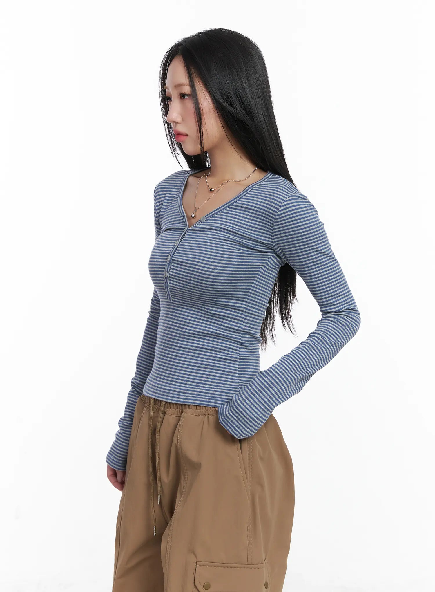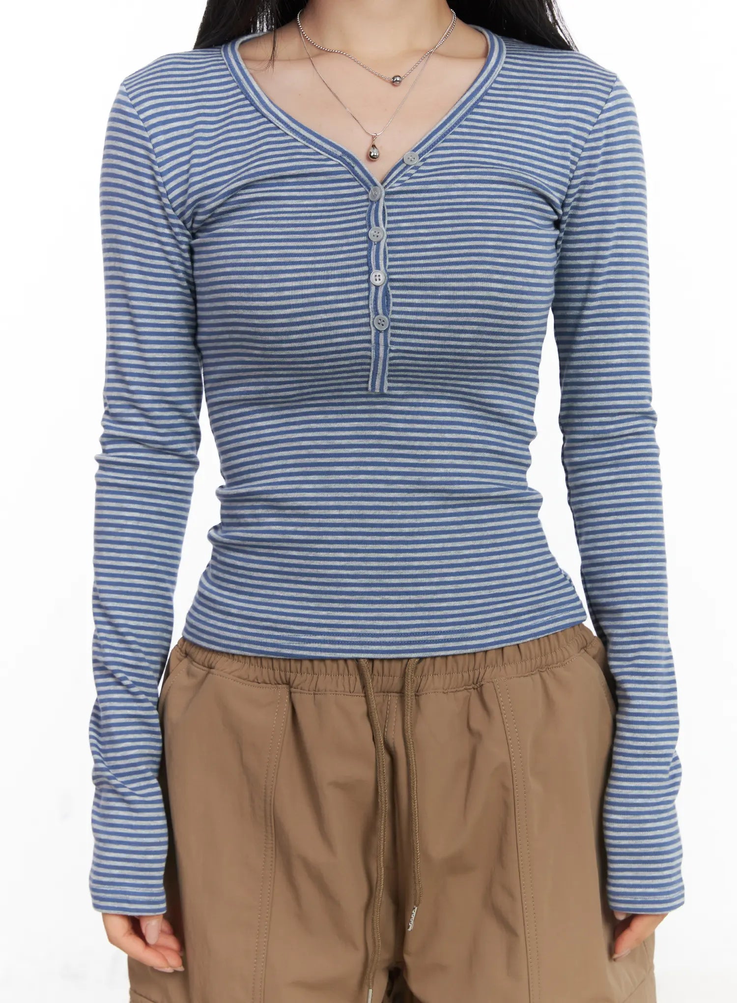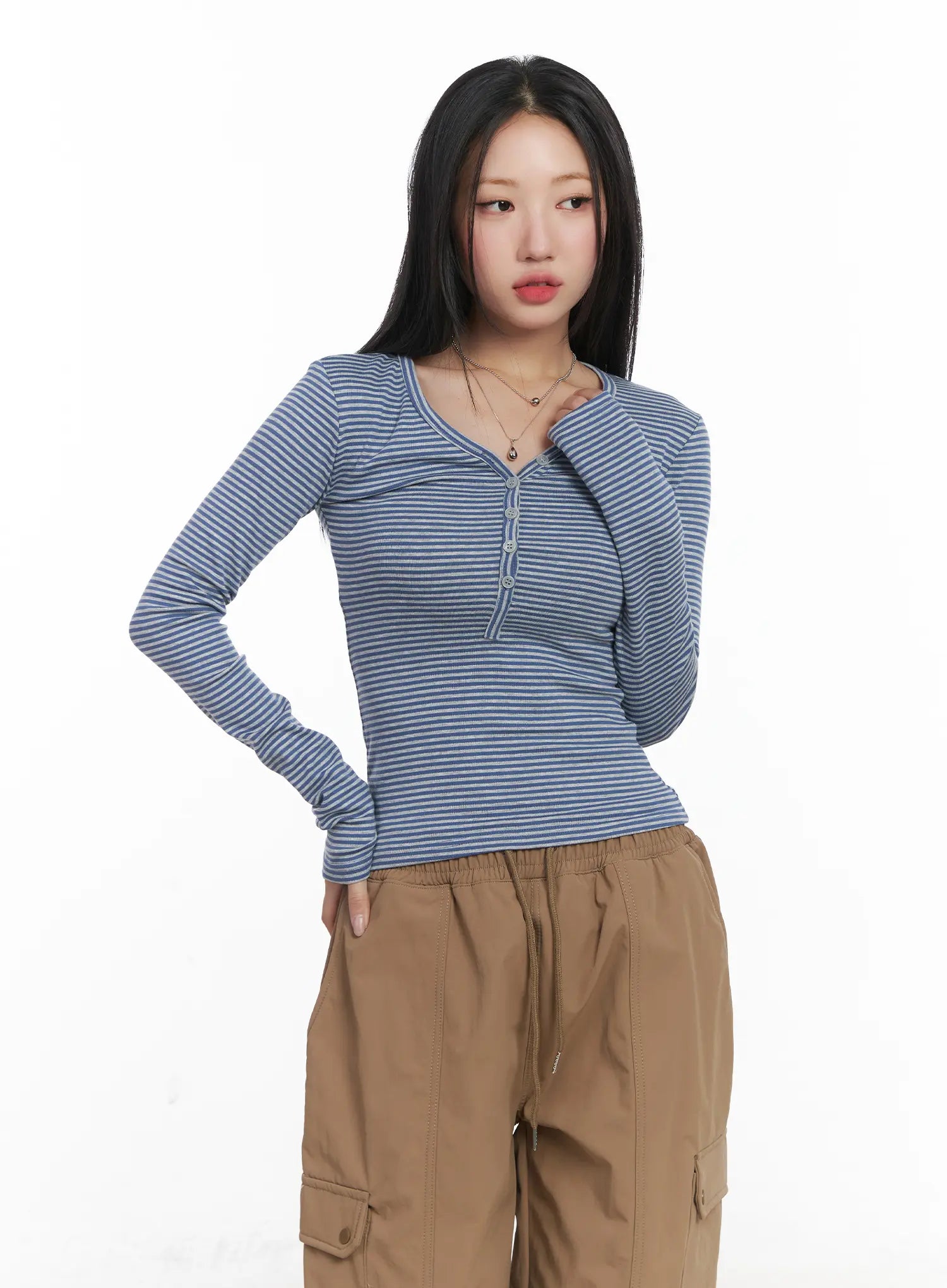 Striped Ribbed Long Sleeve Tee CD530