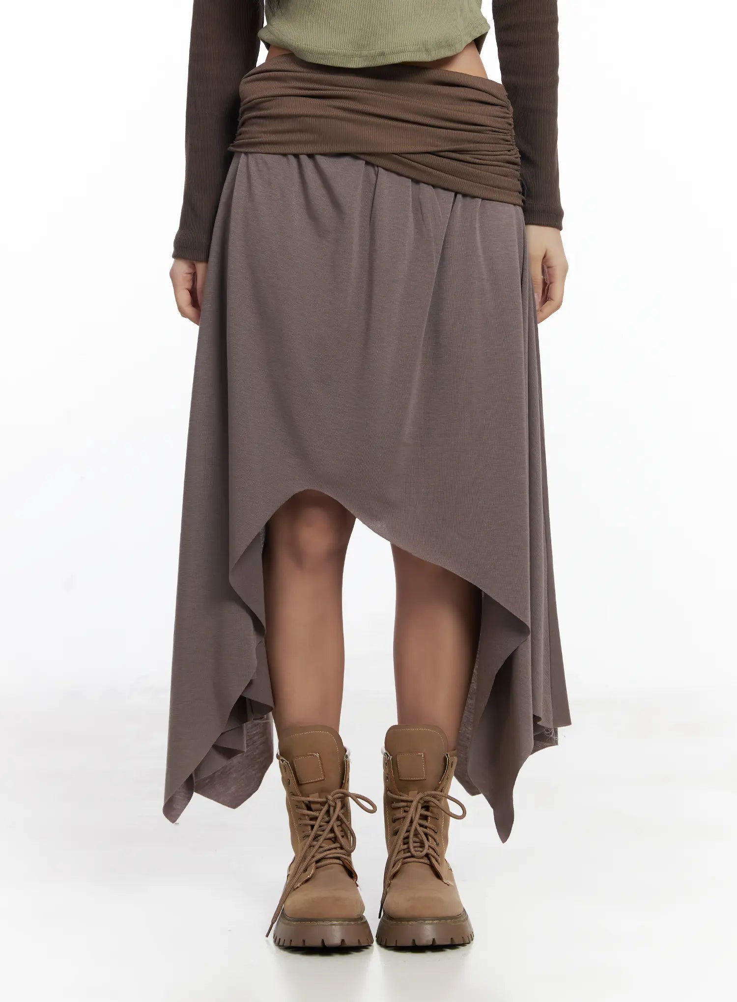 Asymmetric Shirred Maxi Skirt CJ515