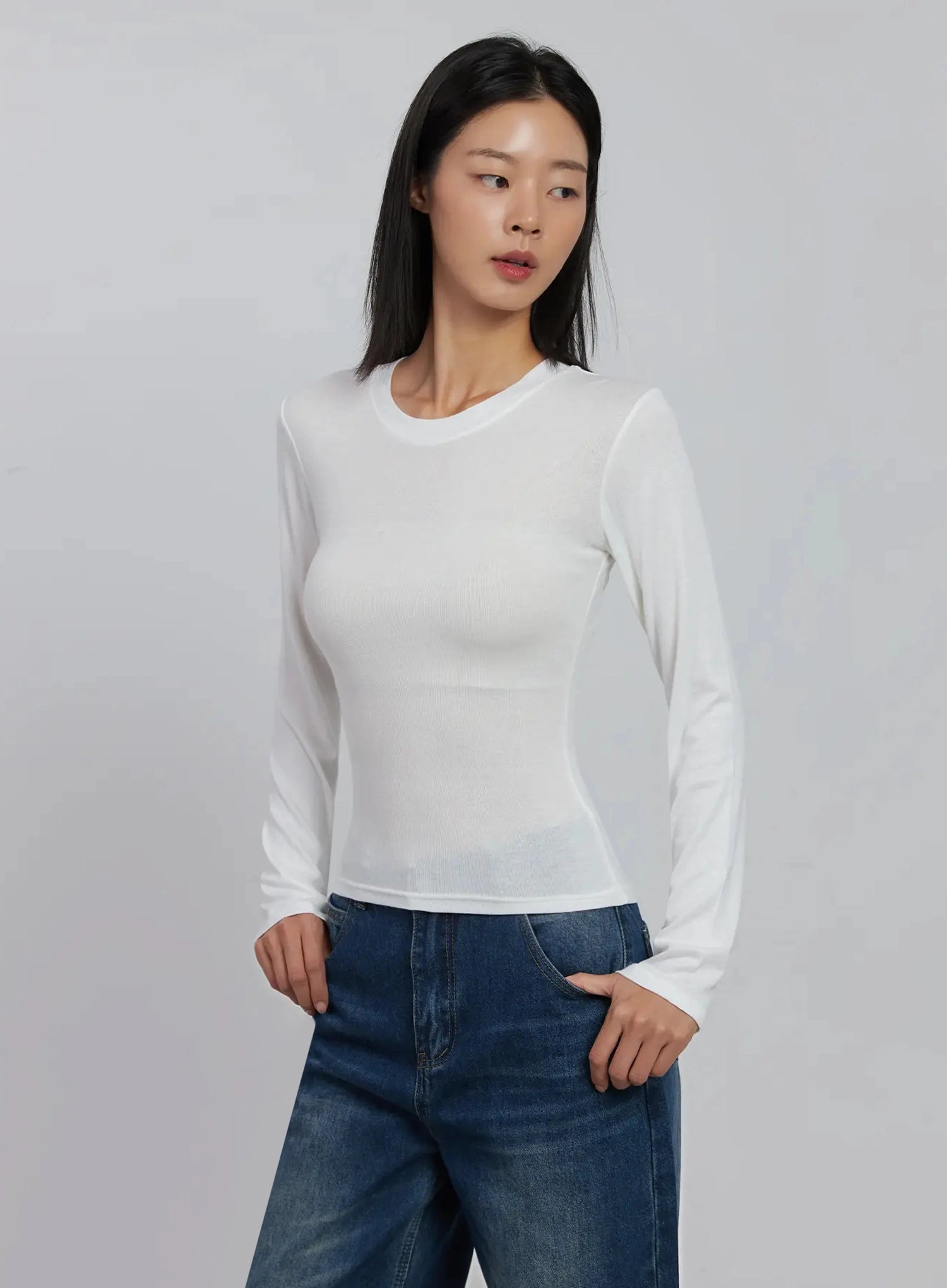Slim Round Long Sleeve Top IJ508