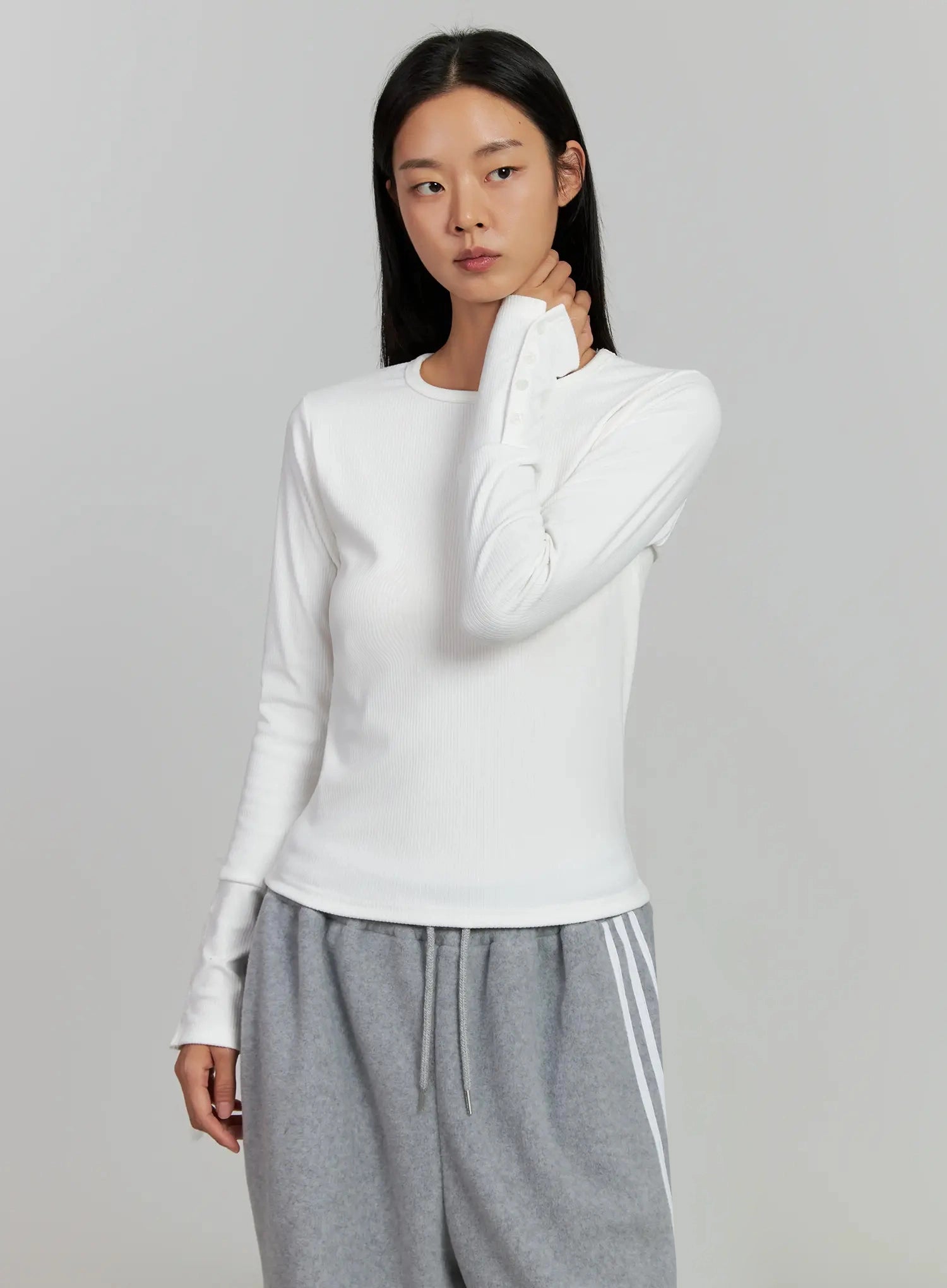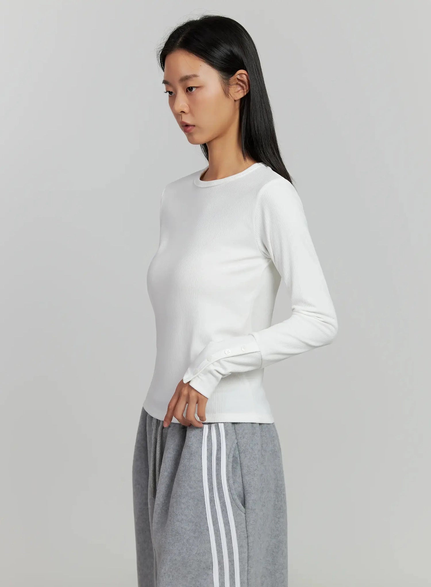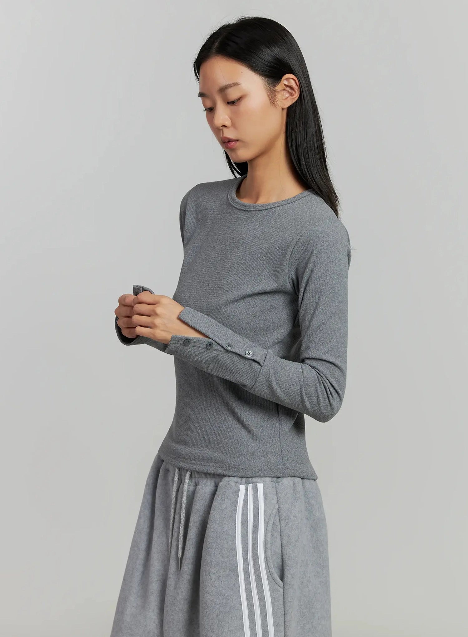 Button Sleeve Ribbed Top IJ505