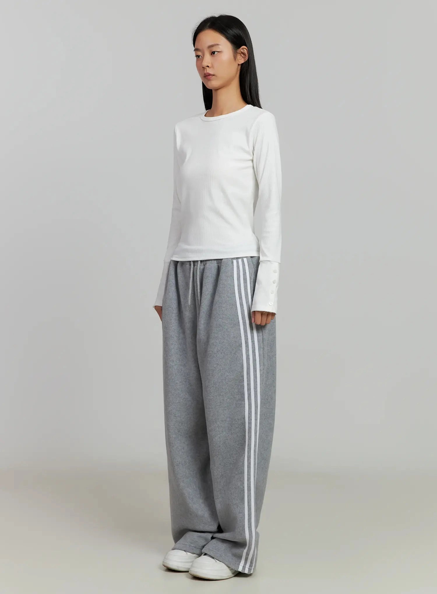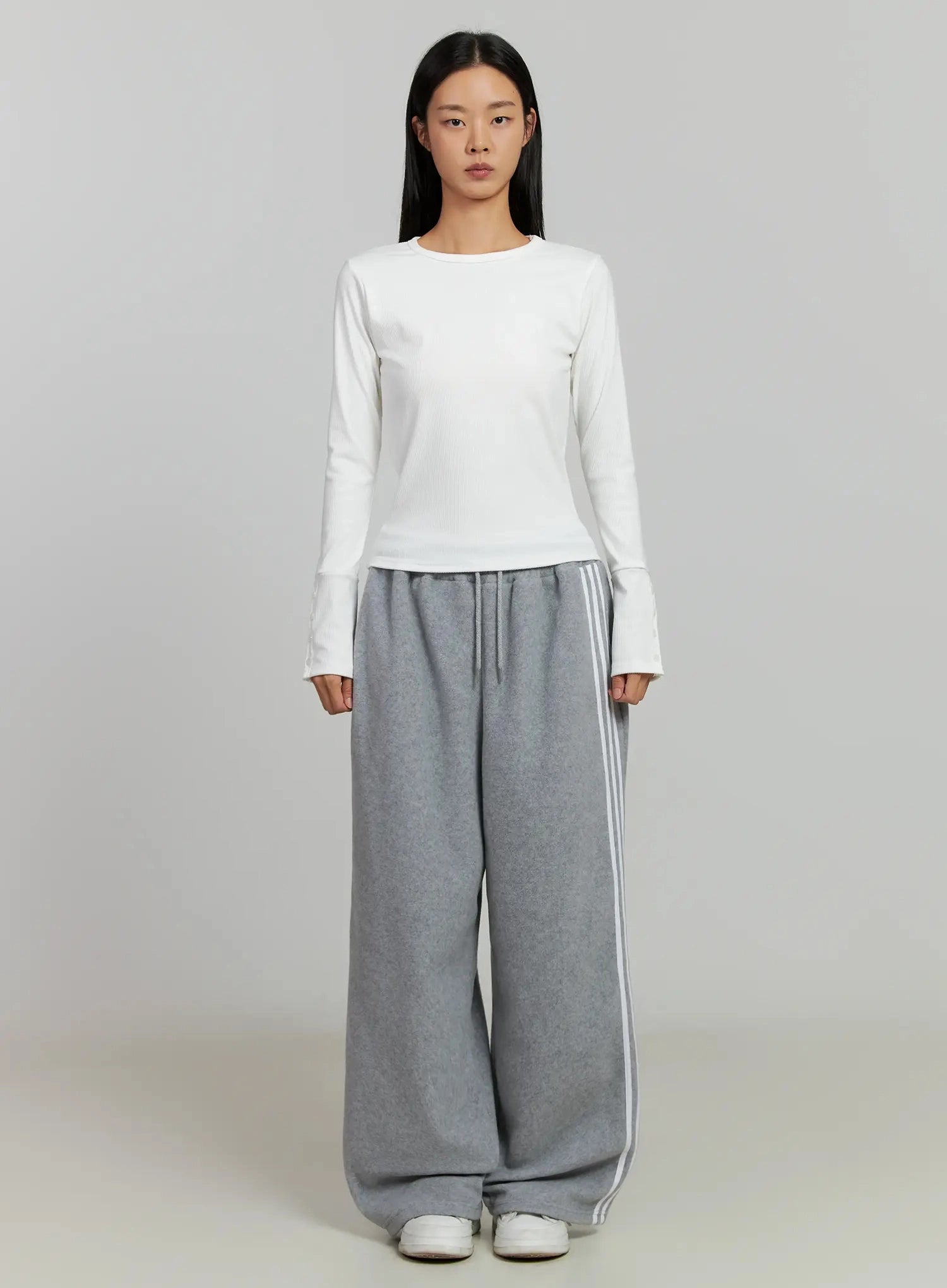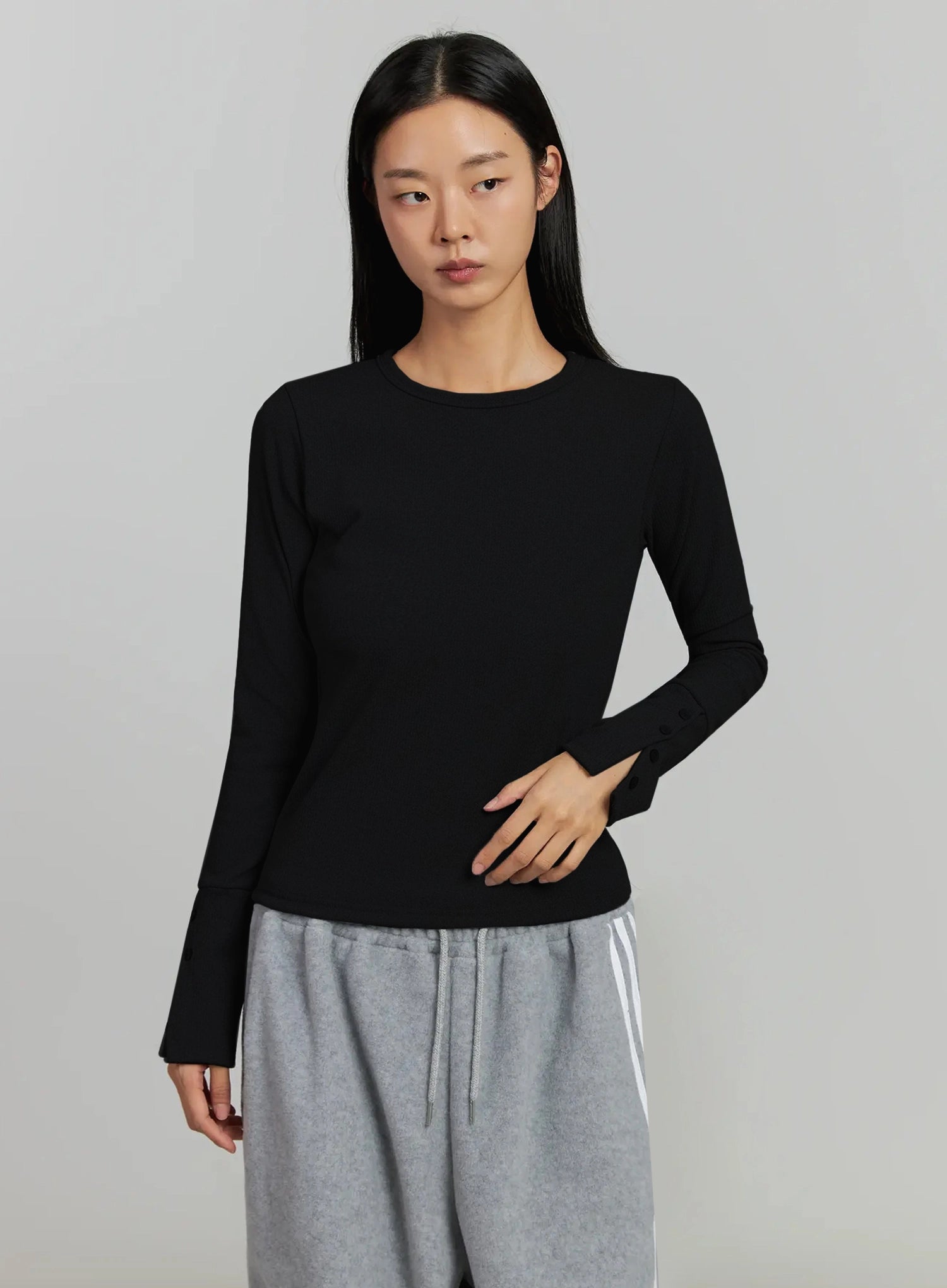 Button Sleeve Ribbed Top IJ505