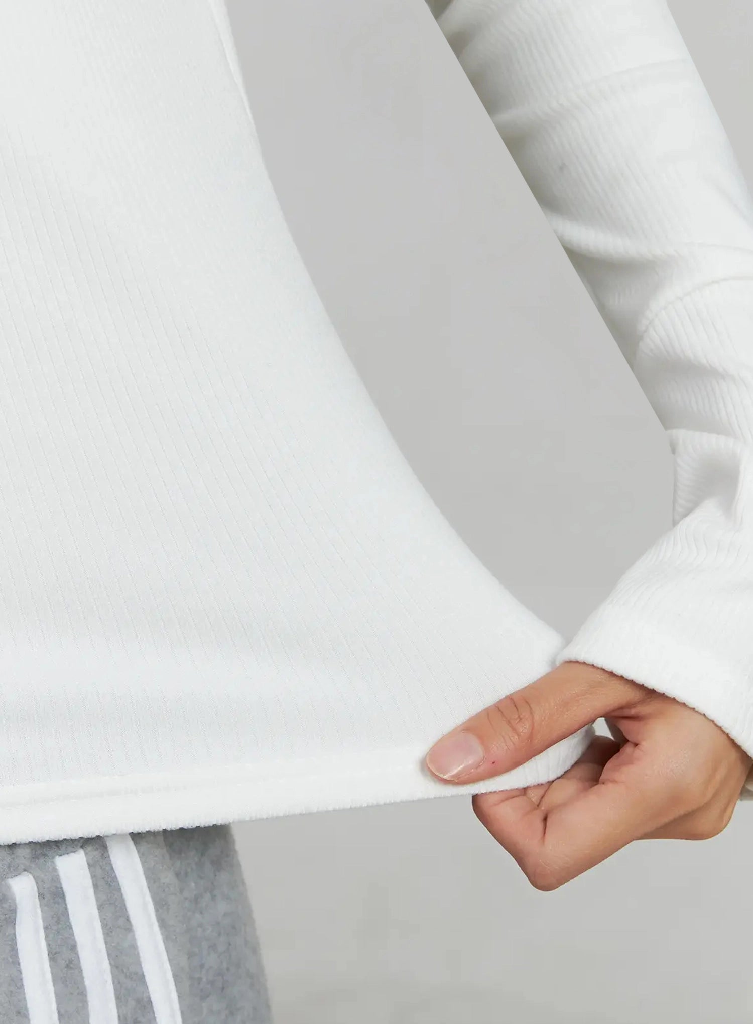 Model is wearing size S/M and the color White.