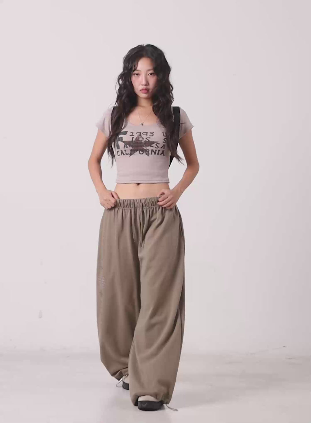 off-shoulder-graphic-cropped-tee-cl511 / Gray