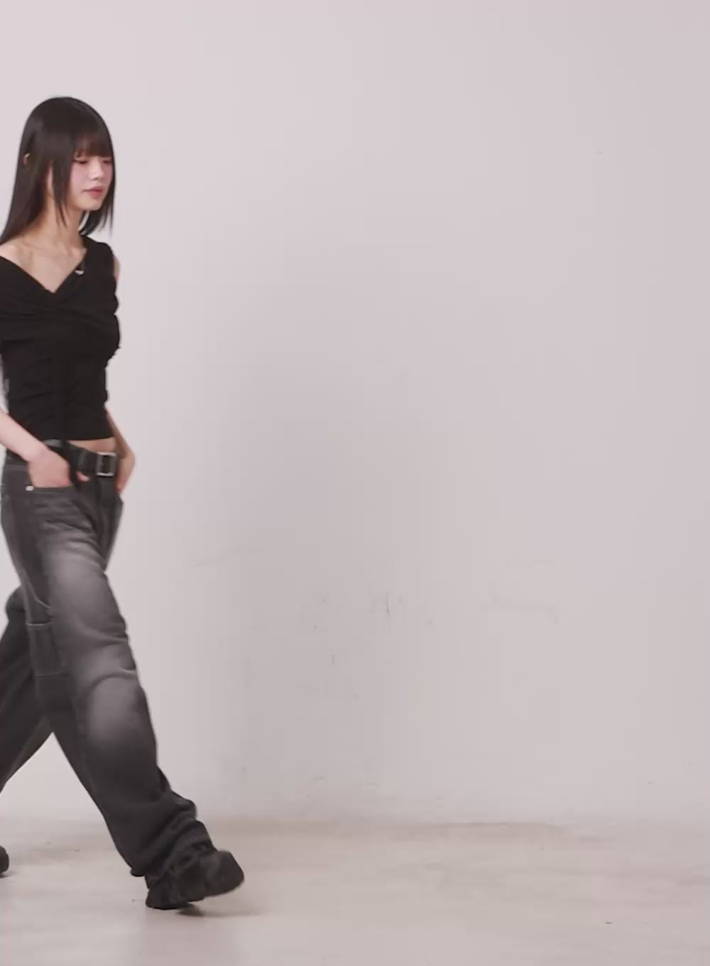 ribbon-one-shoulder-crop-top-ia528 / Dark gray