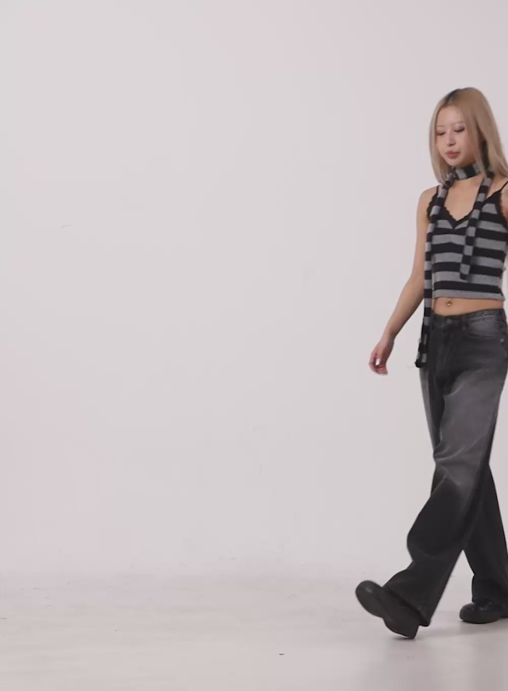 striped-lace-trim-cami-scarf-set-cj507 / Dark gray