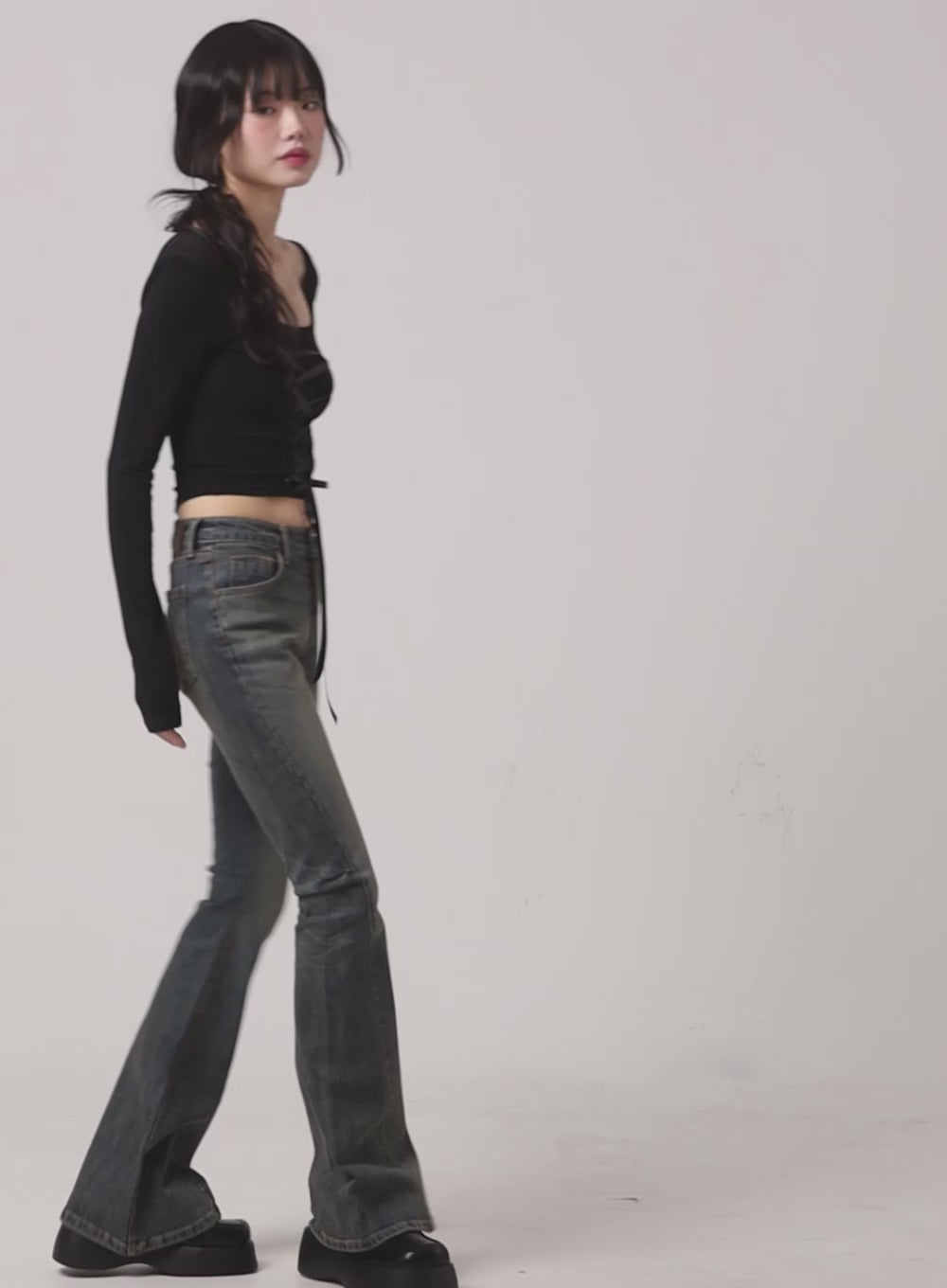 high-waist-slim-washed-bootcut-jeans-cf407 / Blue