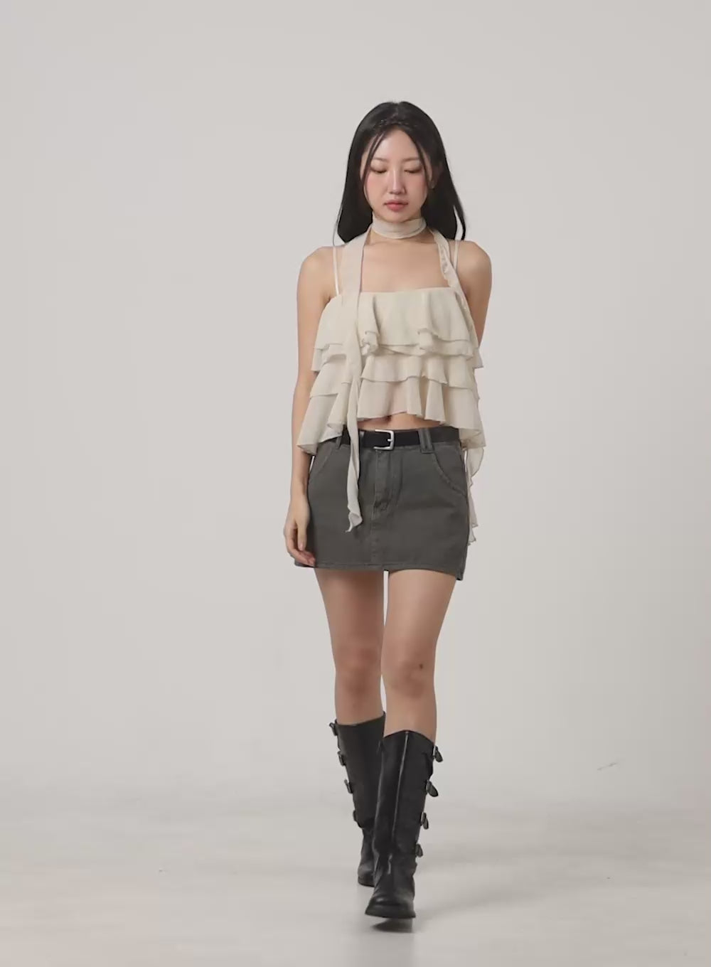 ruffle-cami-crop-top-cg414 / Beige