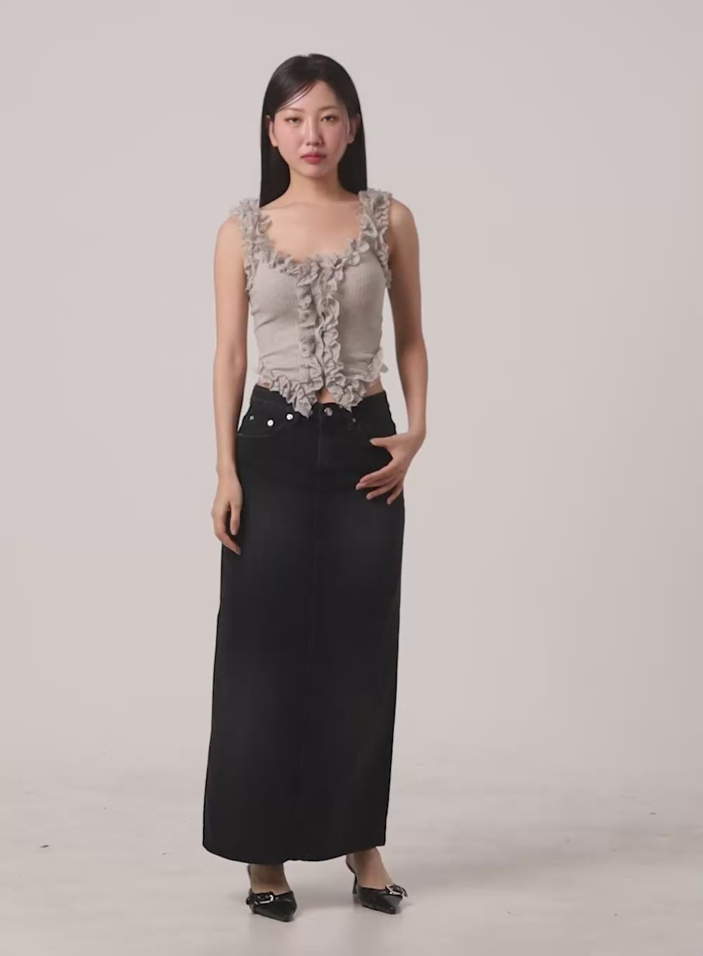 ruffle-cami-crop-top-cg414 / Black