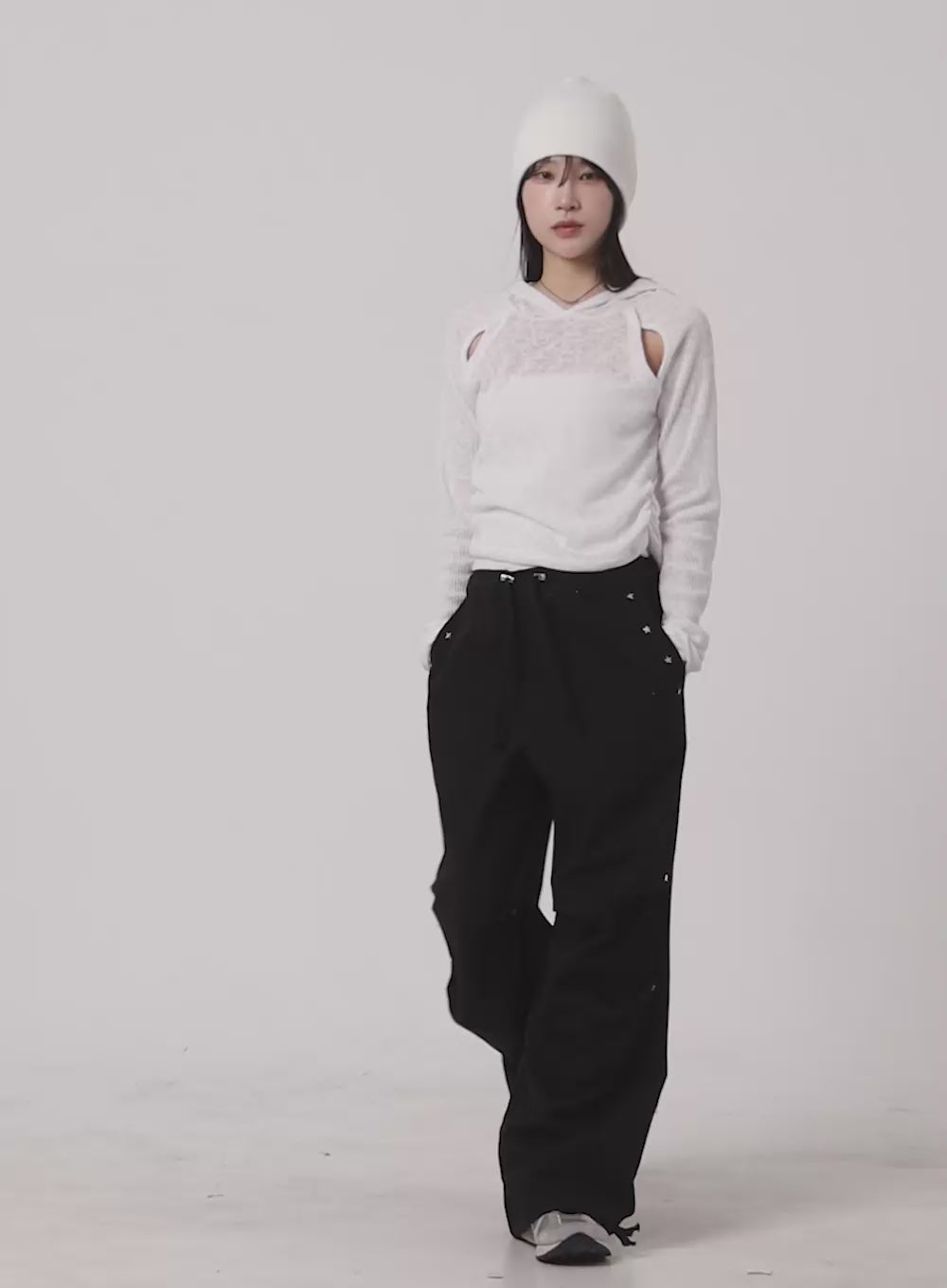 hooded-cut-out-top-ca404 / White