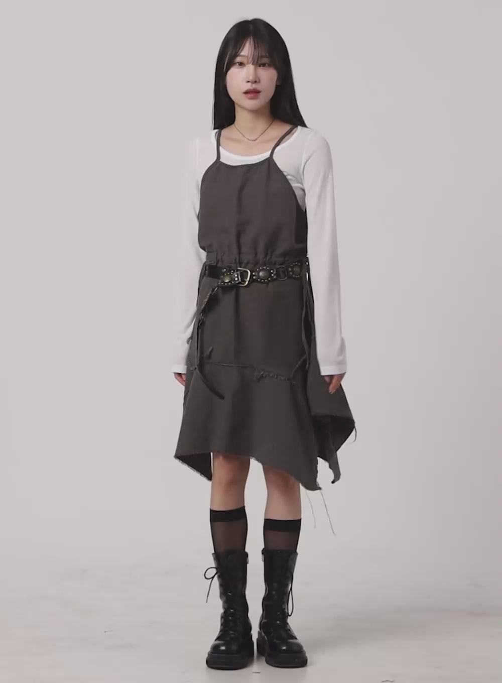 strap-midi-skirt-ca404 / Dark gray