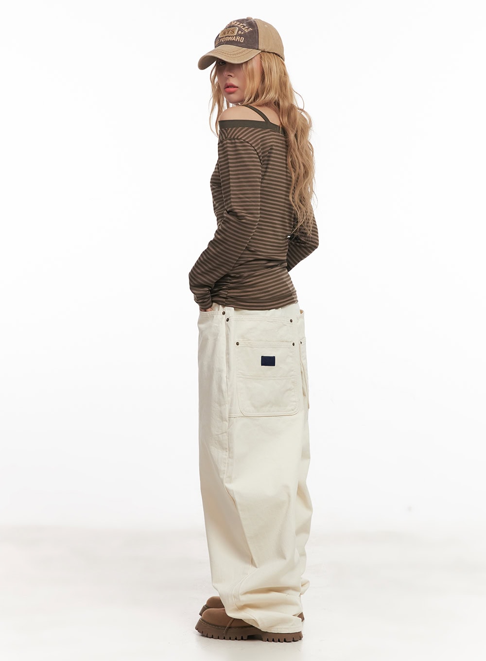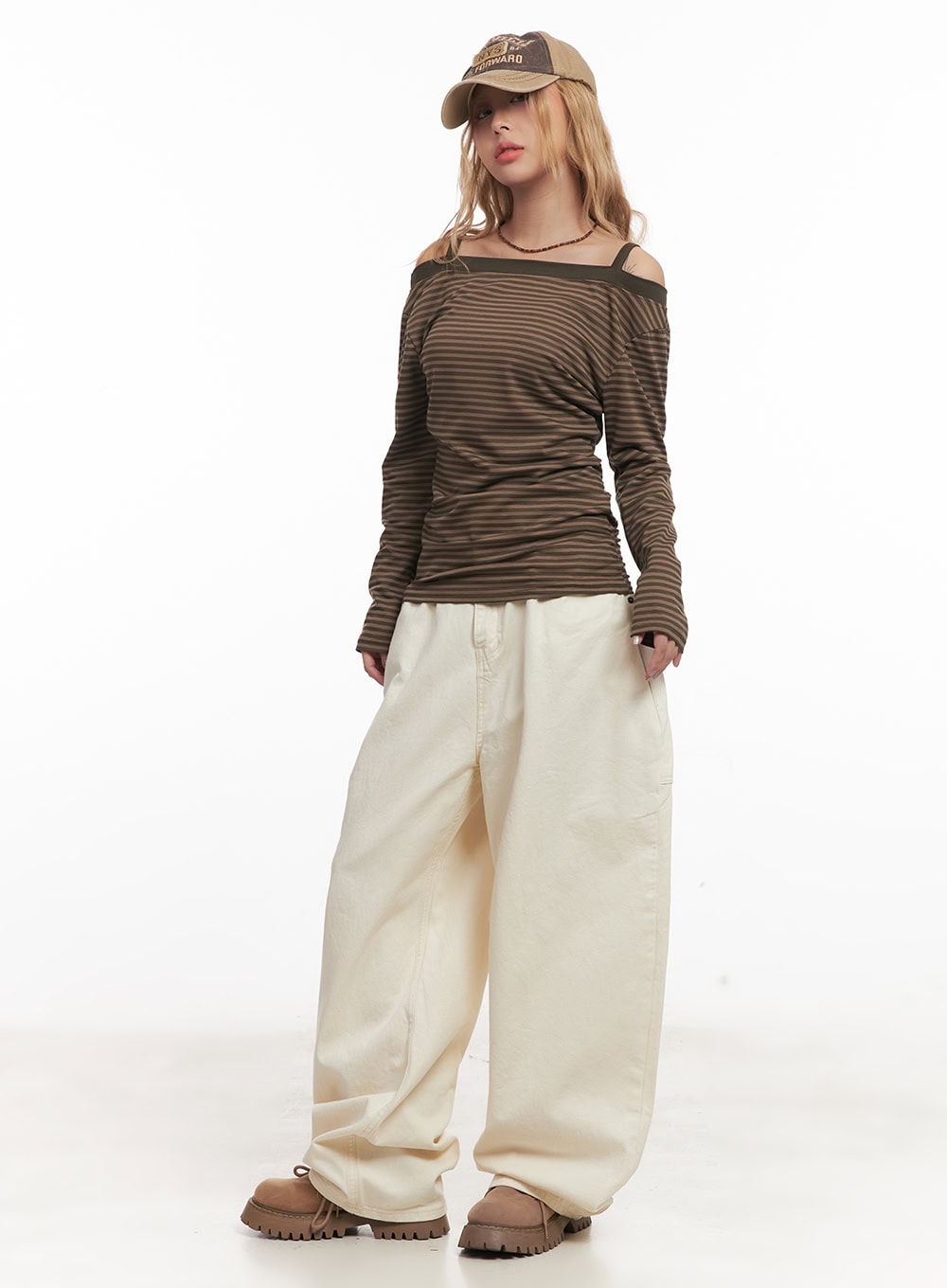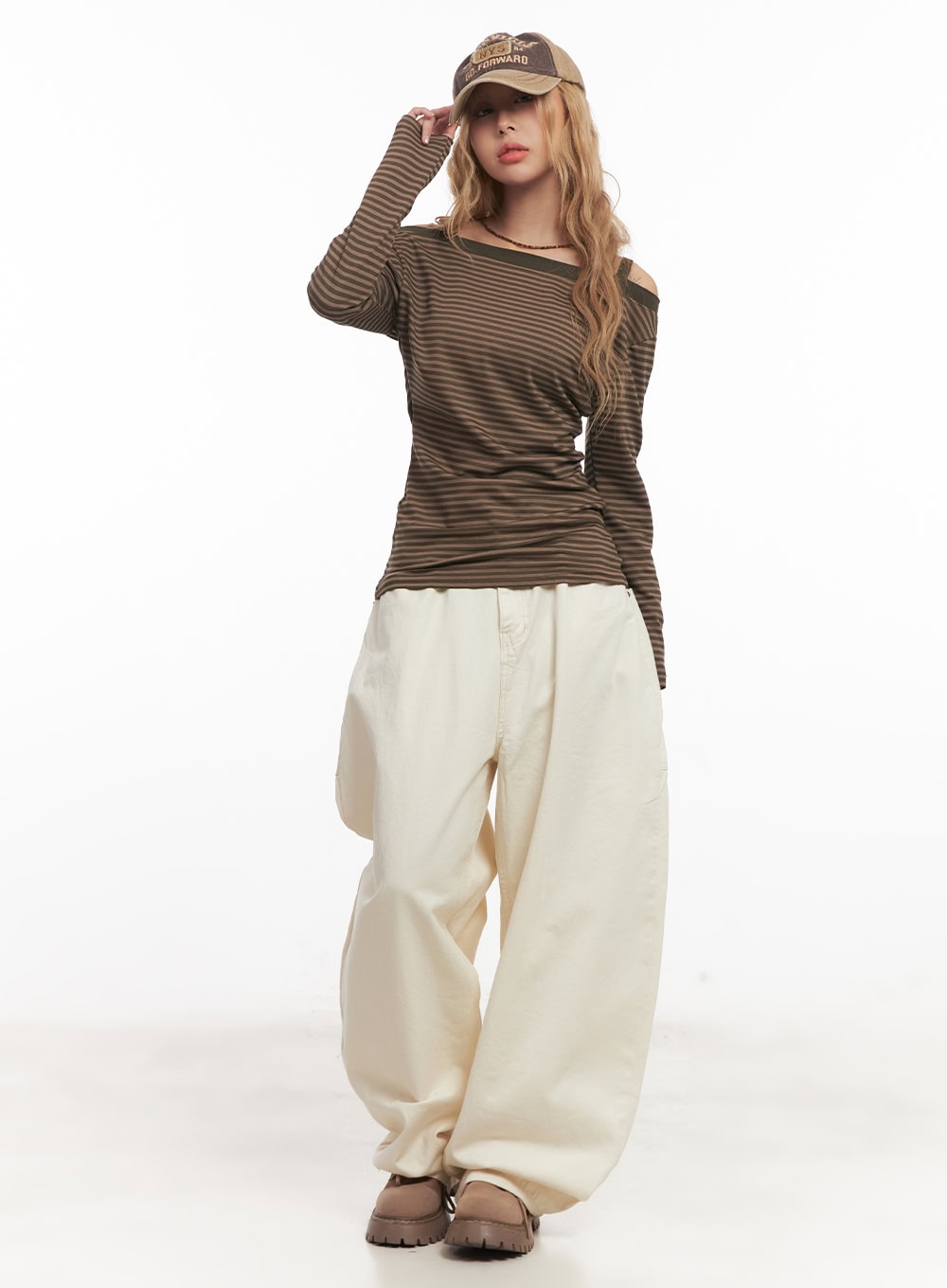 Striped Long-Sleeve Off-Shoulder Top CM506