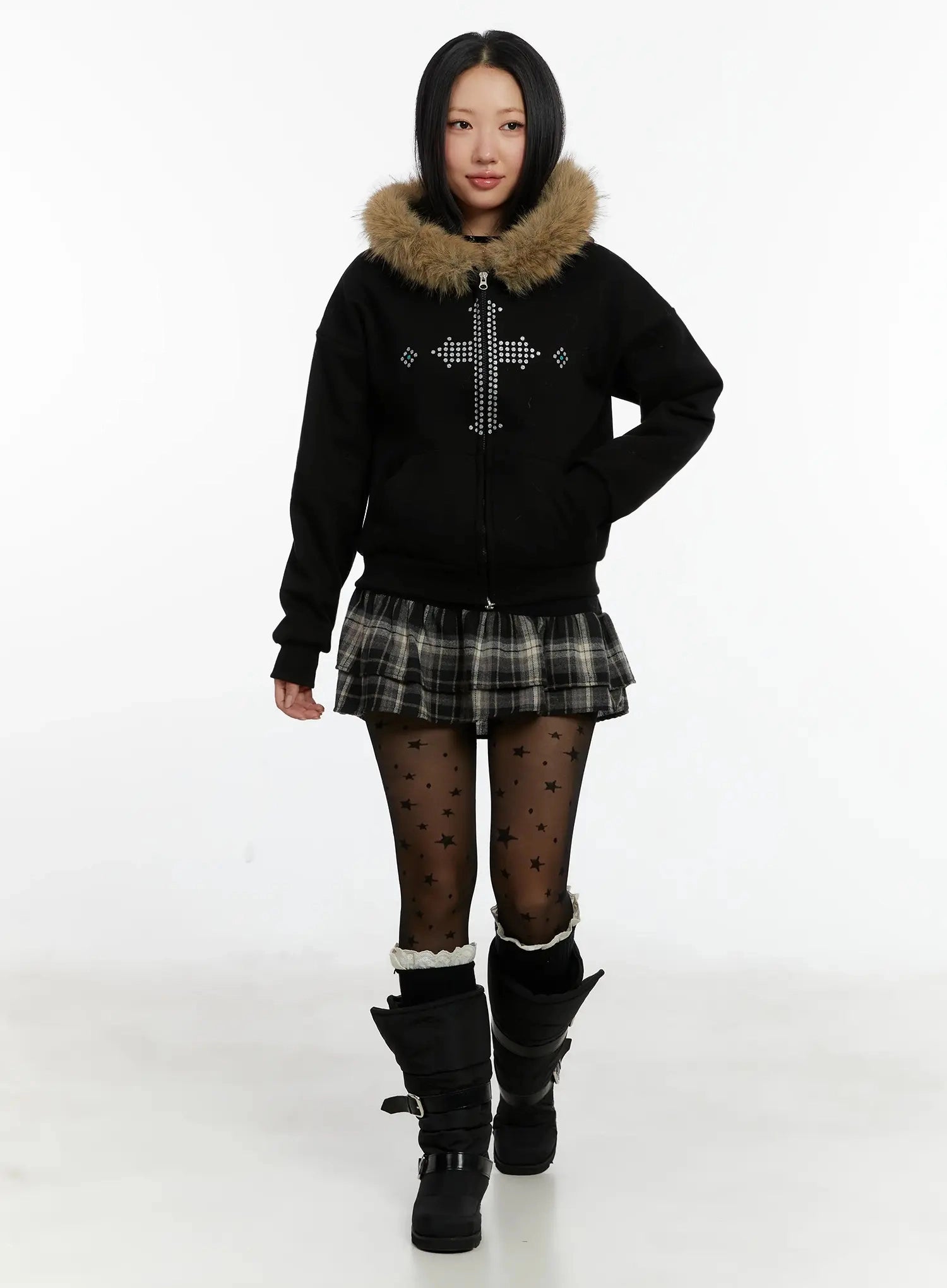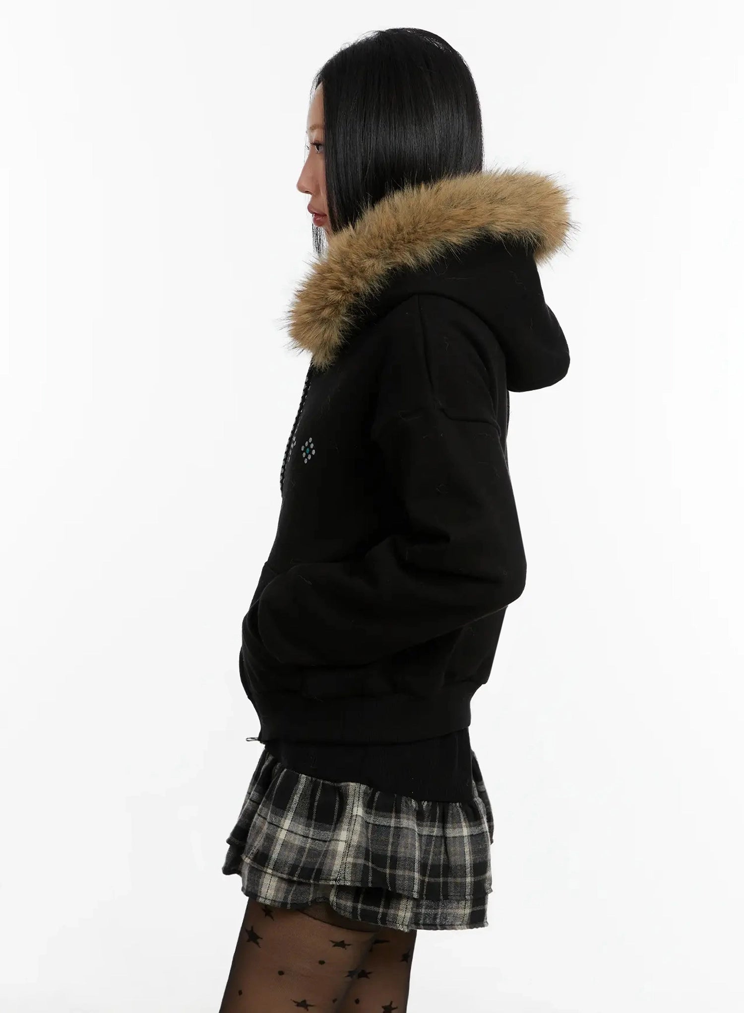 Faux Fur Trim Zip-Up Hoodie ID525