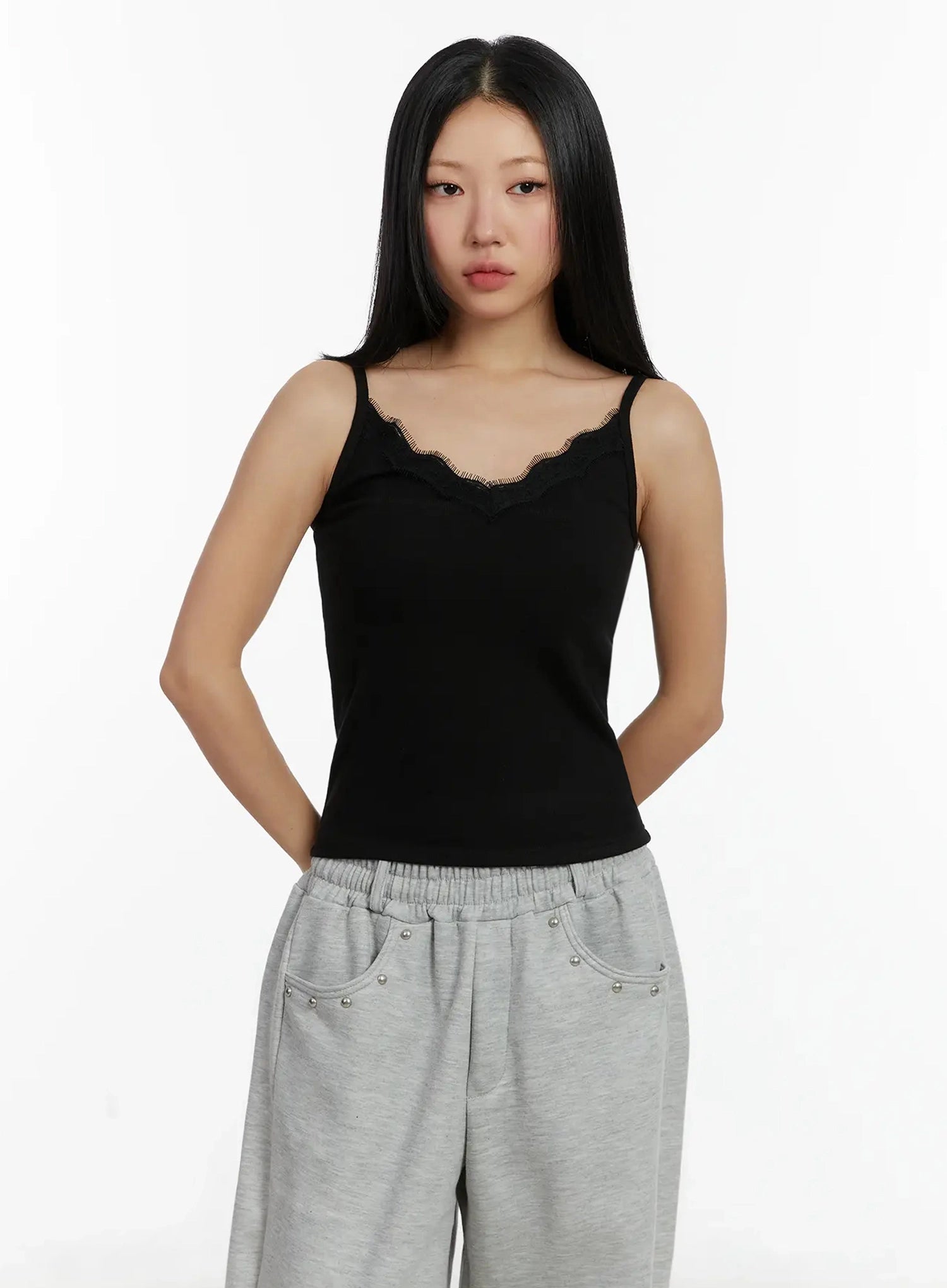 Lace V-Neck Sleeveless Top ID525