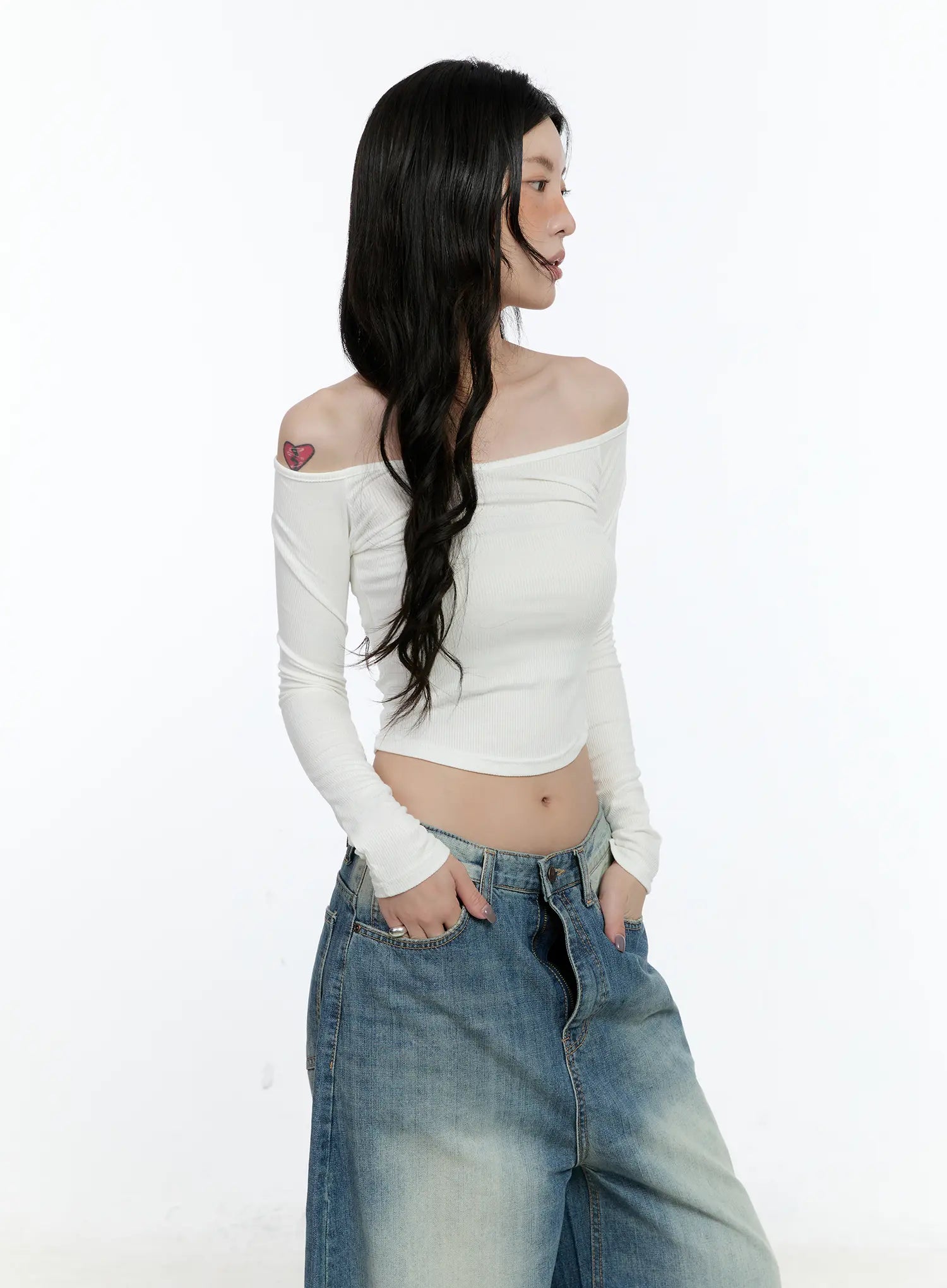 Ribbed Off-Shoulder Long Sleeve CN517