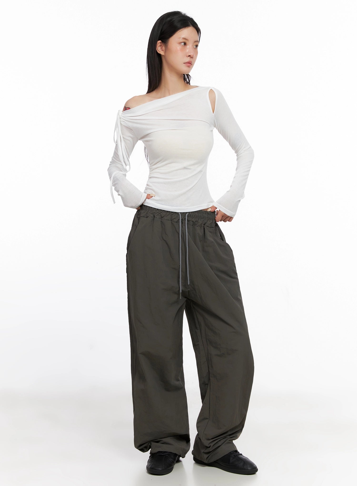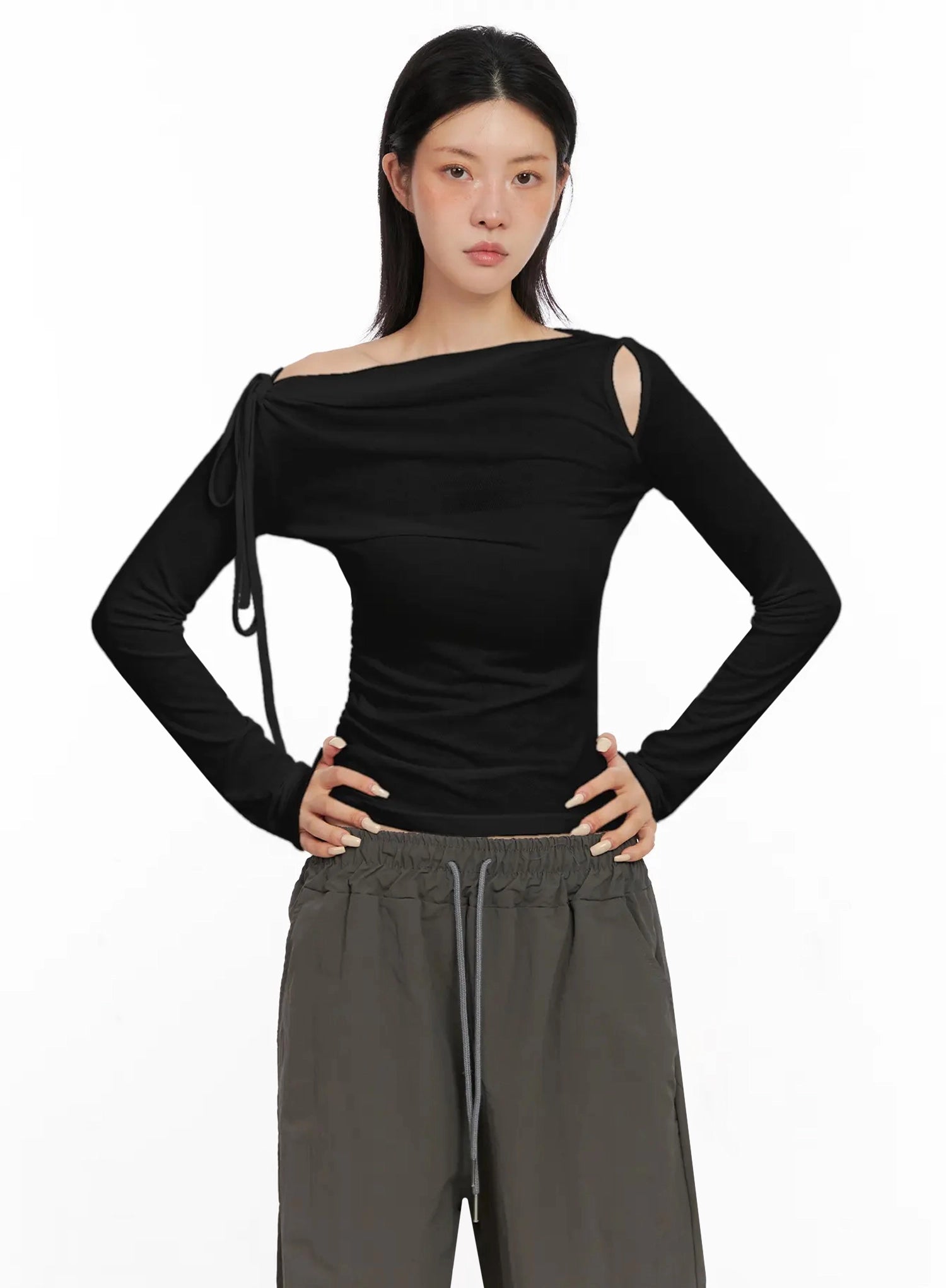 Asymmetric Cut-Out Long Sleeve Top IS515