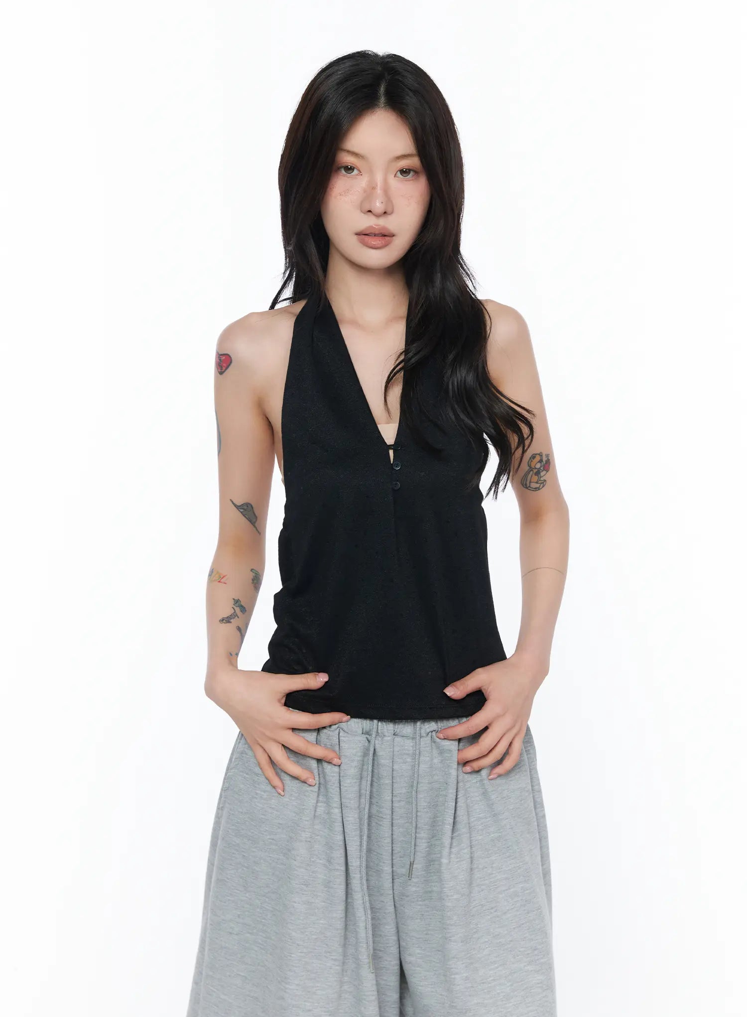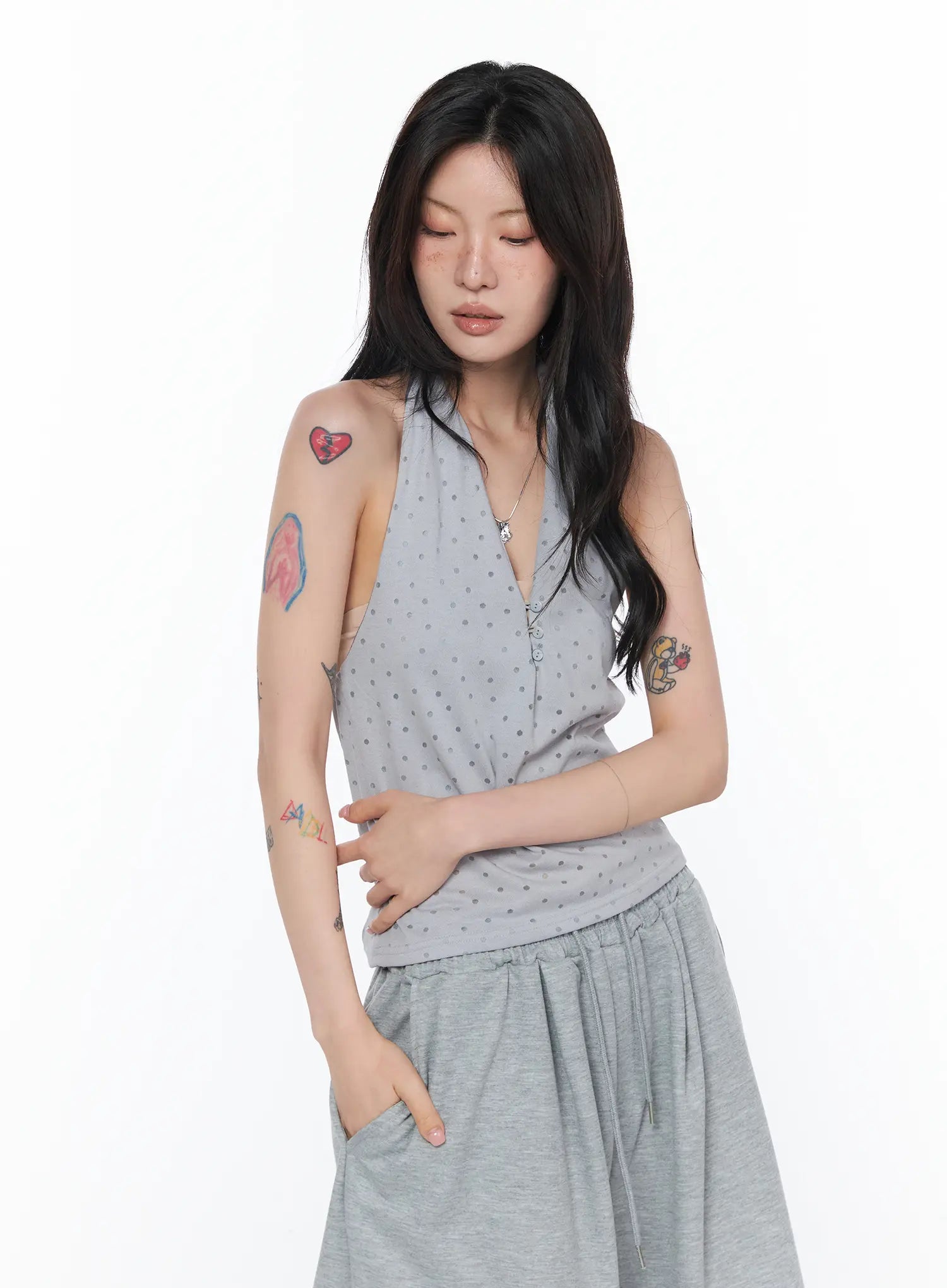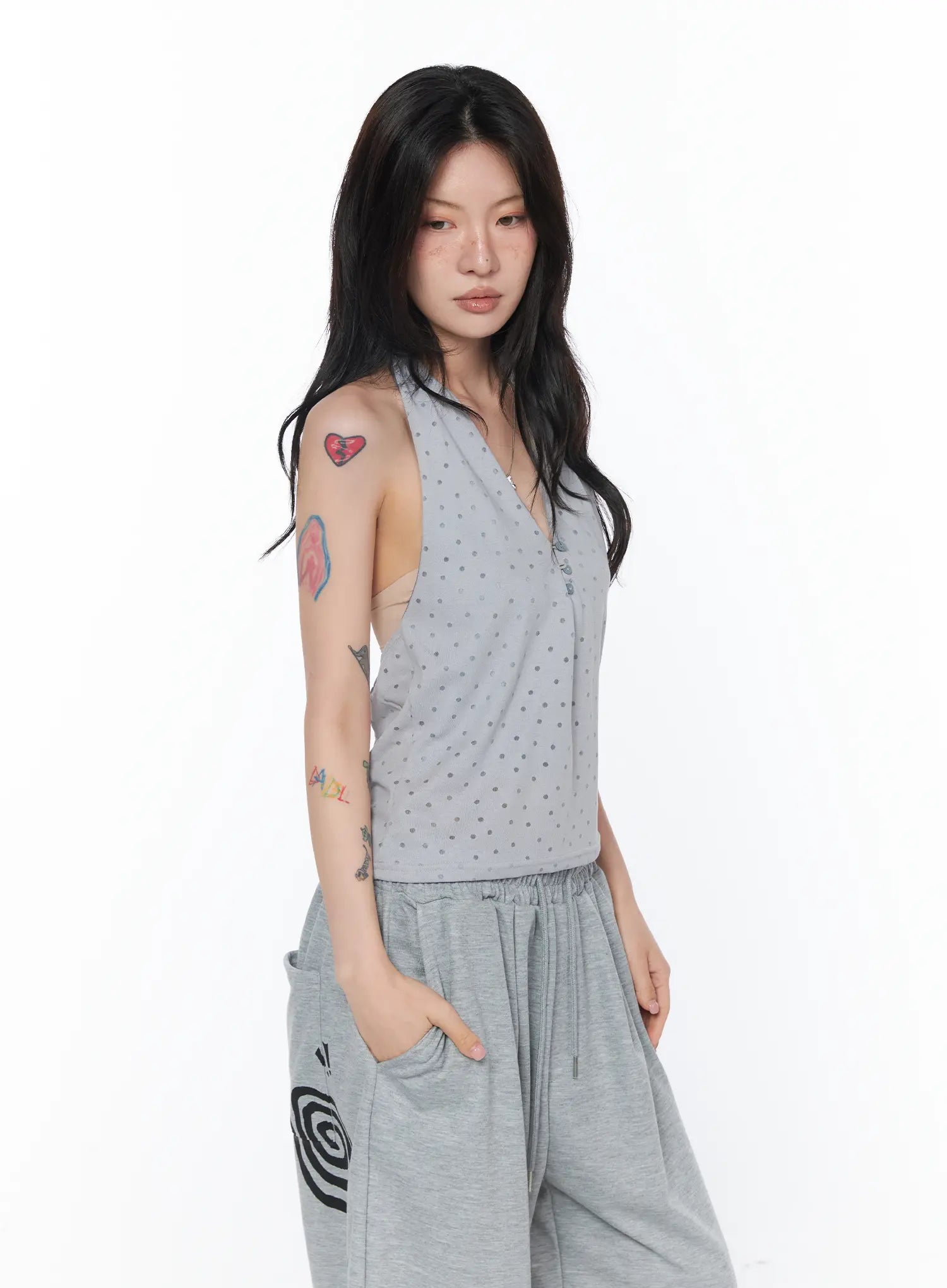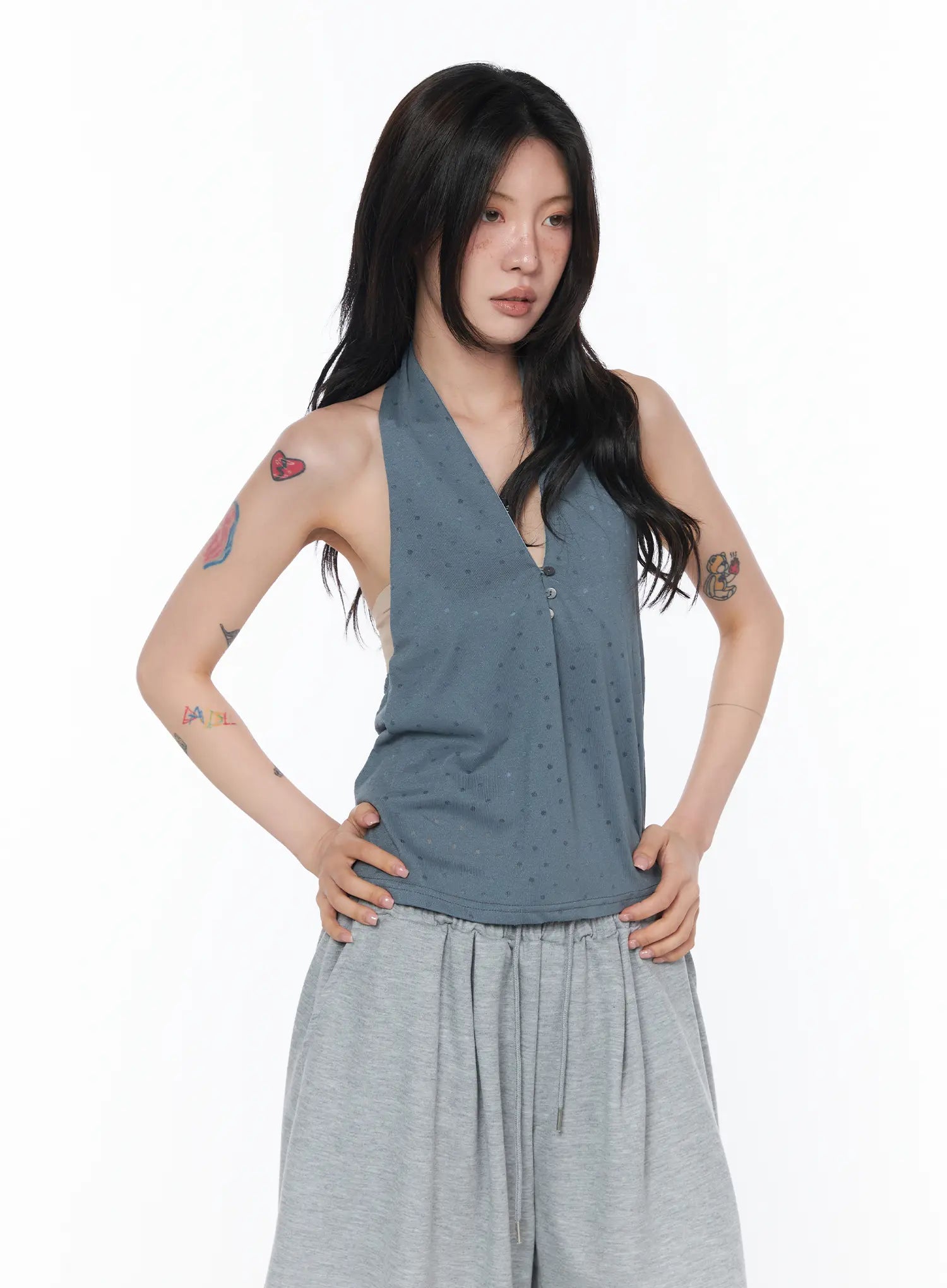 Button Detail Polka Dot Halter Top CA524