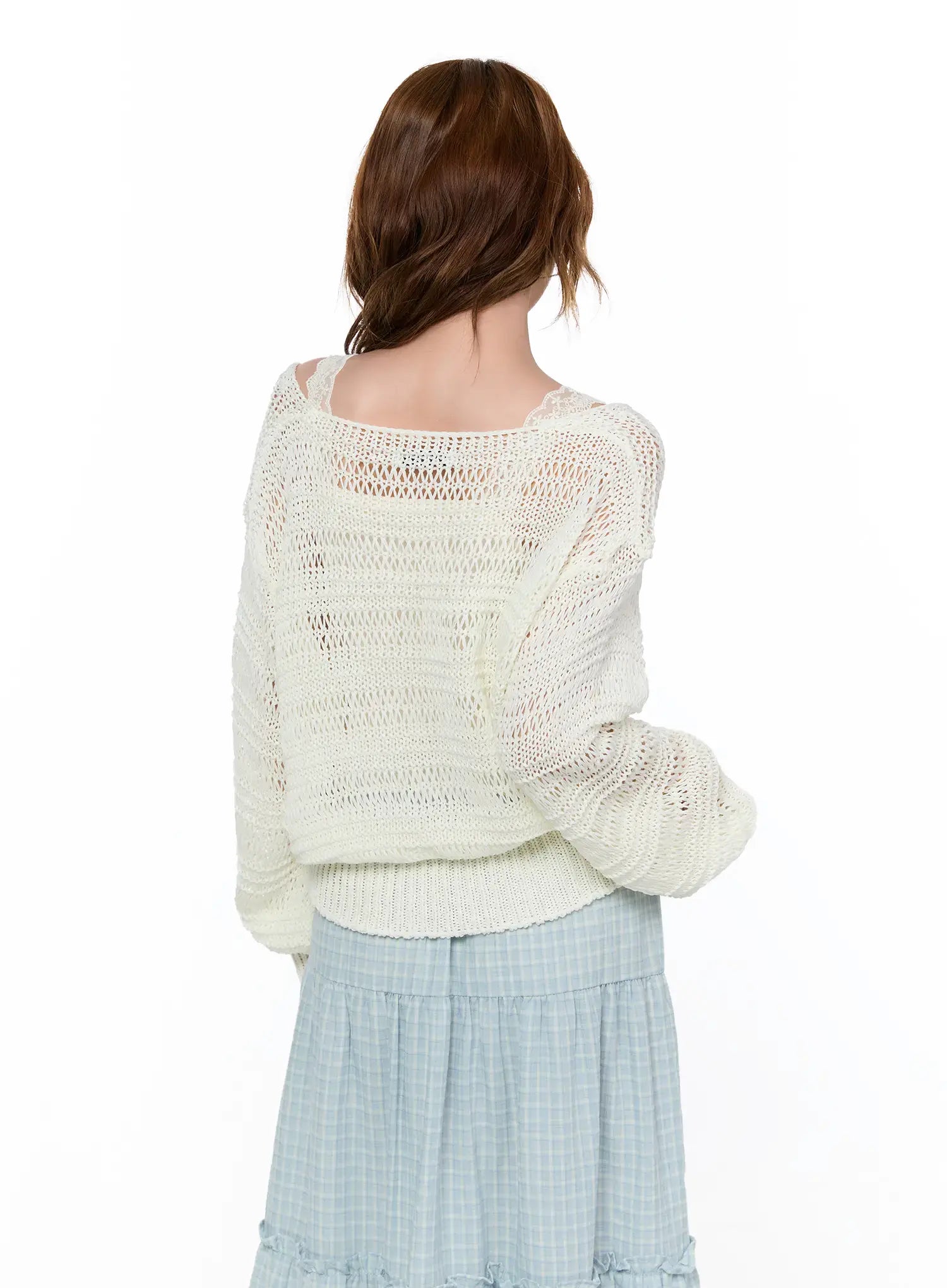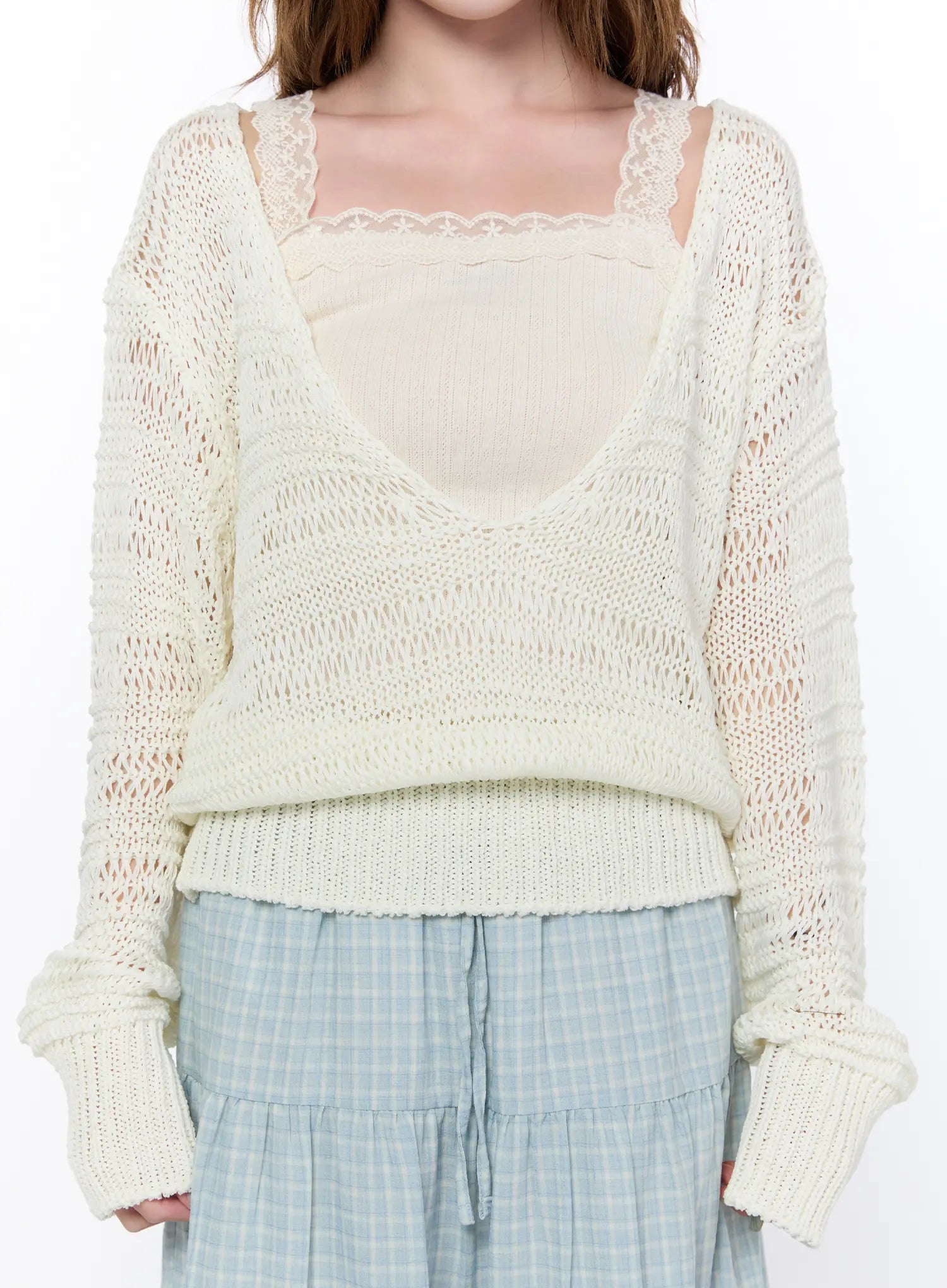 Loose-Fit Deep V-Neck Knit Cardigan CA520