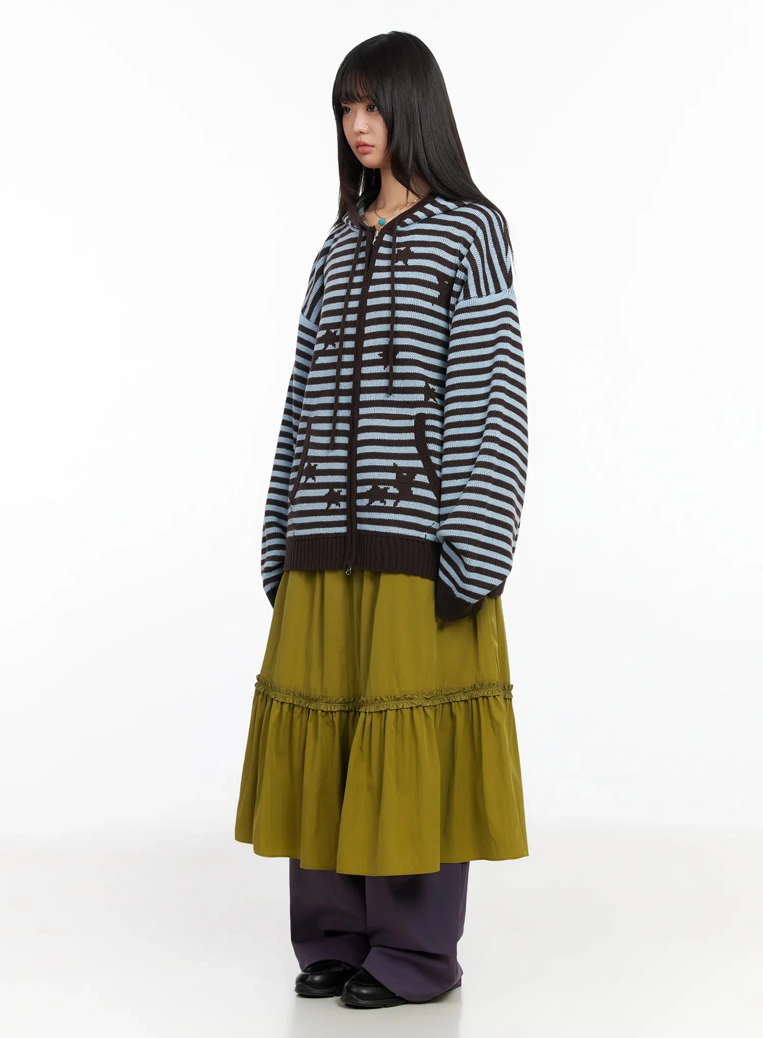 Striped Star Pattern Zip-Up Hoodie IA523