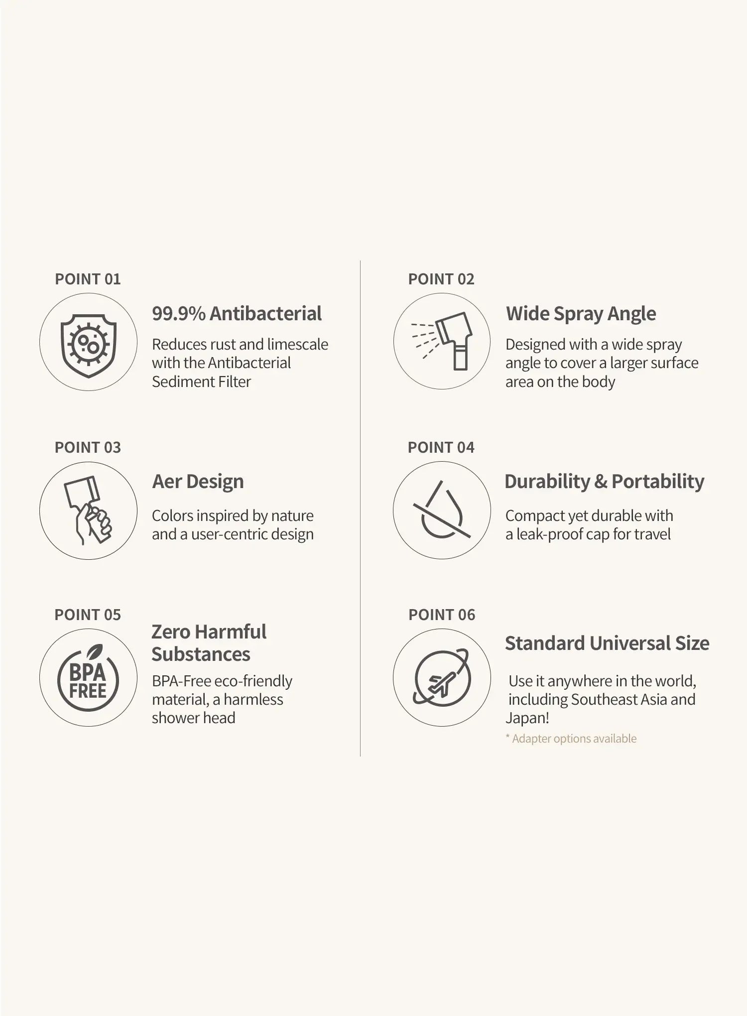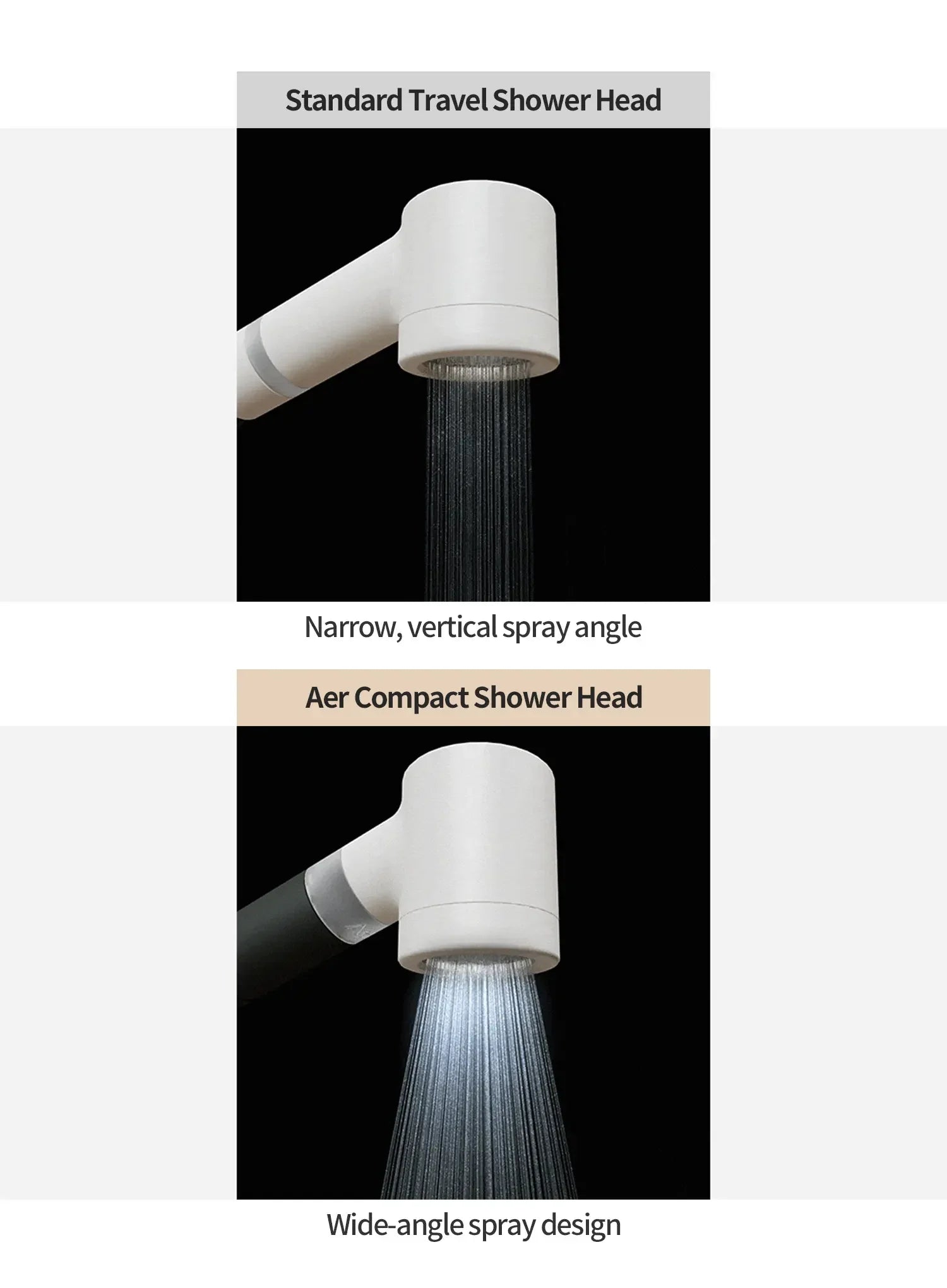 - Wide spray angle: Designed for broader coverage on the body.