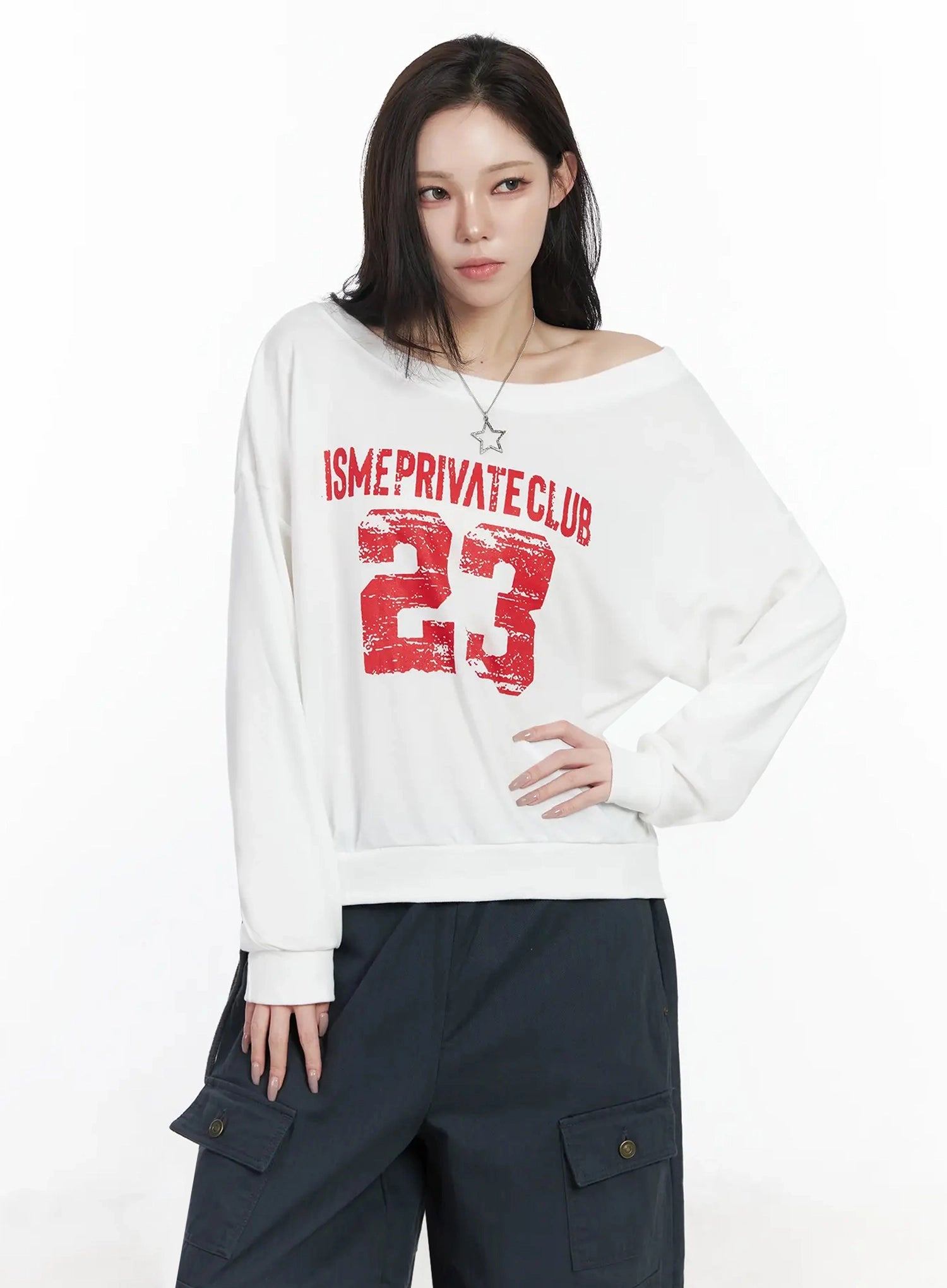 Wide Neck Numeral Graphic Sweatshirt IJ528