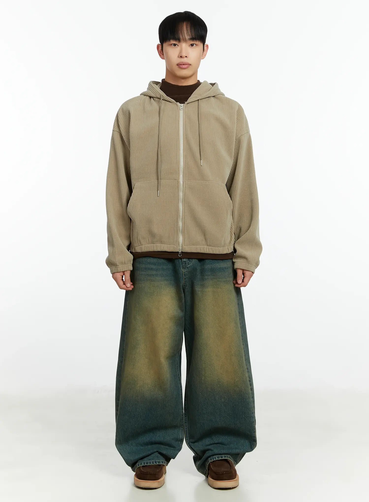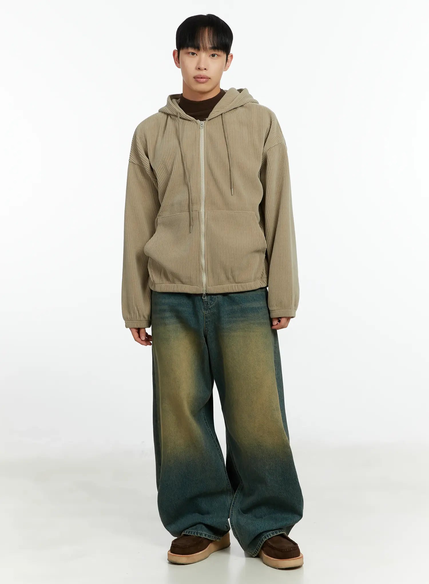 Men's Corduroy Two-Way Zip-Up Hoodie IF510