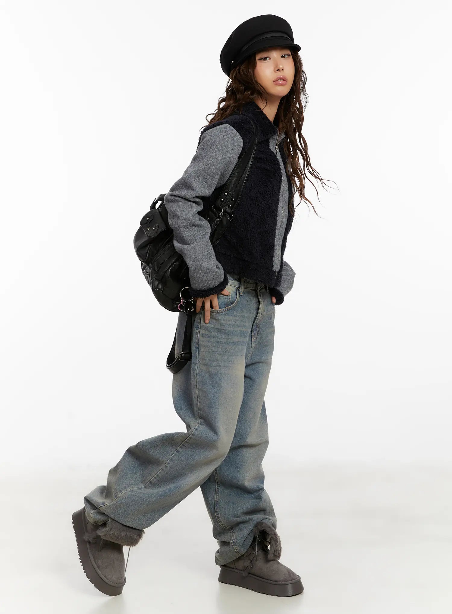 Model is wearing size S/M and the color Dark blue.