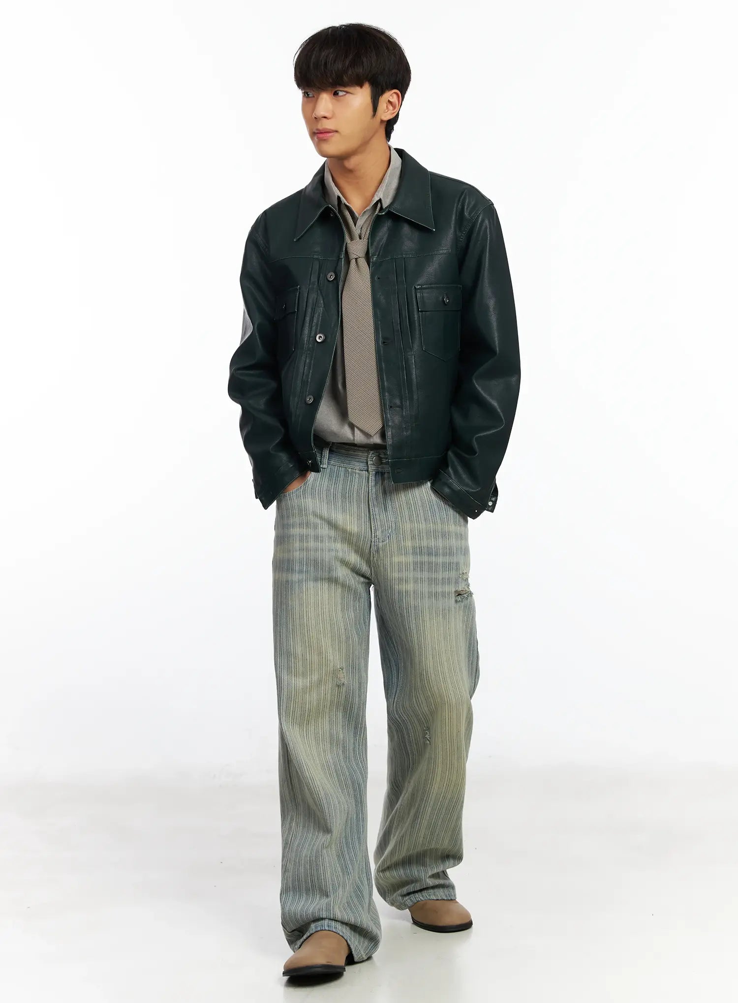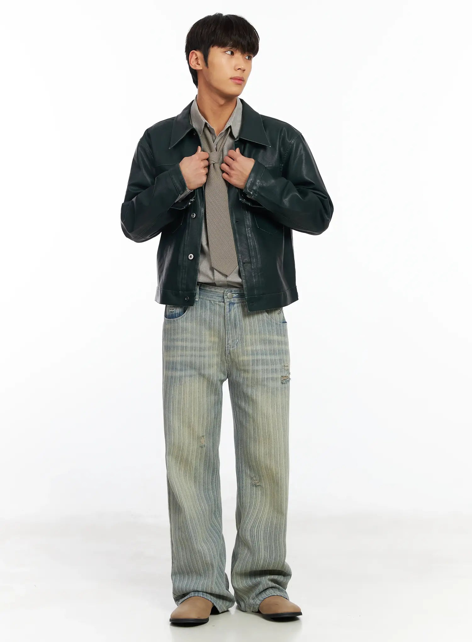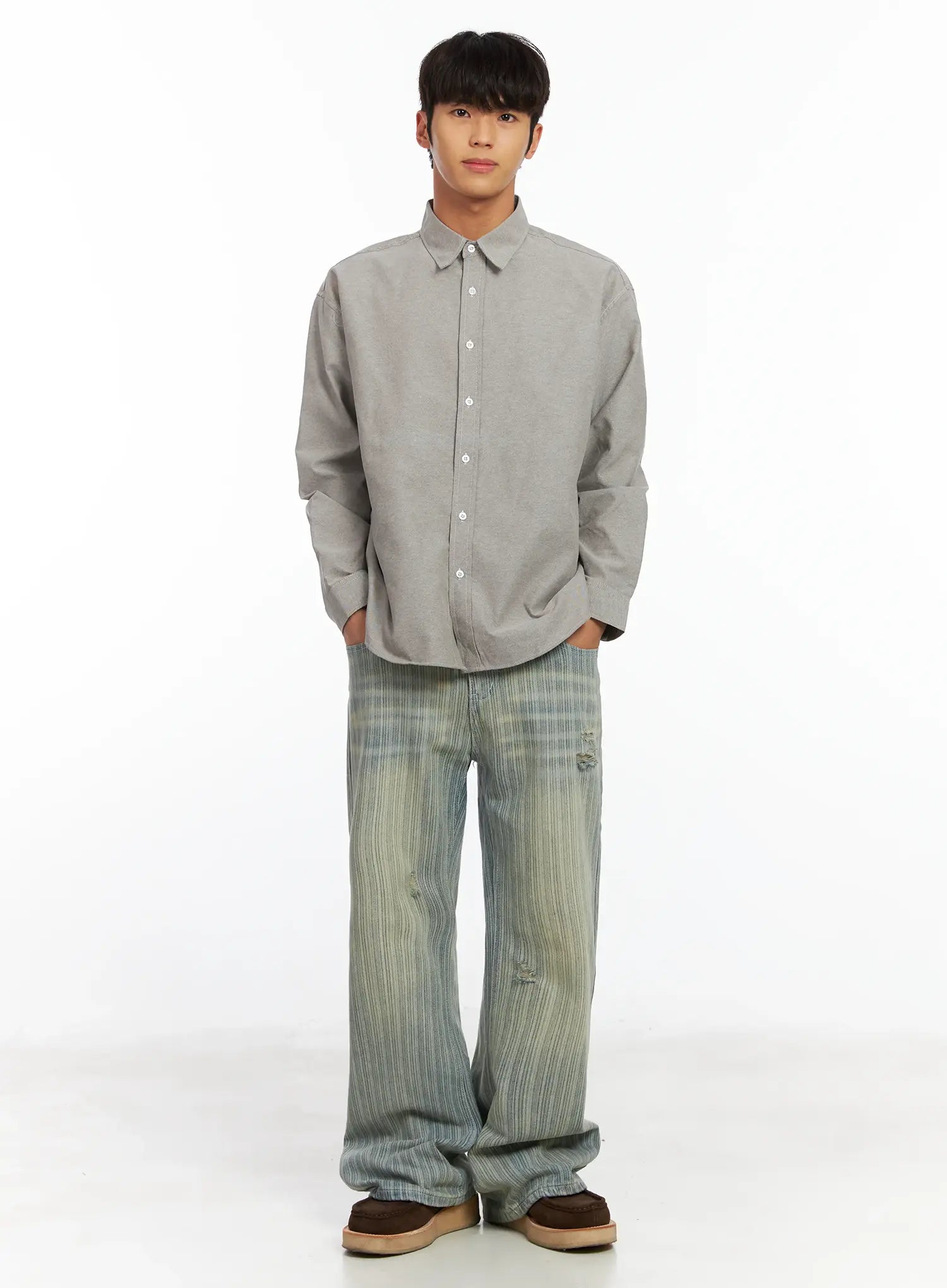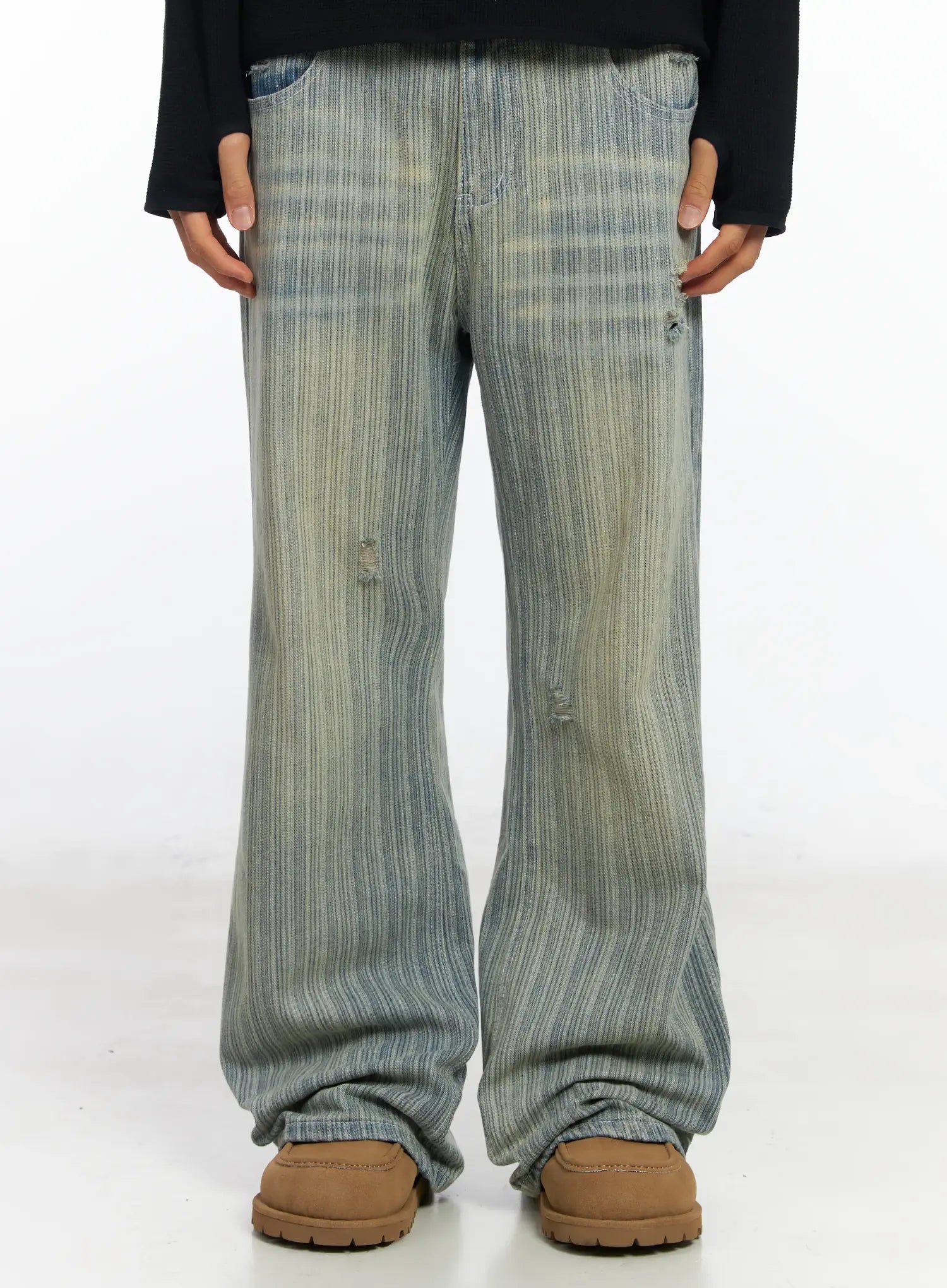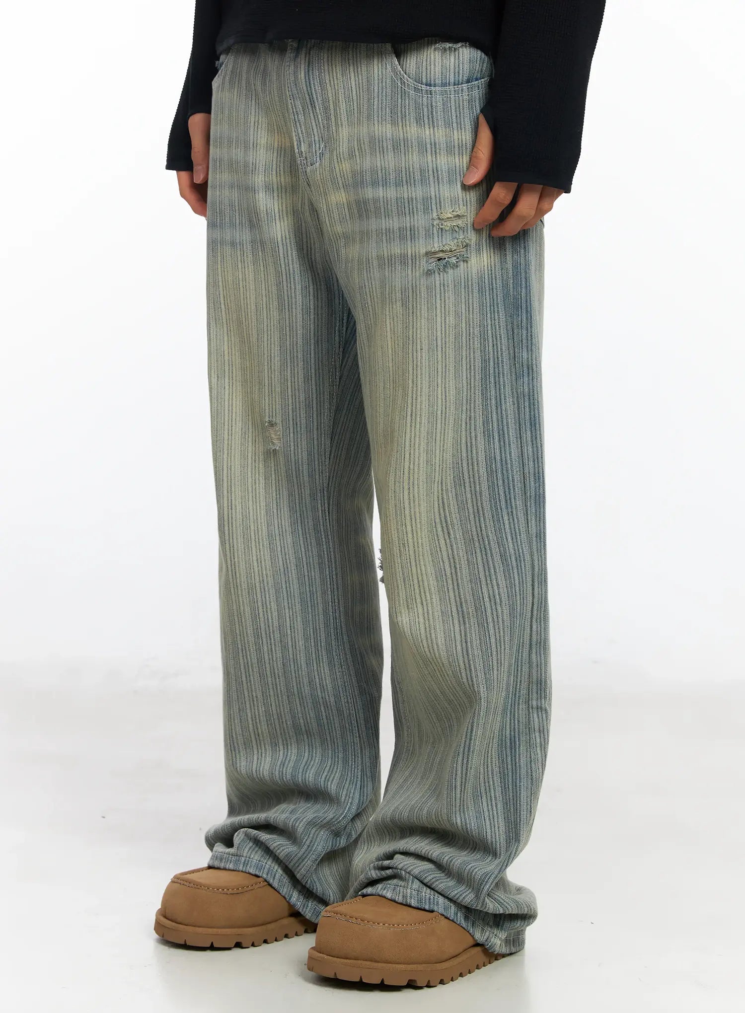 Men’s Striped Brushed Washed Jeans IF504