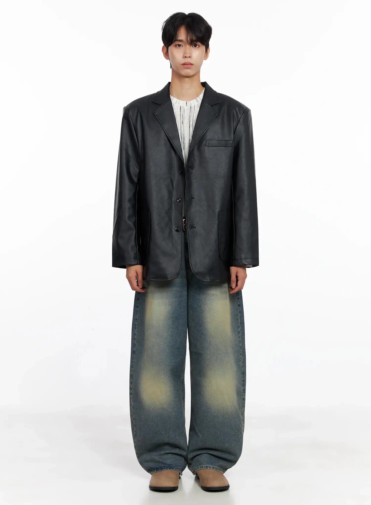 Men's Faux Leather Blazer Jacket IO516