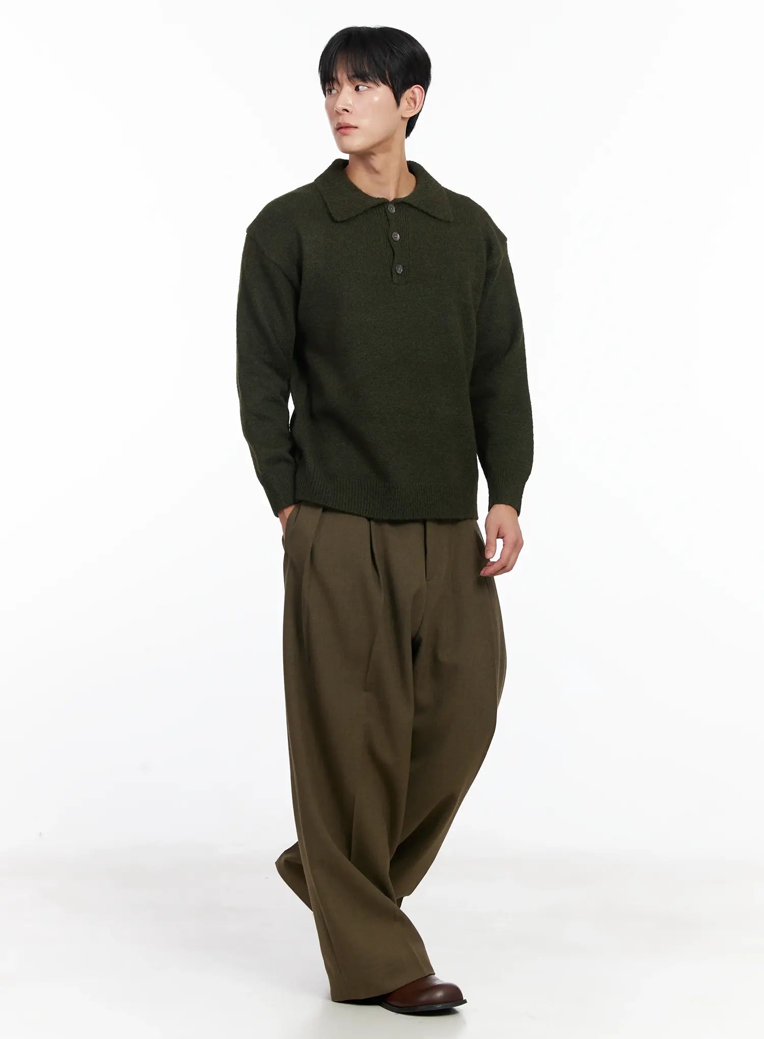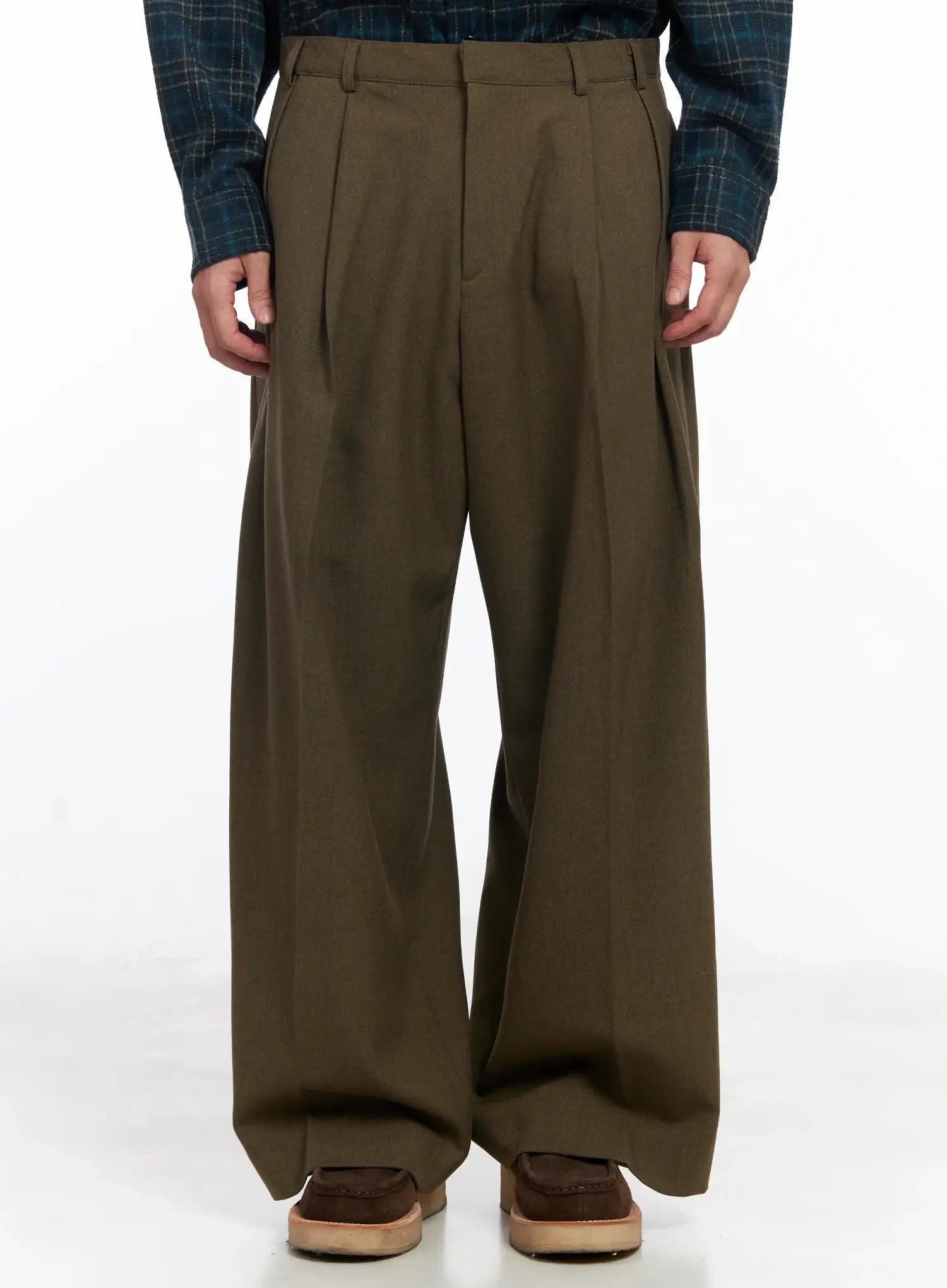 Men's Khaki Wide Leg Slacks IJ521