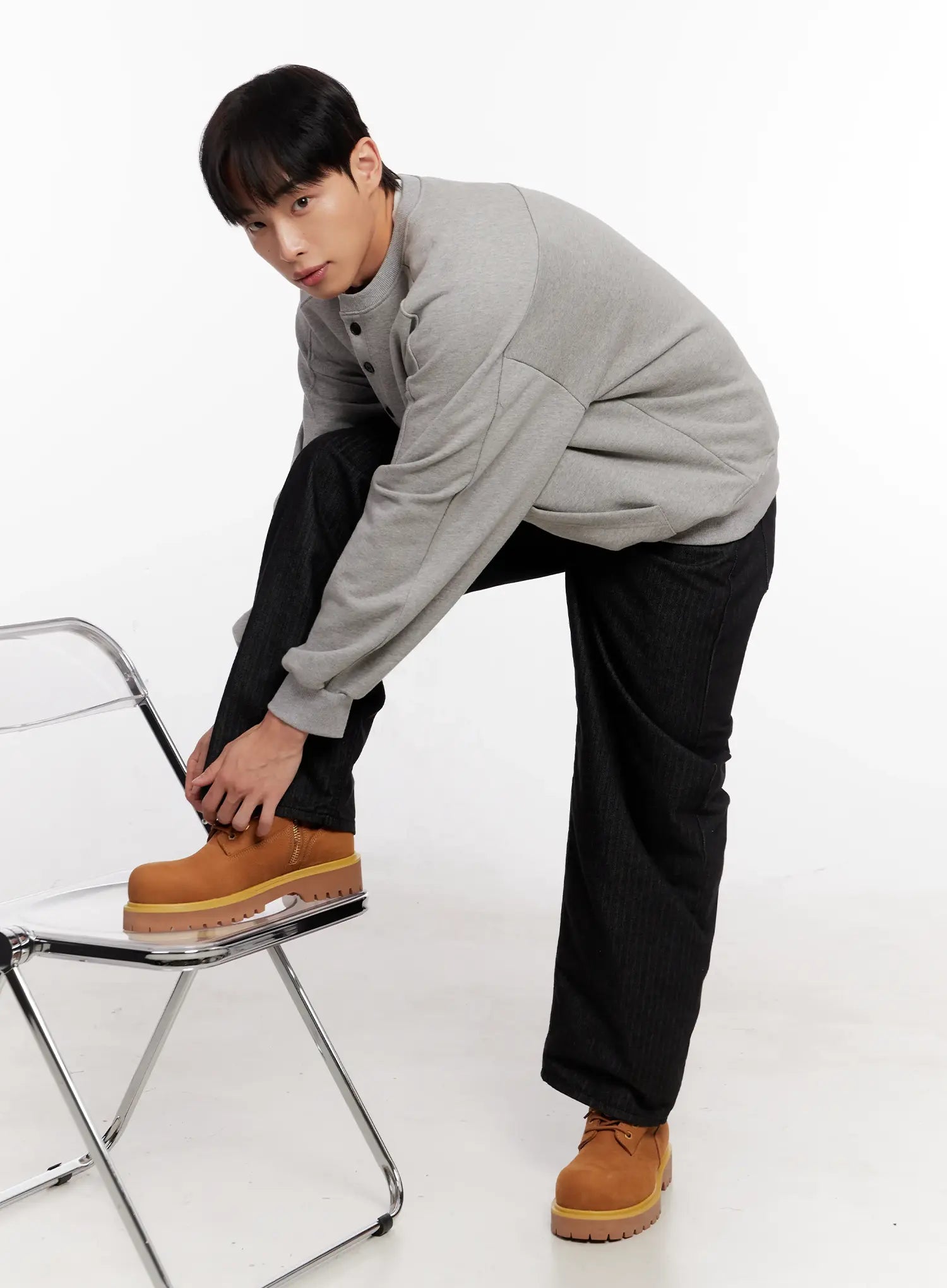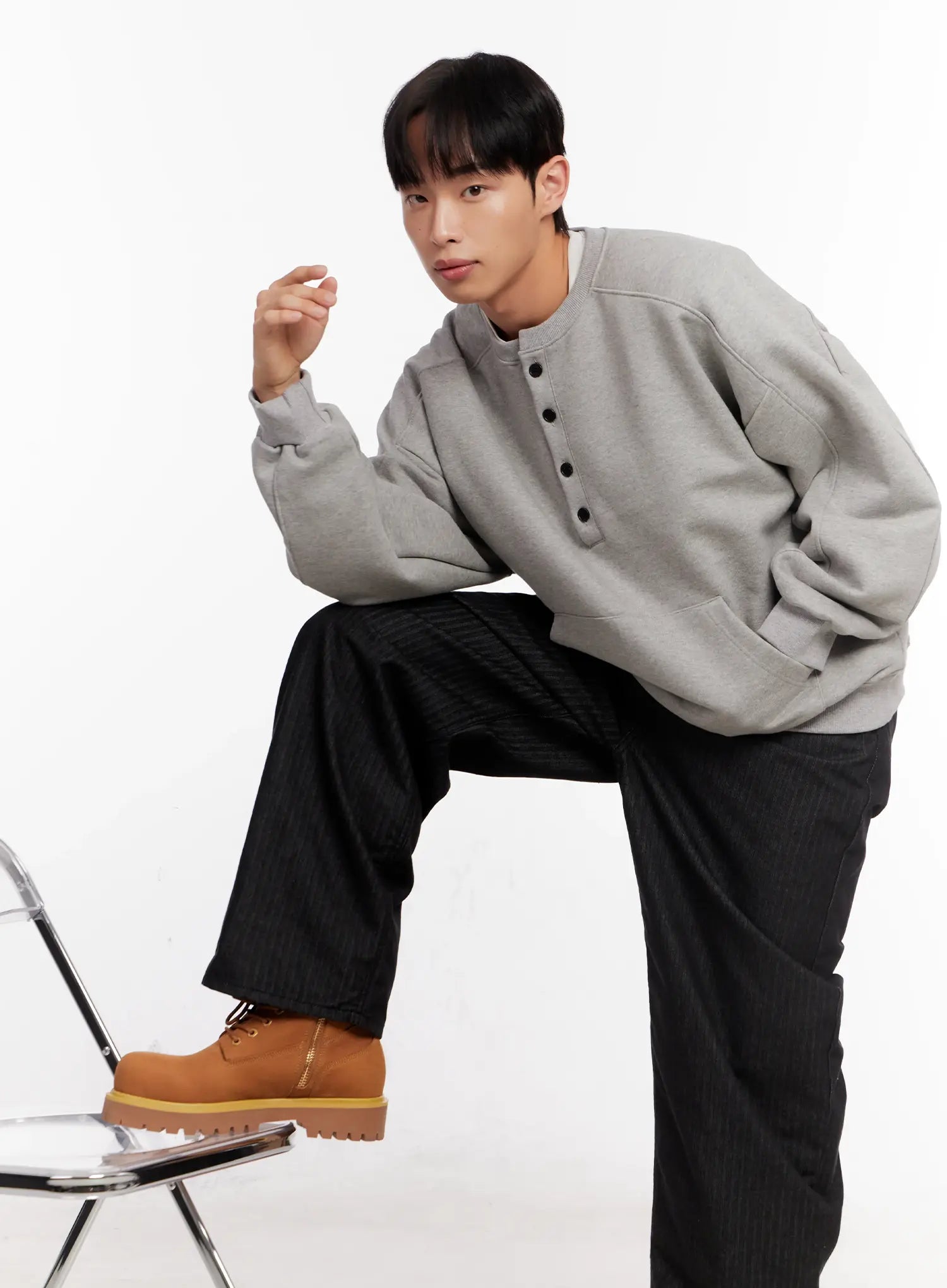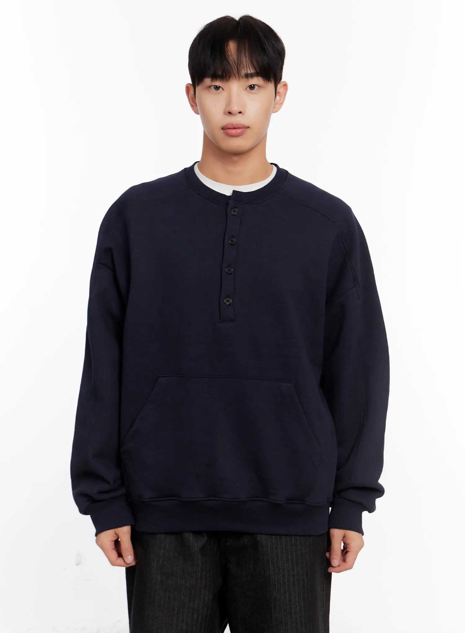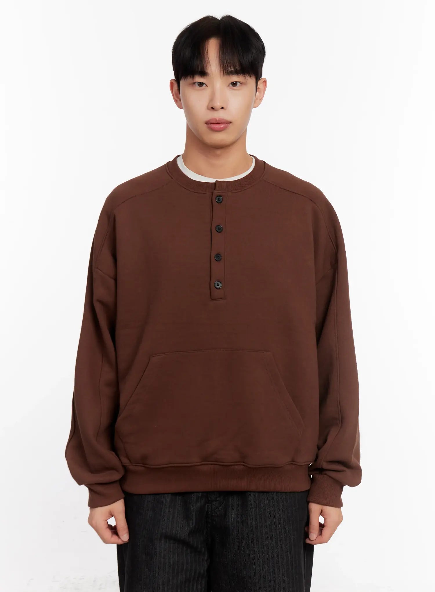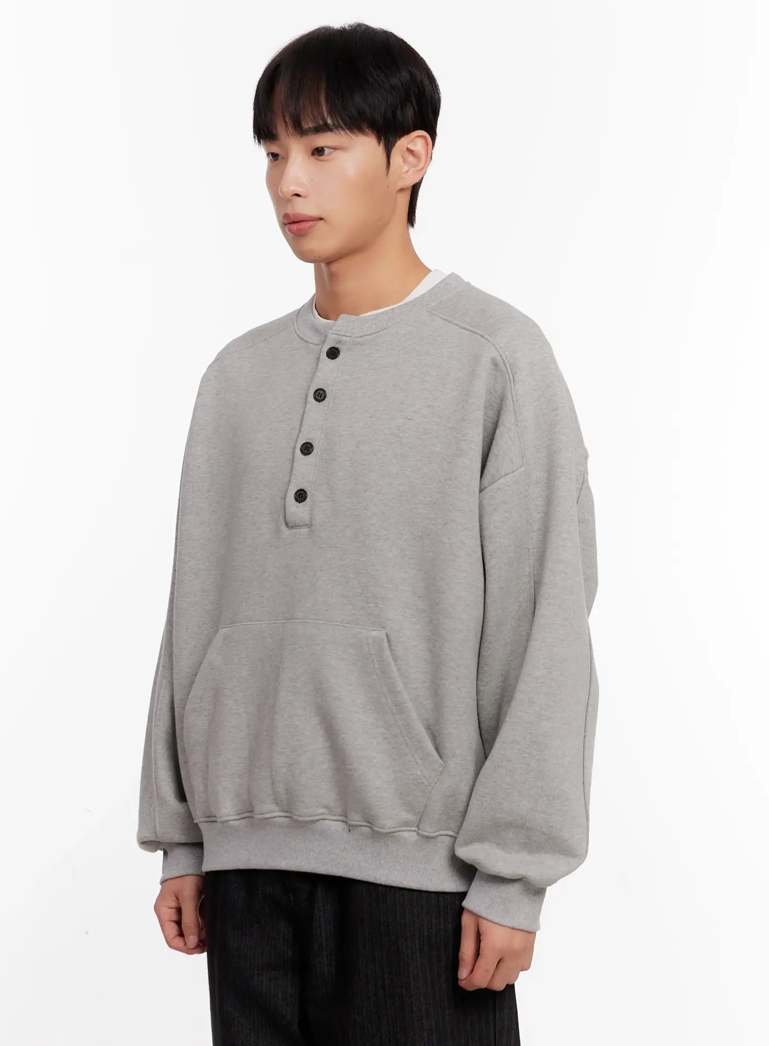Men's Oversized Henley Neck Sweatshirt IO523