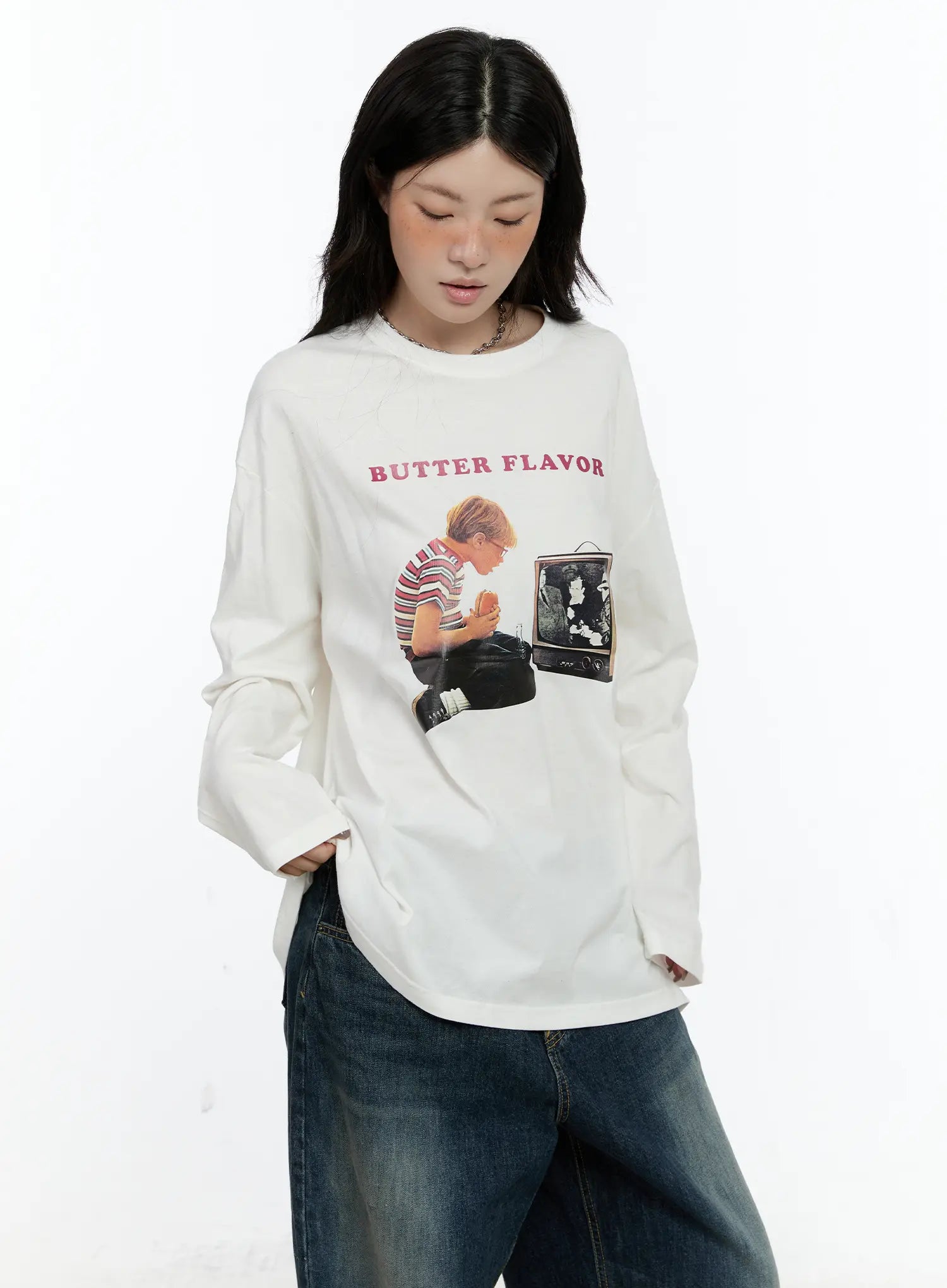 Oversized Graphic Long Sleeve Top CN517