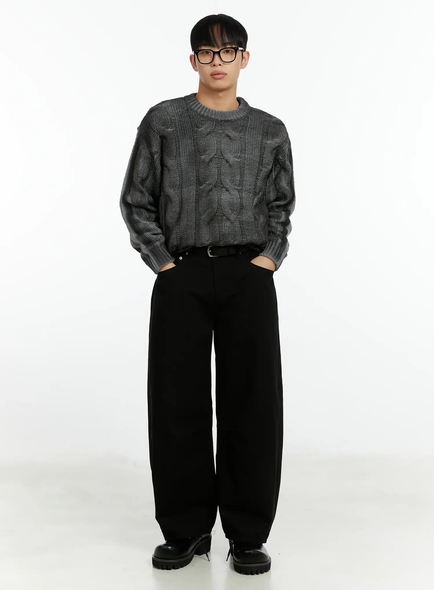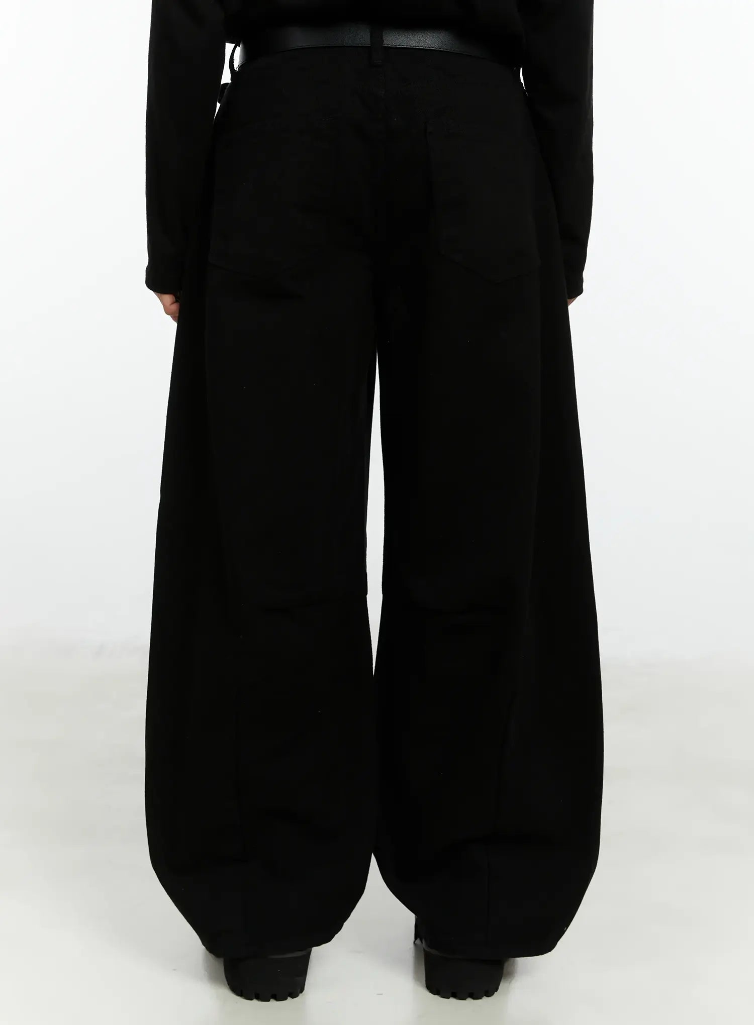 Men's Black Curved Fit Wide Cotton Pants IF511