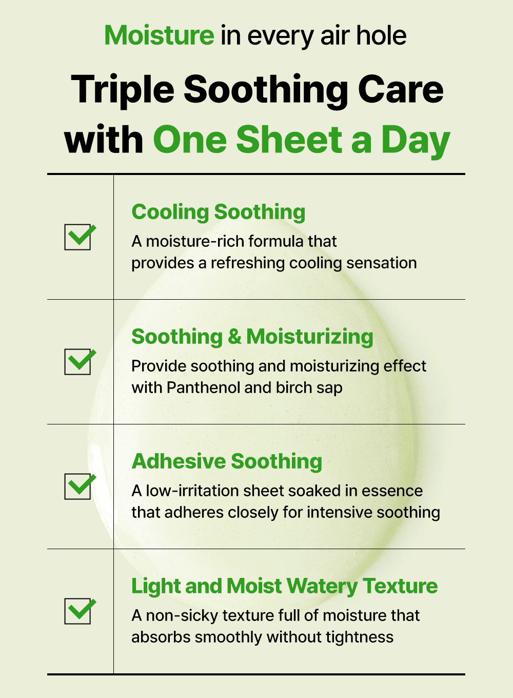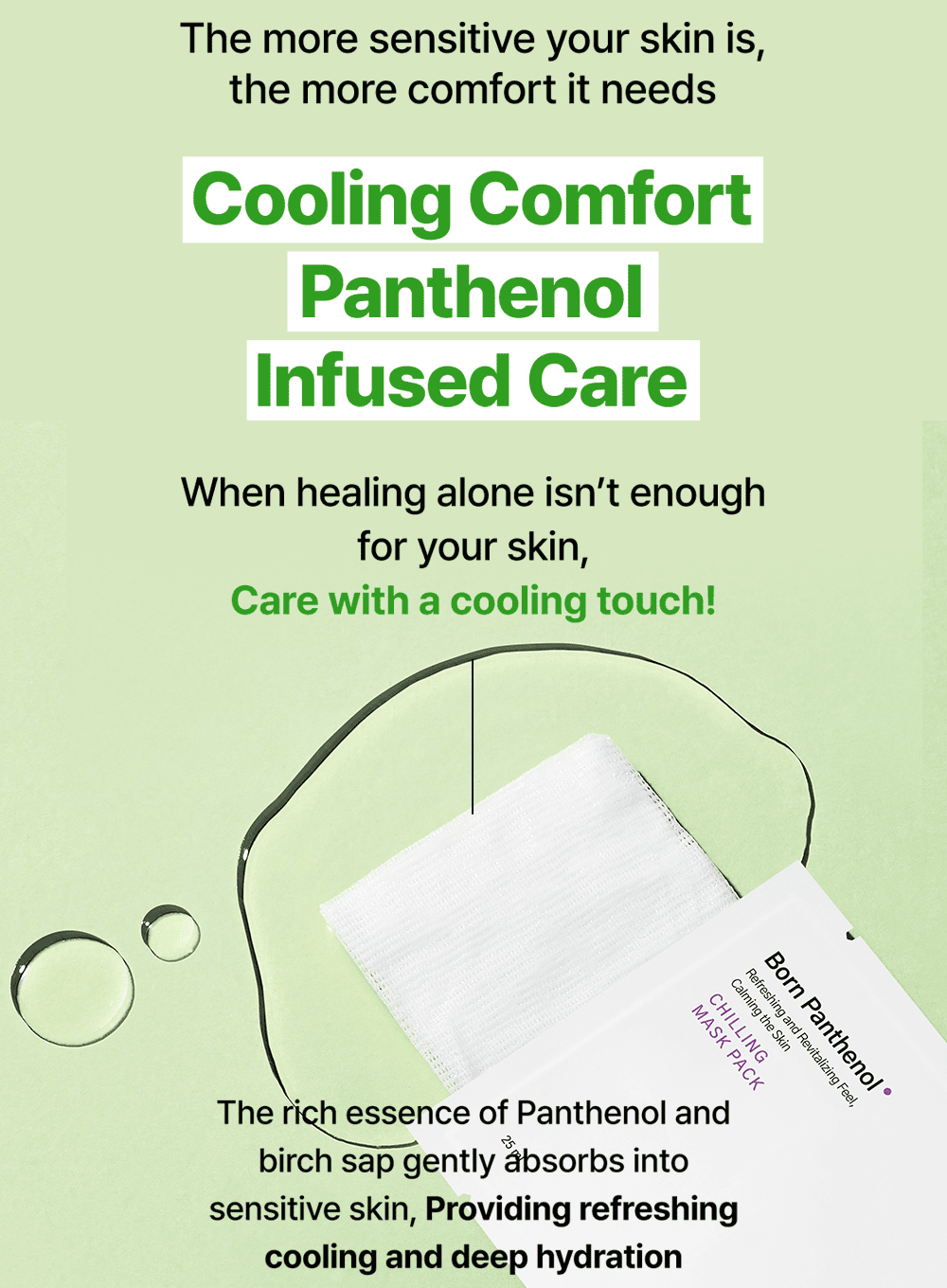 A cooling mask infused with high-purity panthenol for intense hydration and soothing effects.