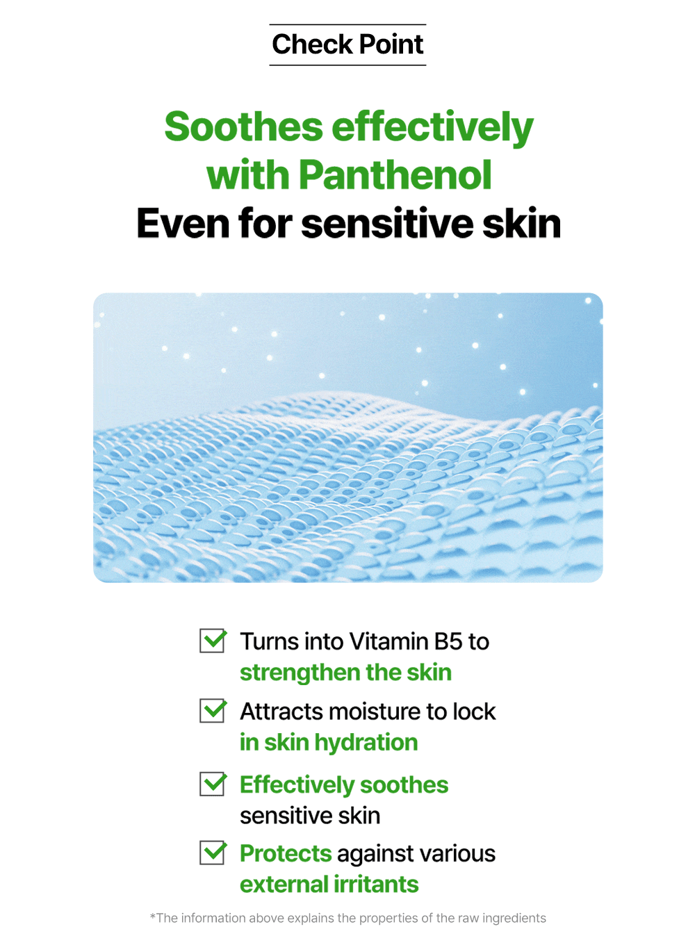 - Contains 10,000ppm of high-purity panthenol, providing intense hydration while soothing irritated skin.