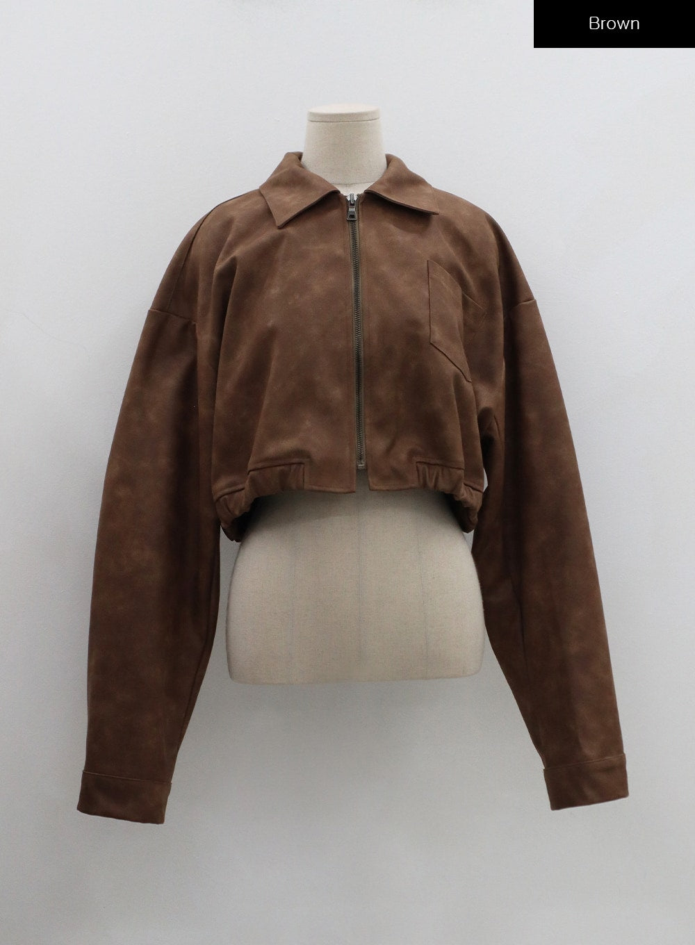 Faux Leather Zipp-Up Jumper Jacket BO24