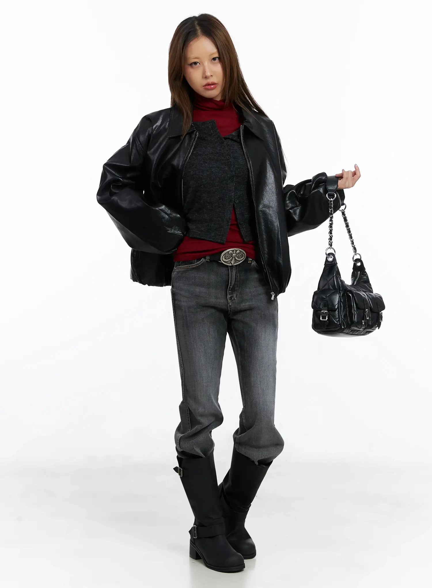 Oversized Faux Leather Jacket IN528