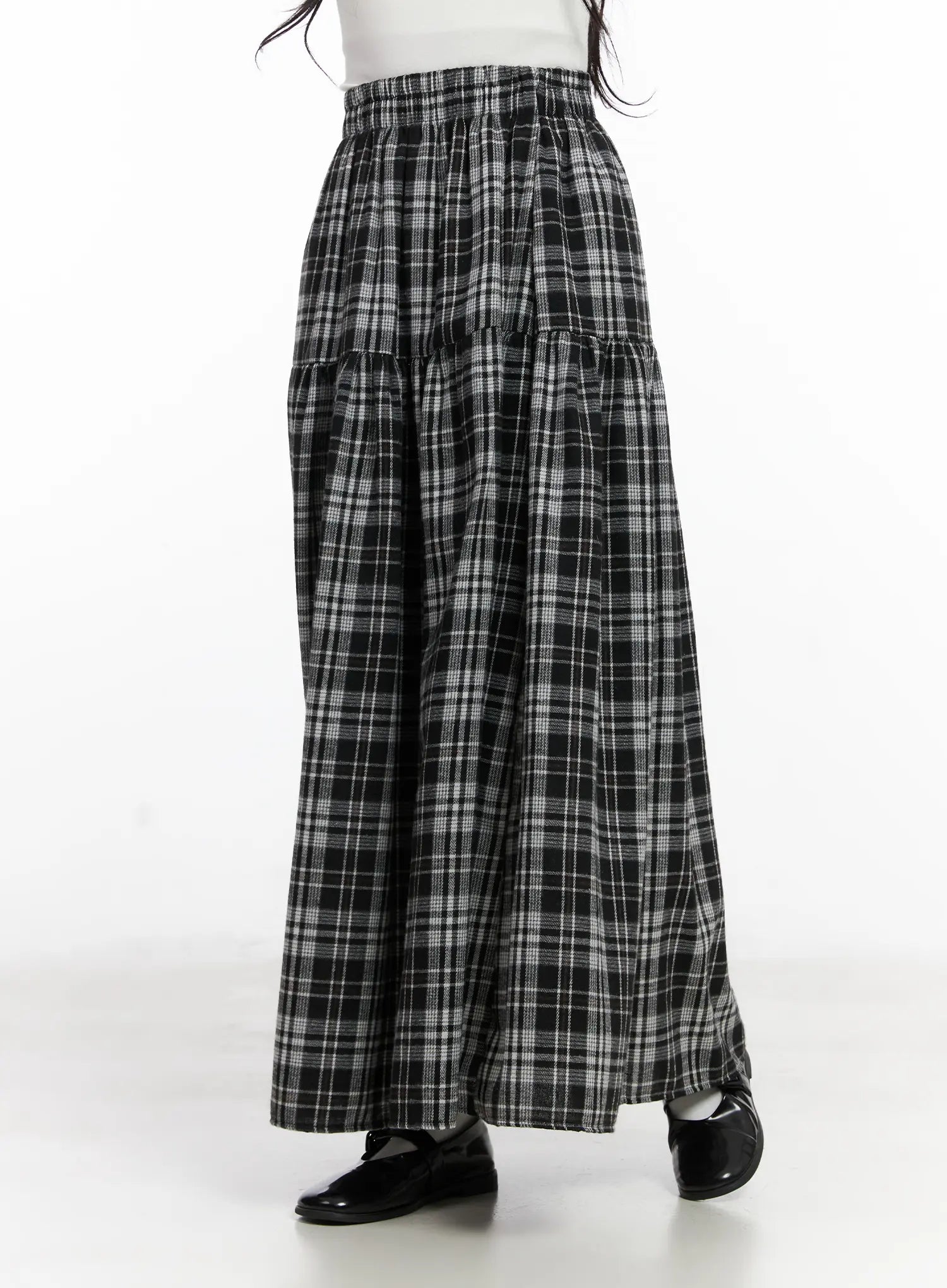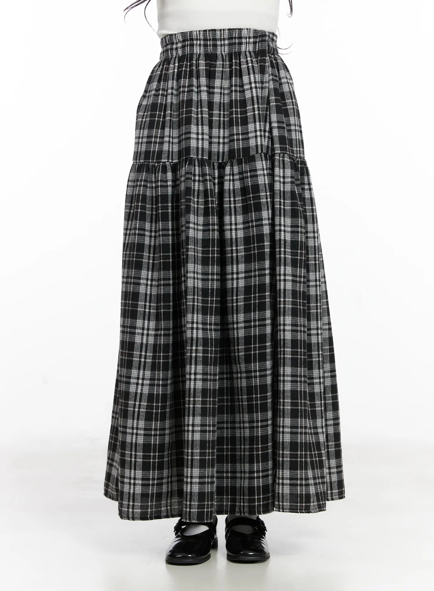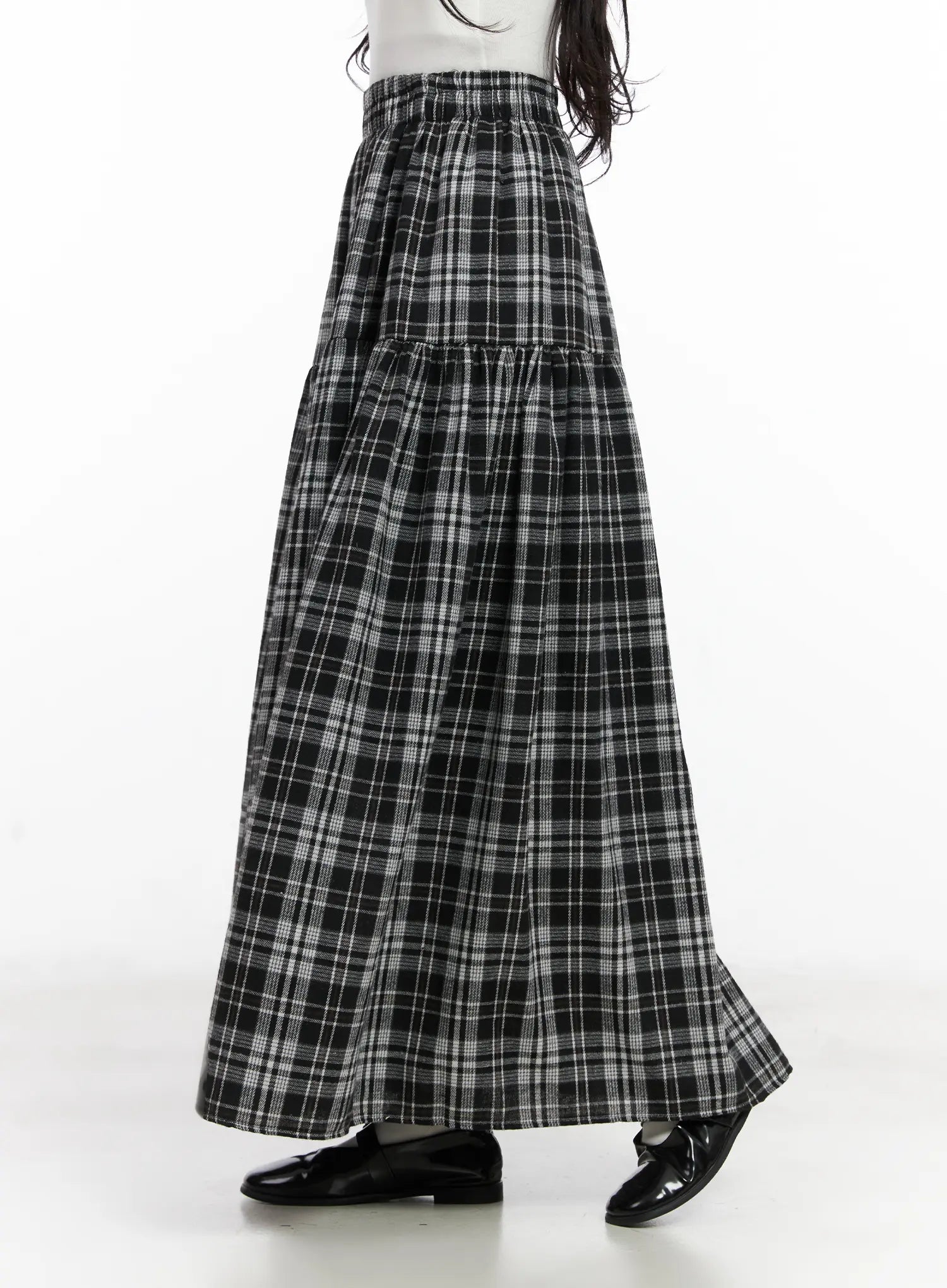 Plaid Frill Maxi Skirt CN527