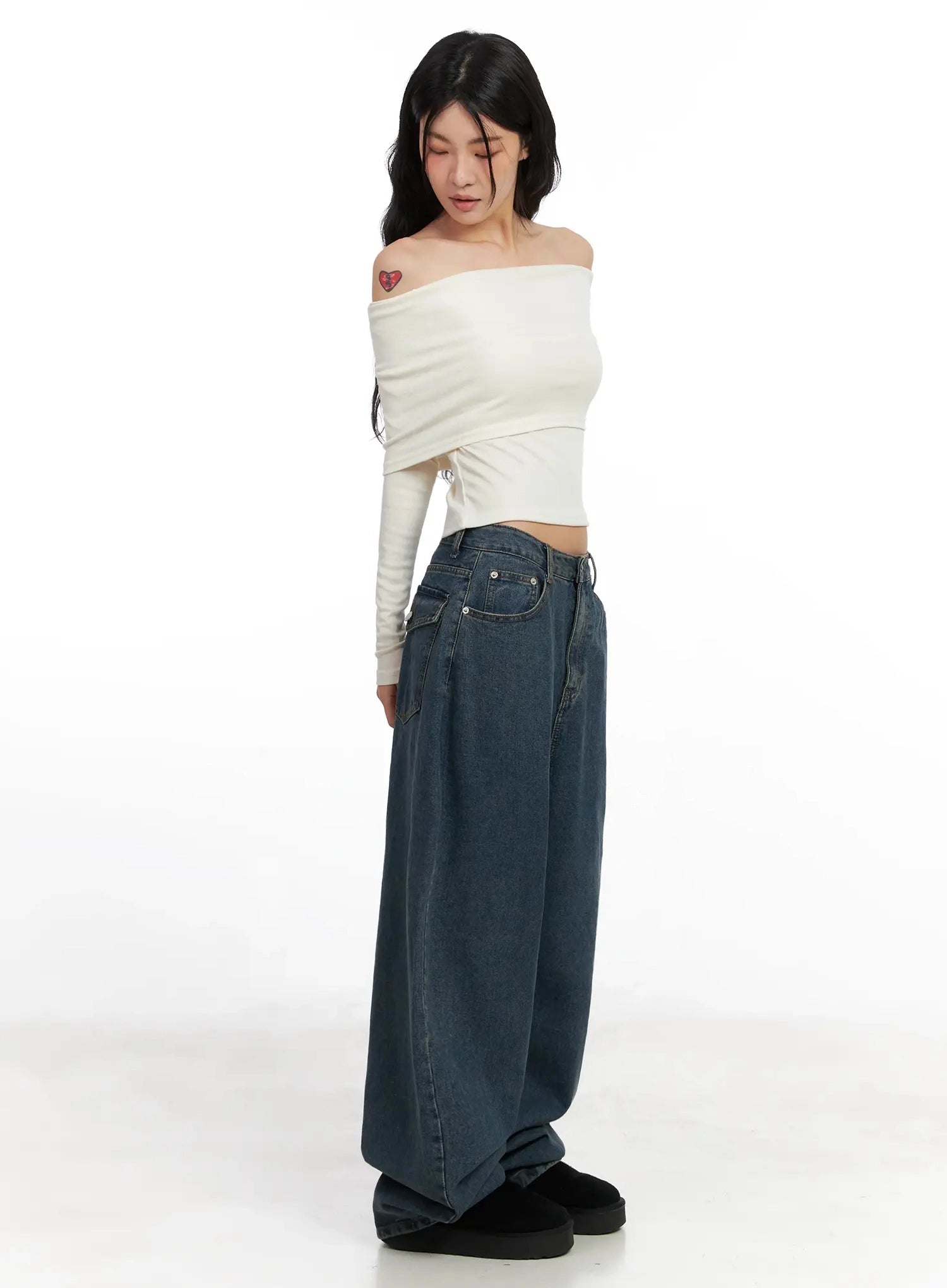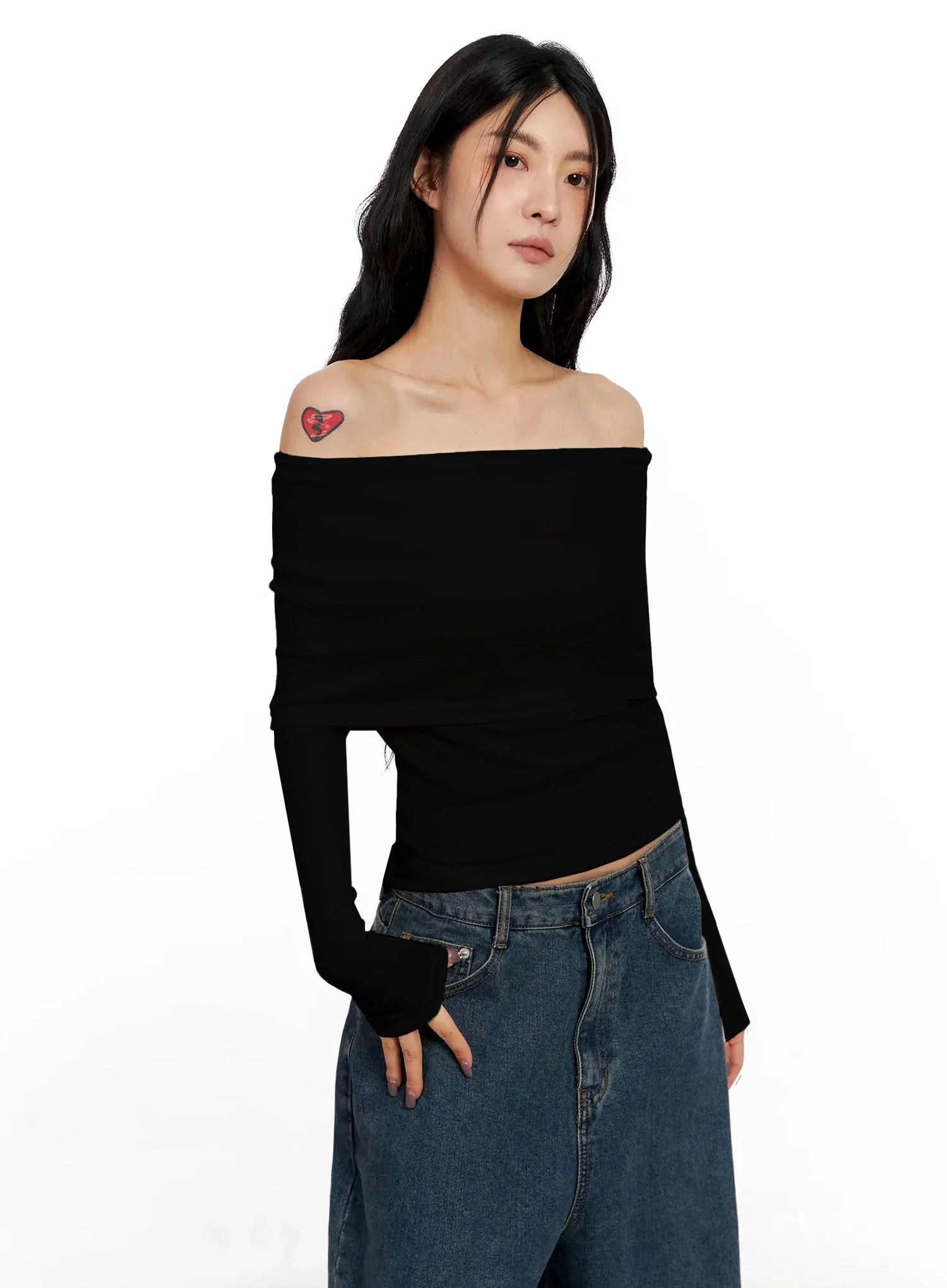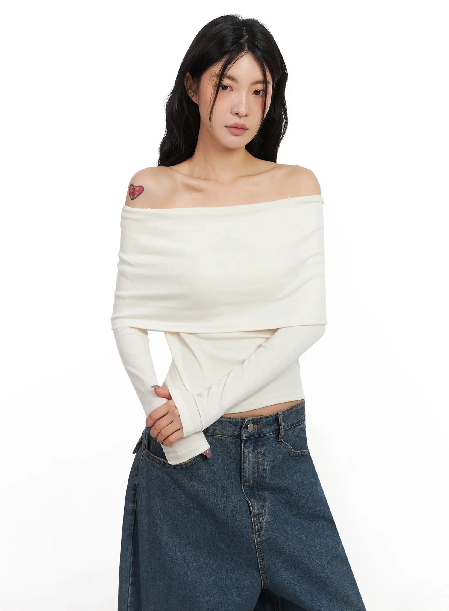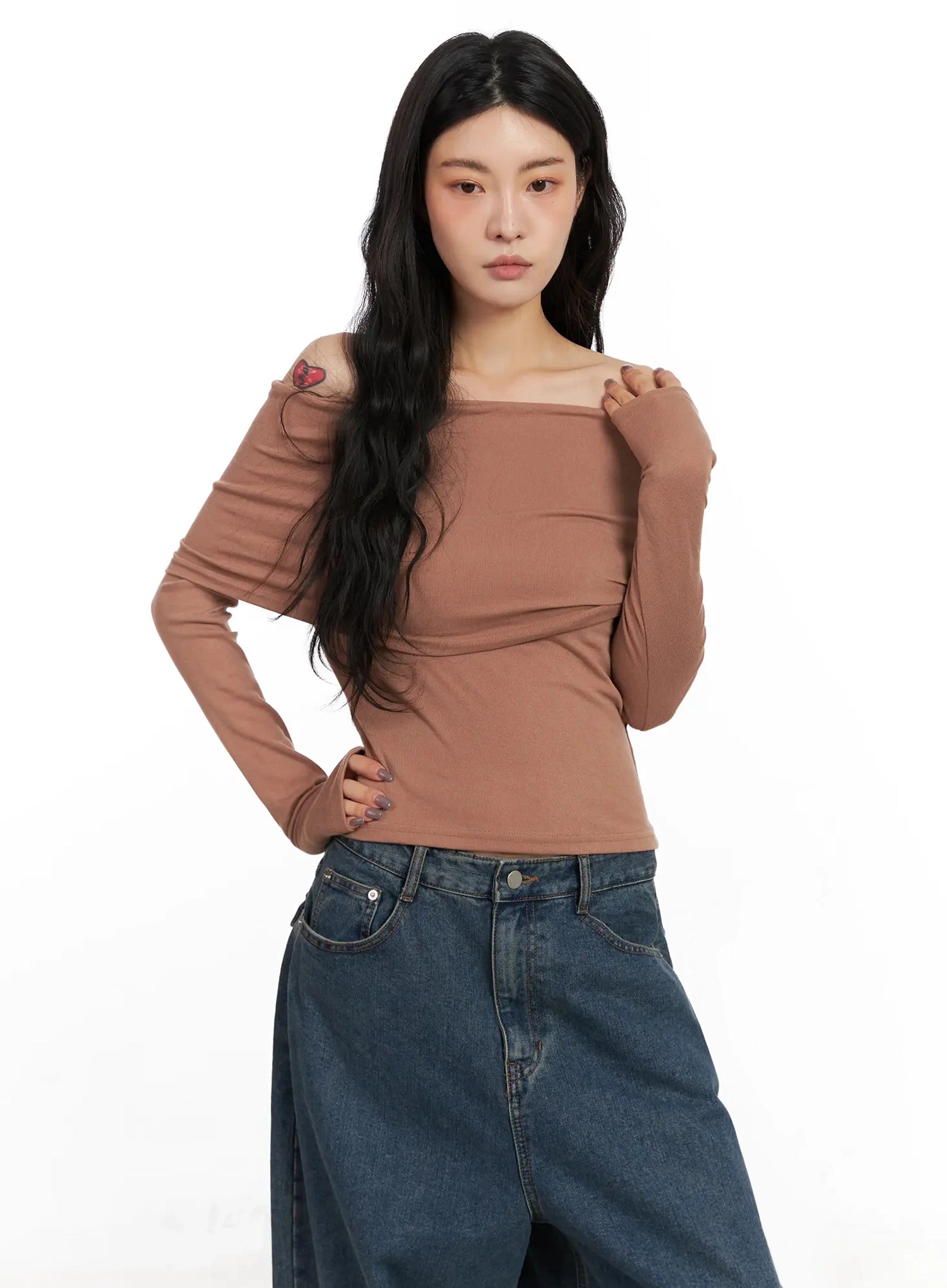 Slim Off-Shoulder Long Sleeve Tee IN528
