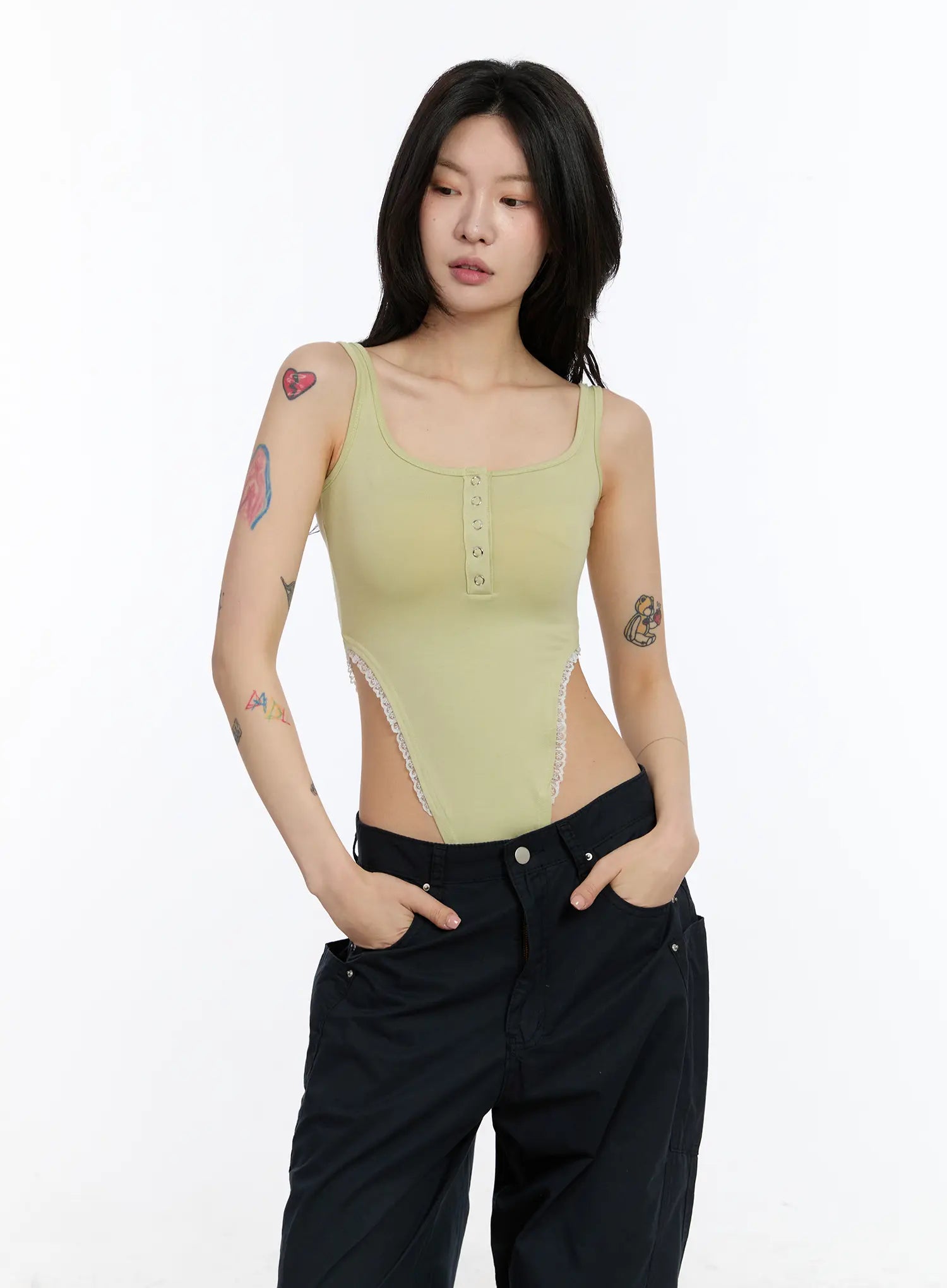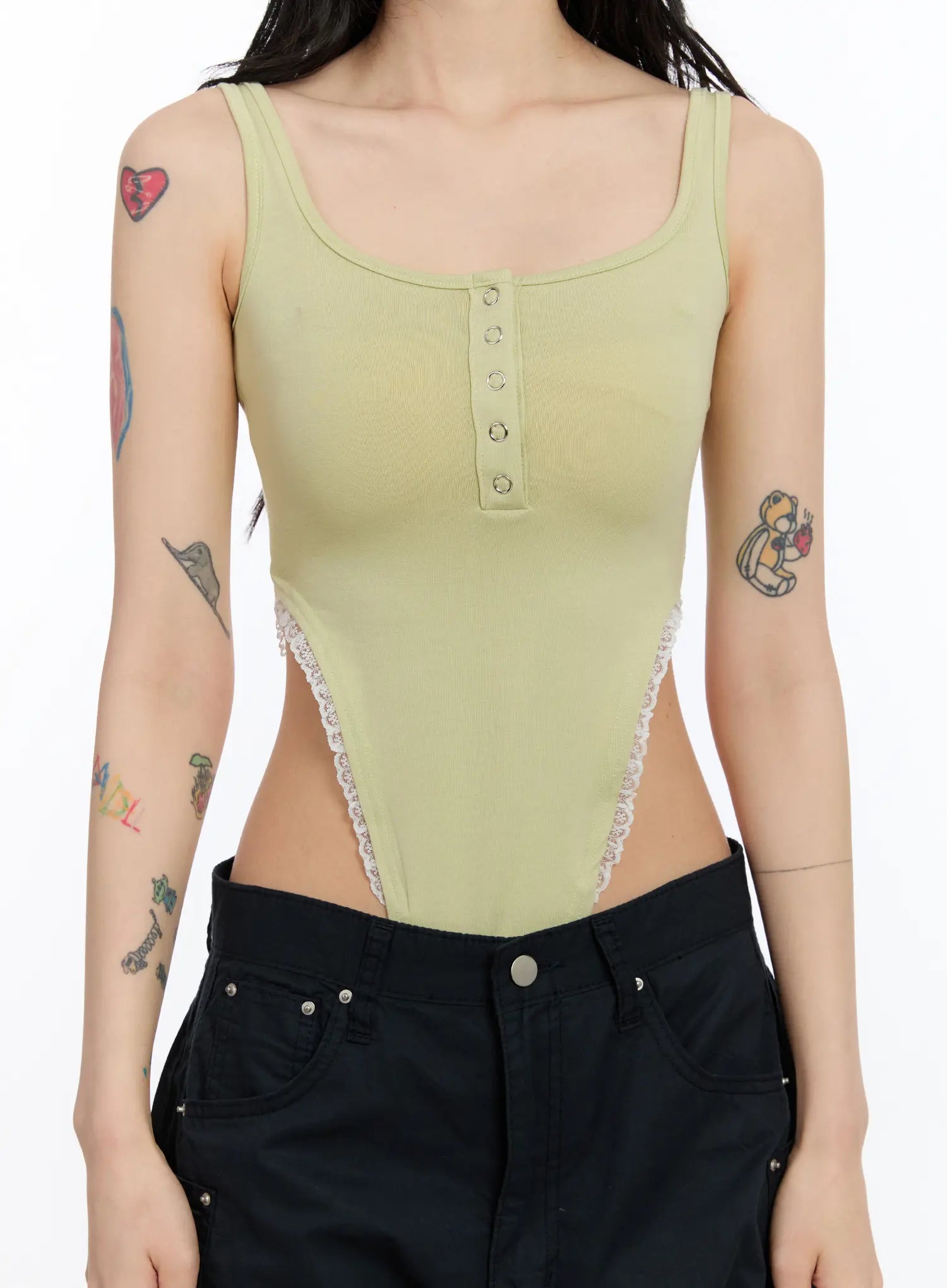 Lace Trim Henley Bodysuit CA507