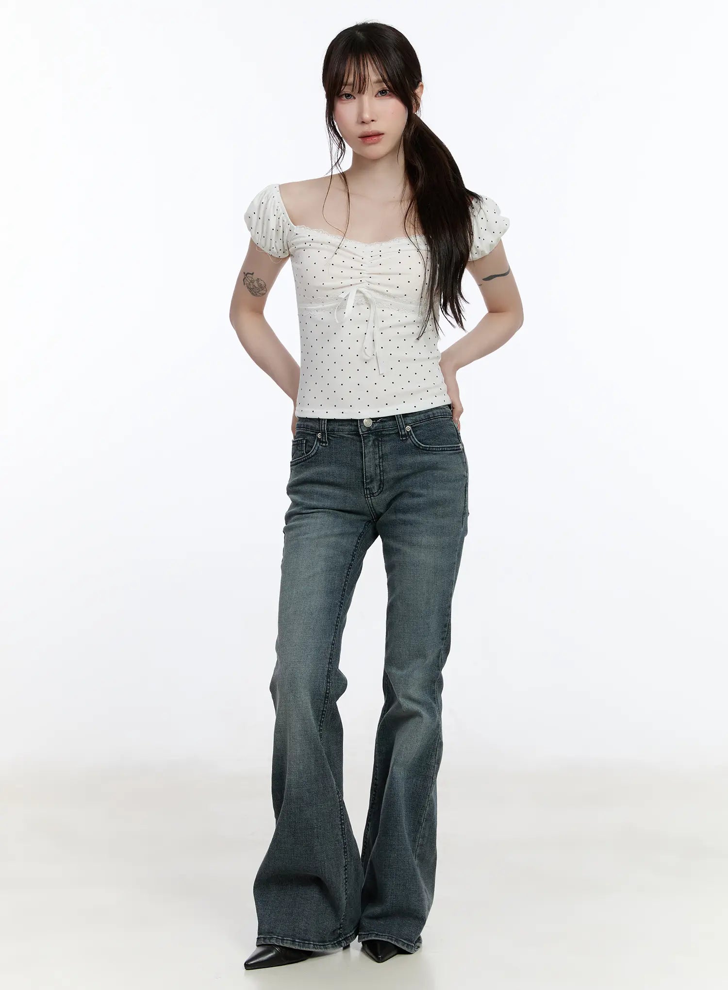 Sweetheart Polka Dot Puff-Sleeve Top CA501