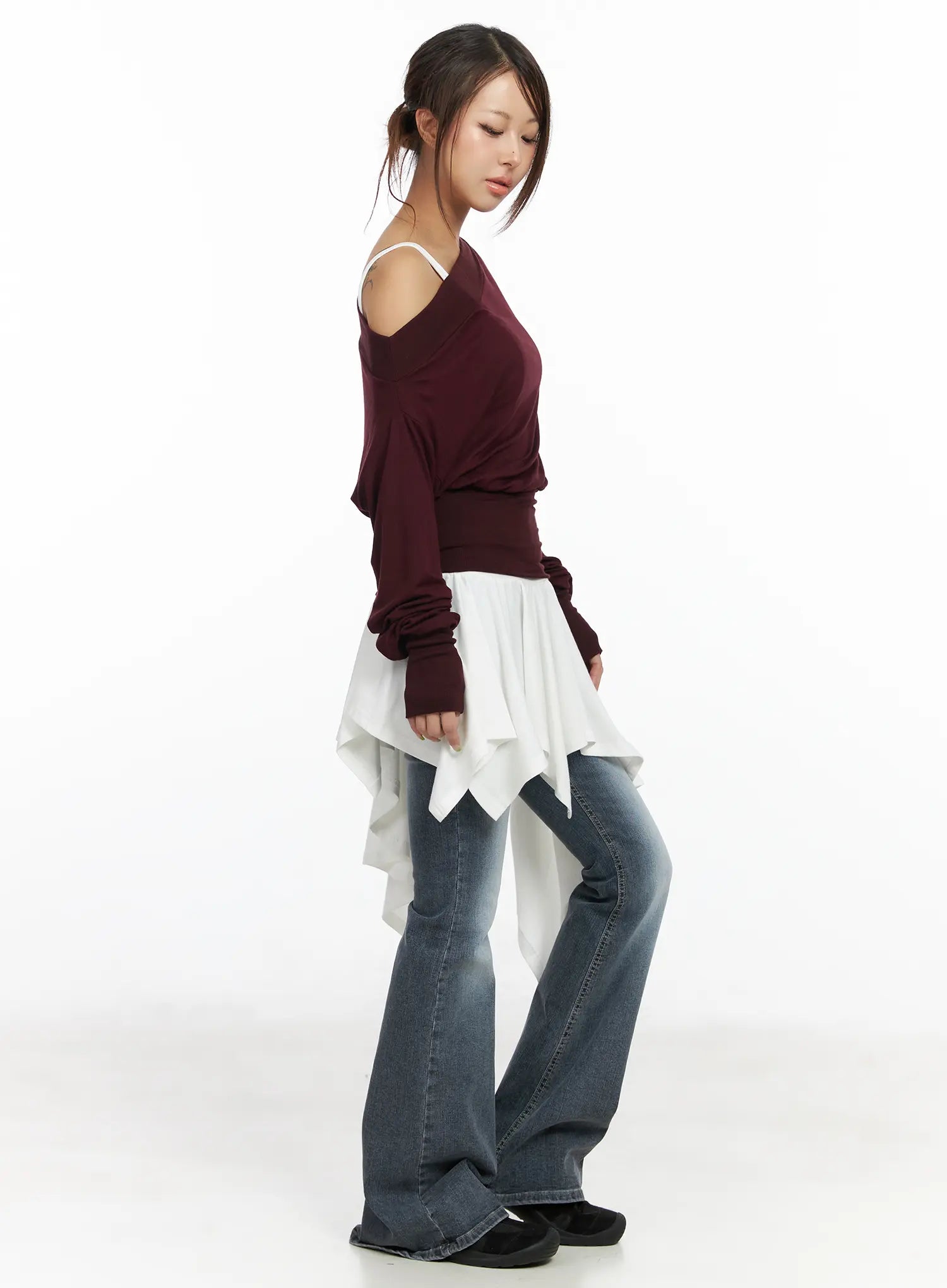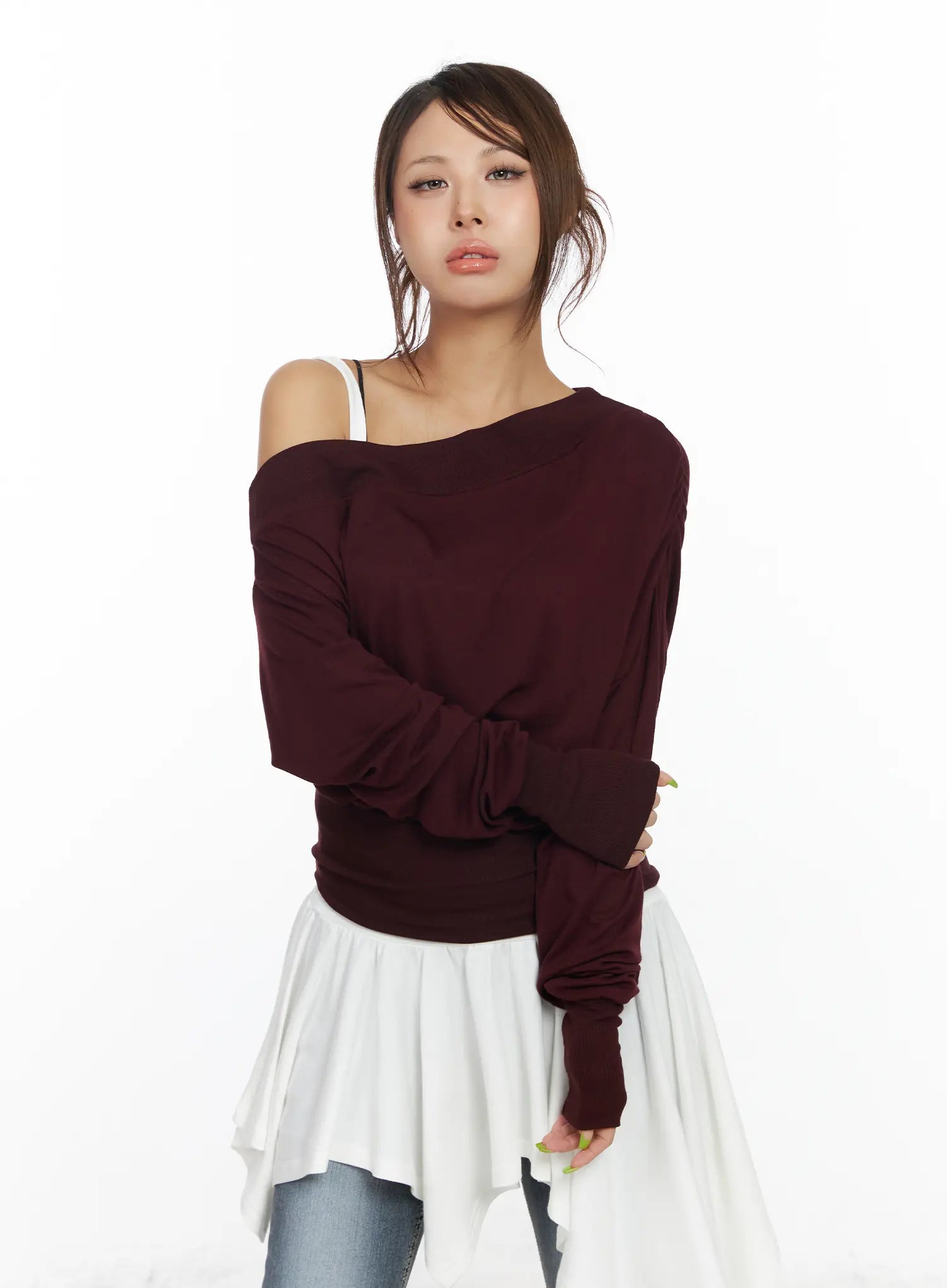 Asymmetric One-Shoulder Long Sleeve Top CF513