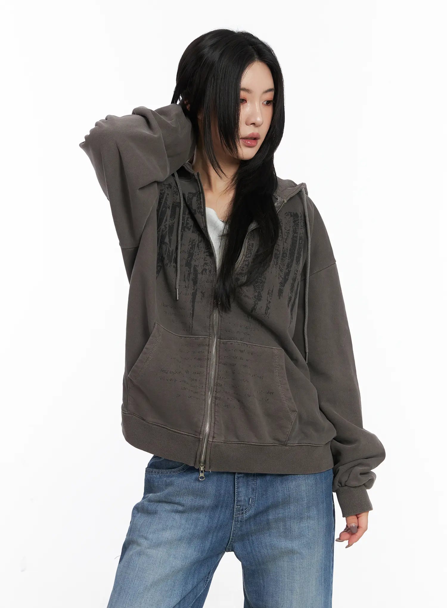 Oversized Pigment Print Zip-Up Hoodie CD505
