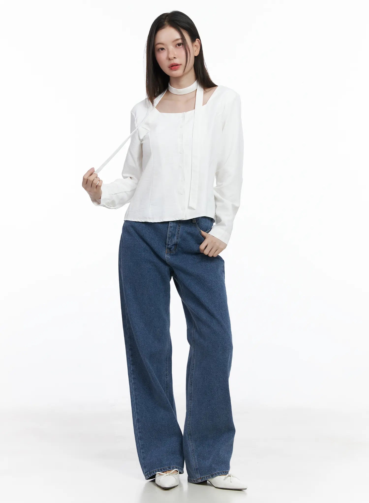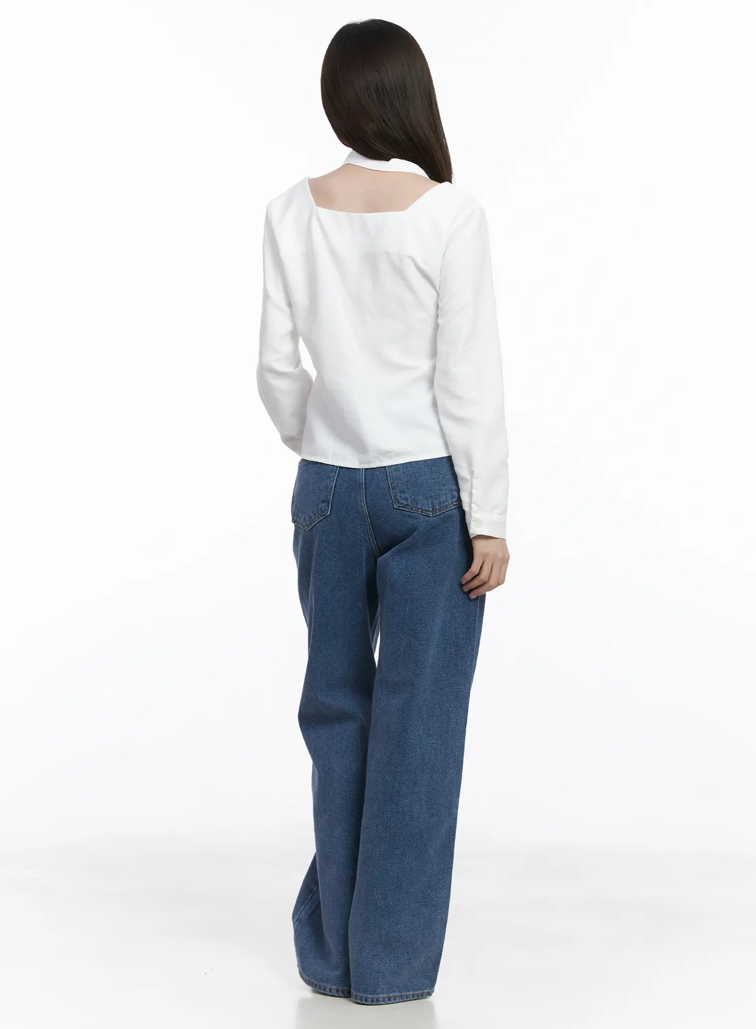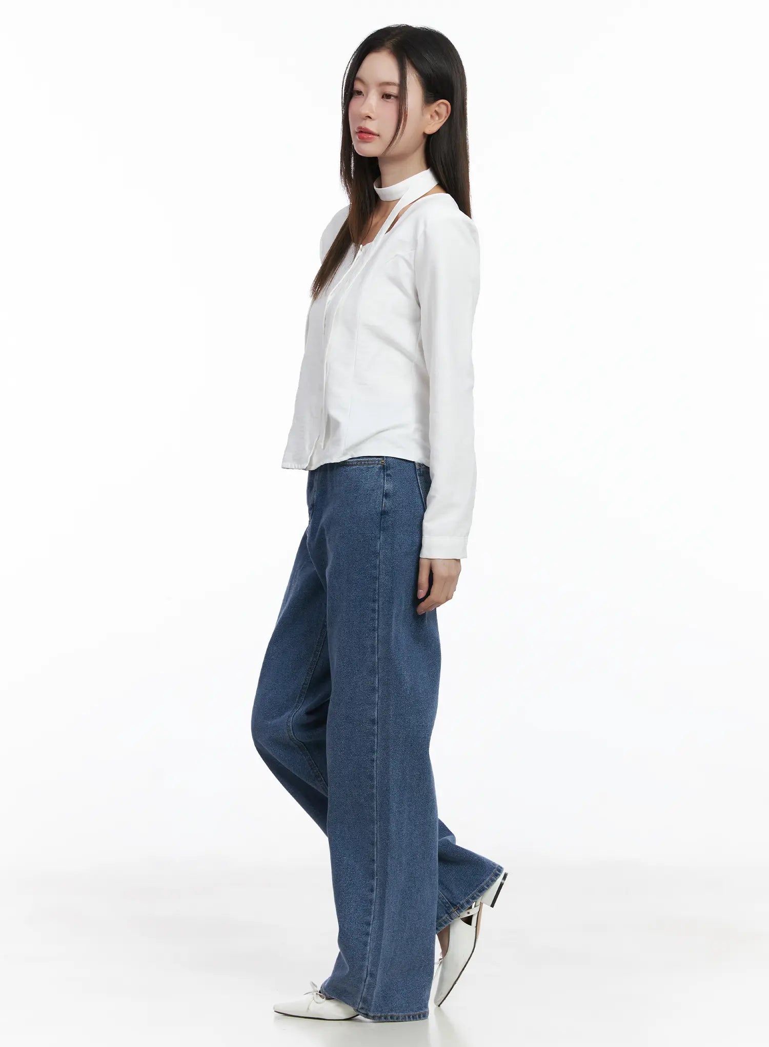 Ashlyn High-Waist Fleece-Lined Wide-Leg Jeans CJ507
