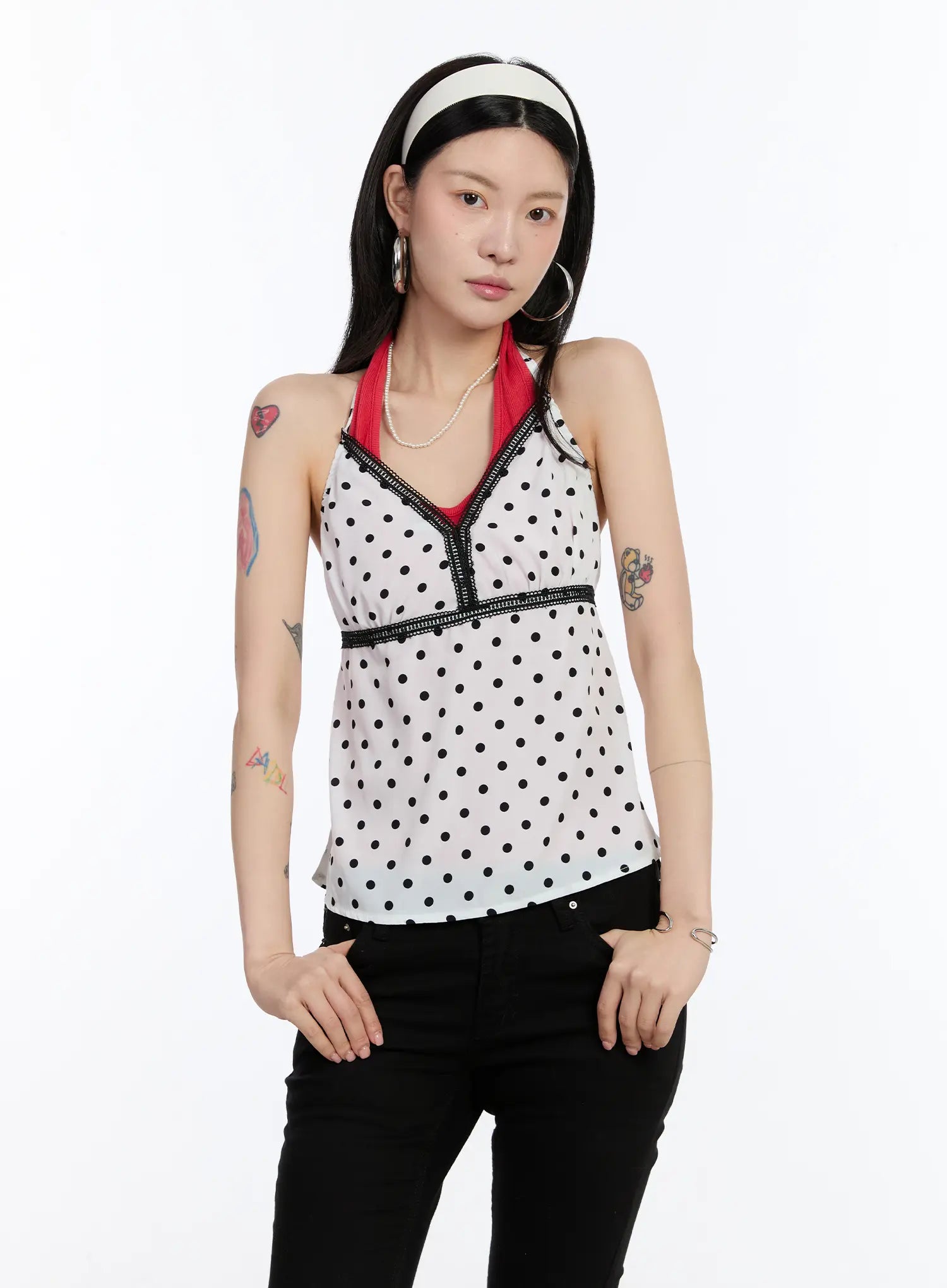Lace Trim Polka Dot Halter Top CA507