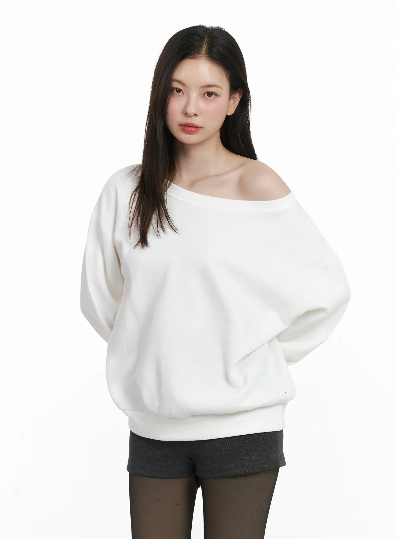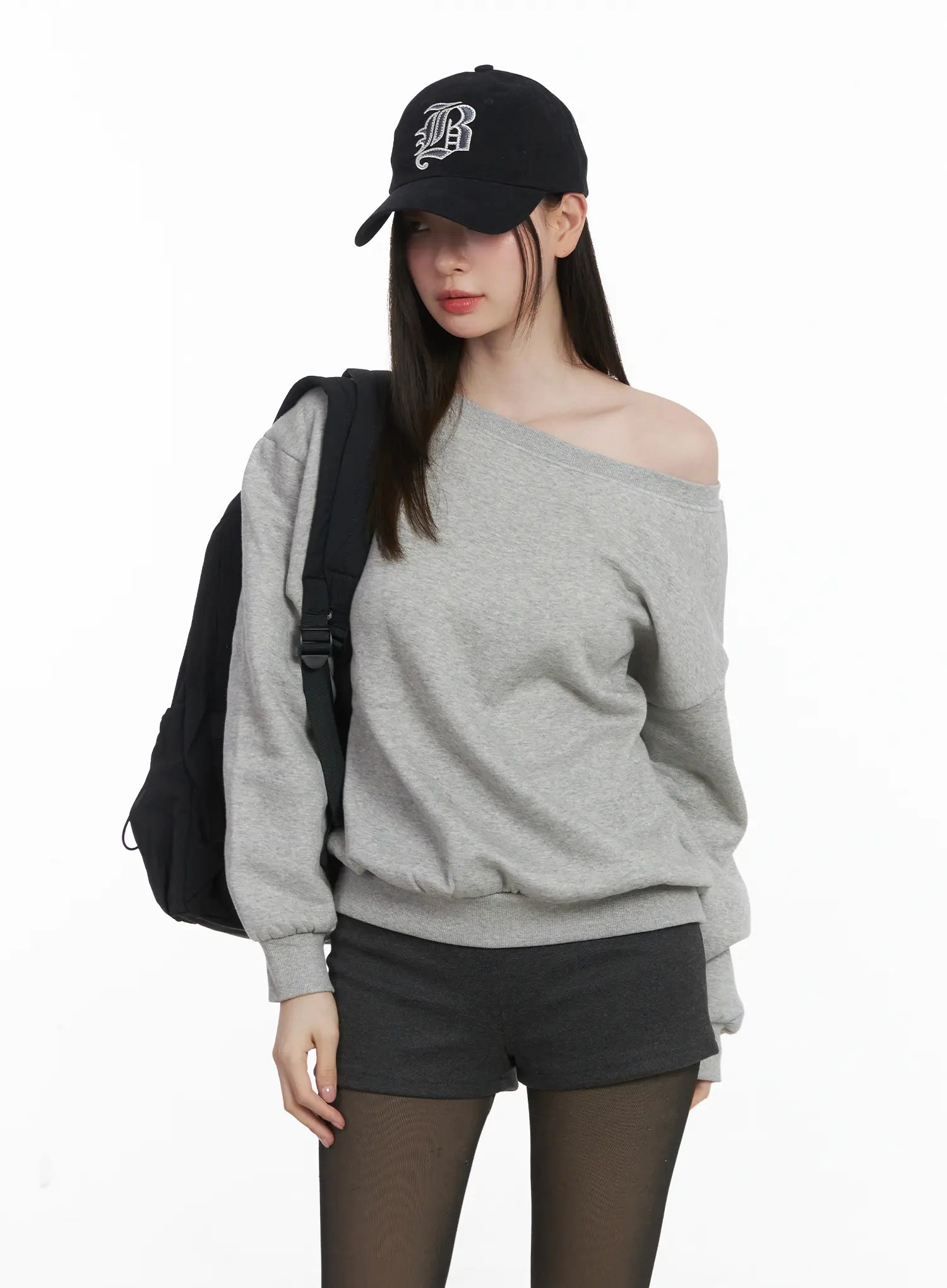 Loose-Fit Off-Shoulder Fleece Lined Sweatshirt CJ507