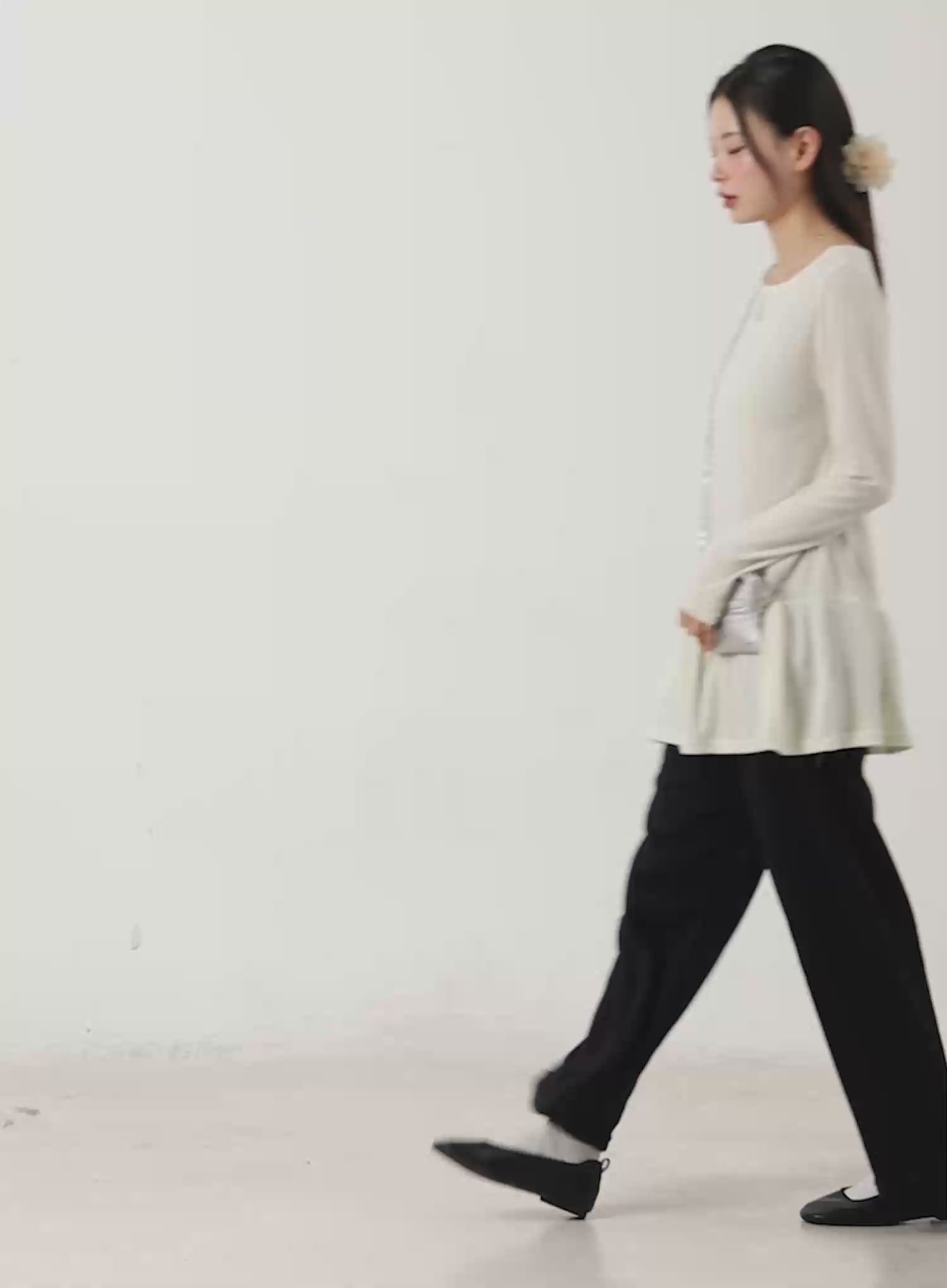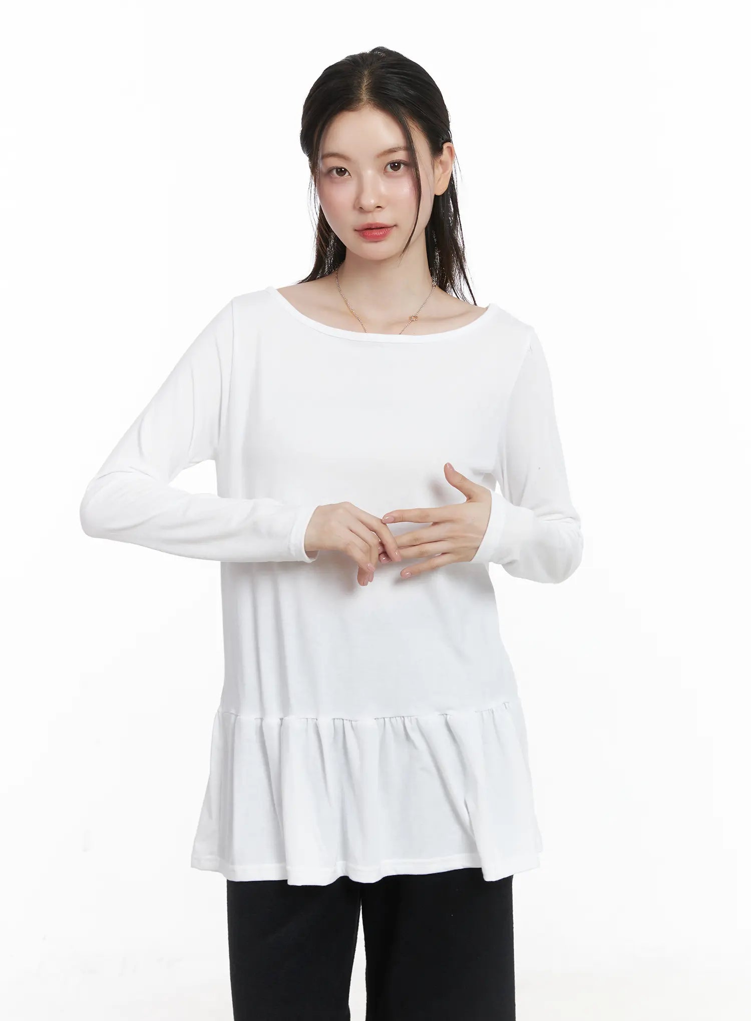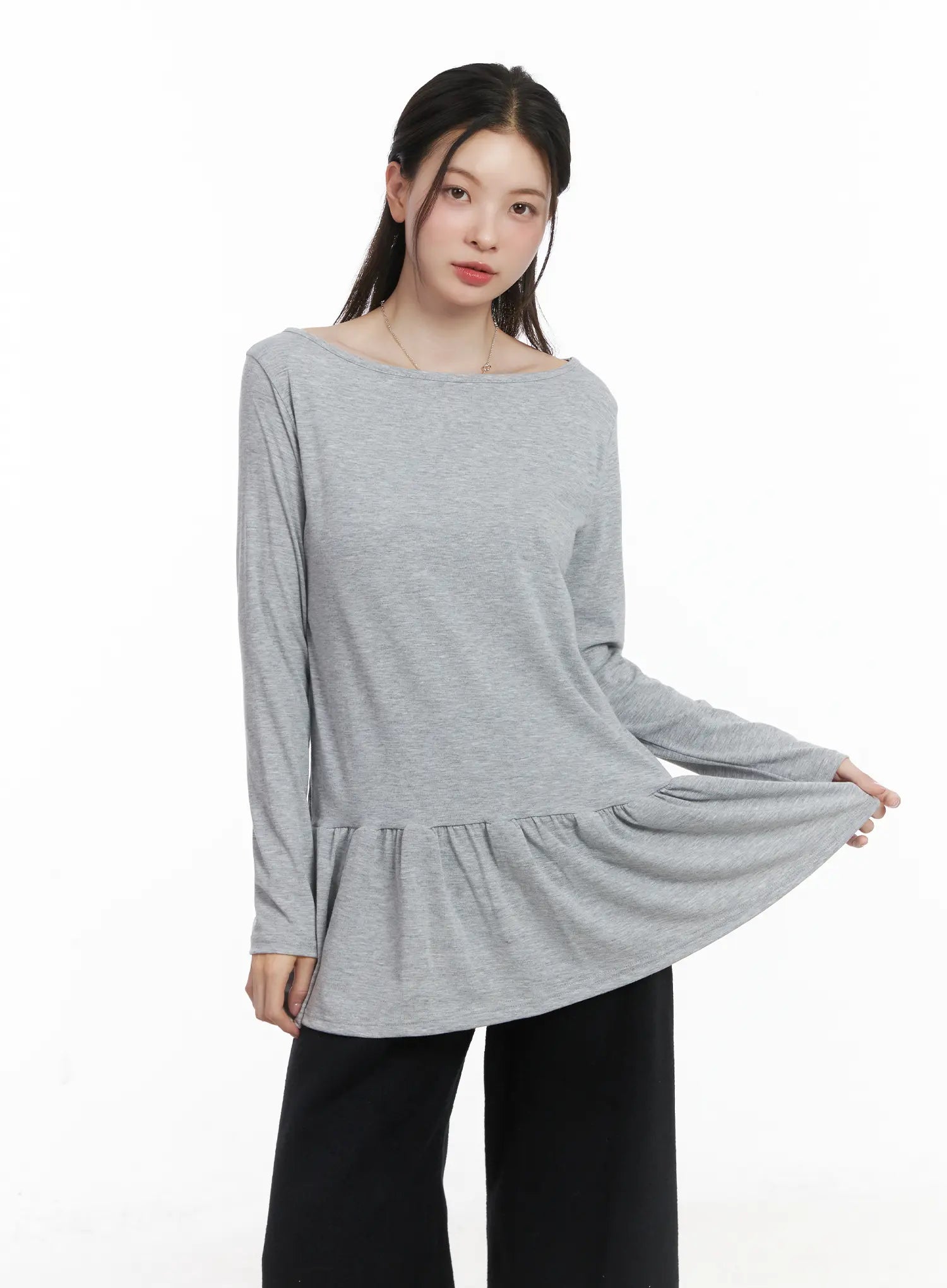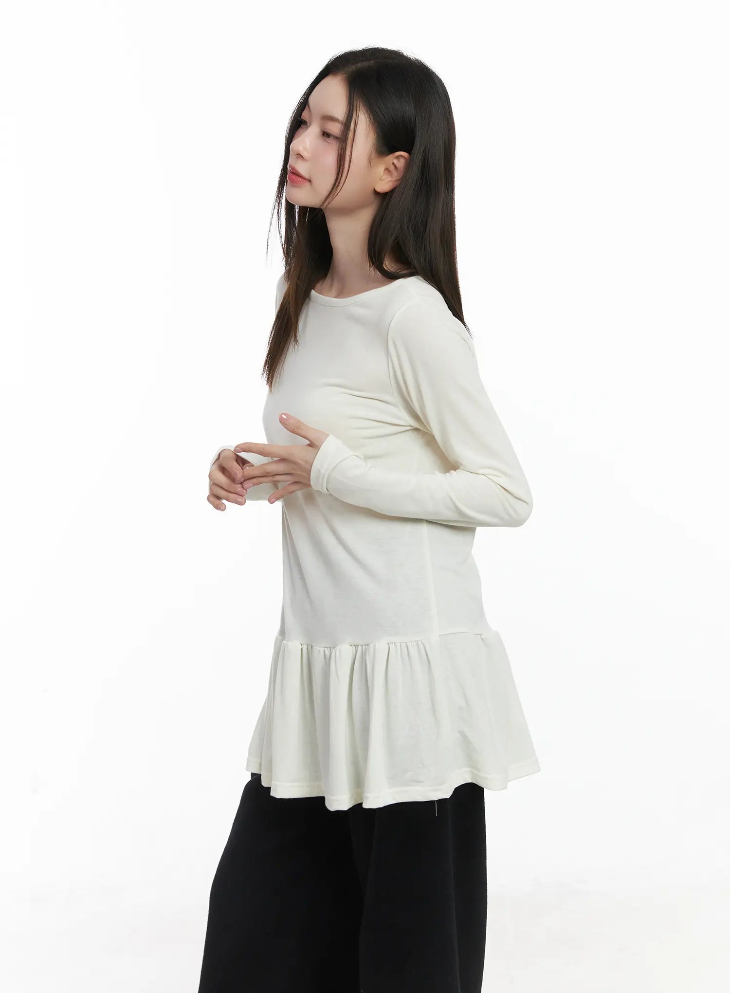 Ruffle Hem Loose Long Sleeve Top CJ506