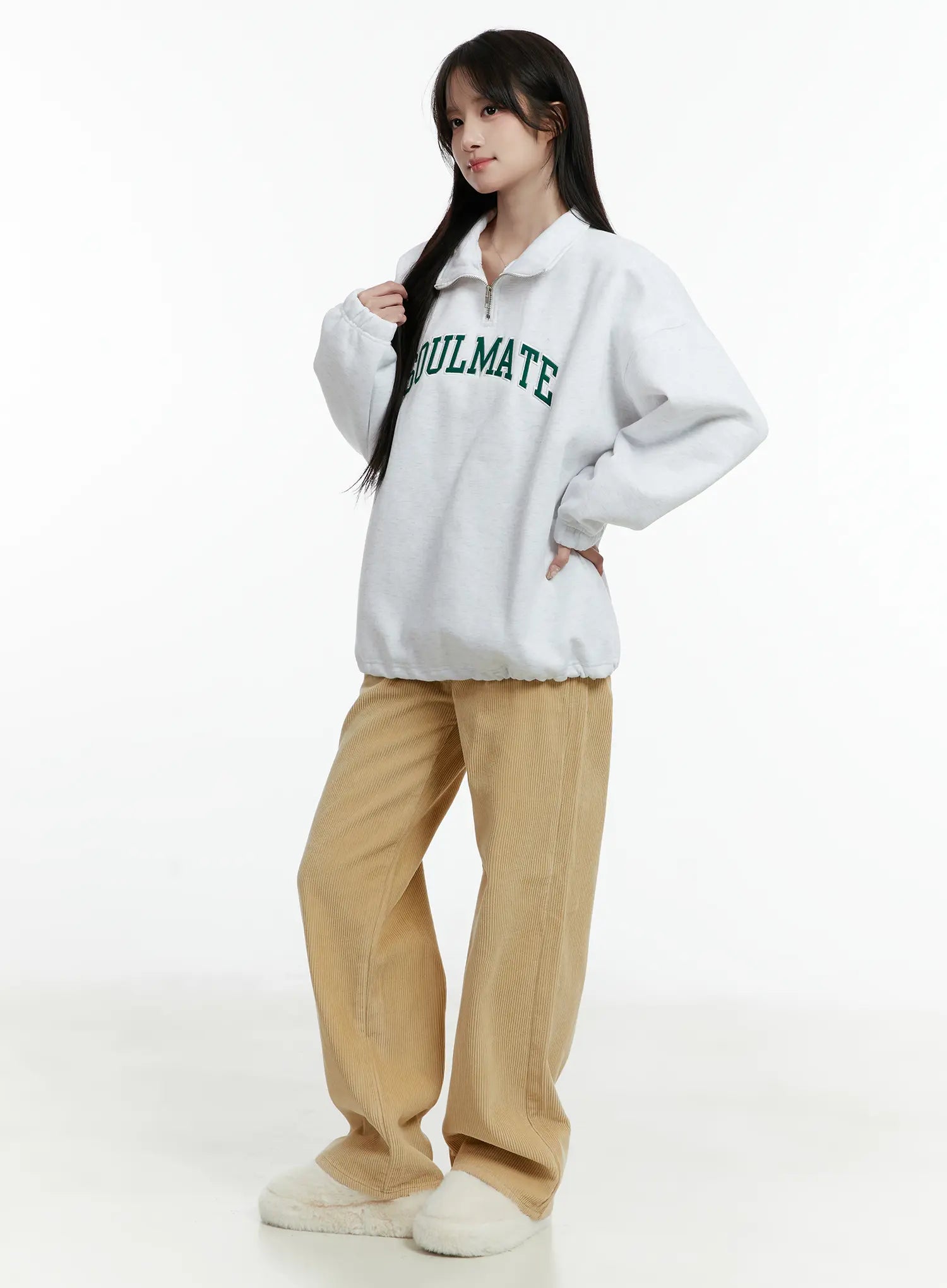Fleece-Lined Corduroy Wide-Leg Cotton Pants CD523