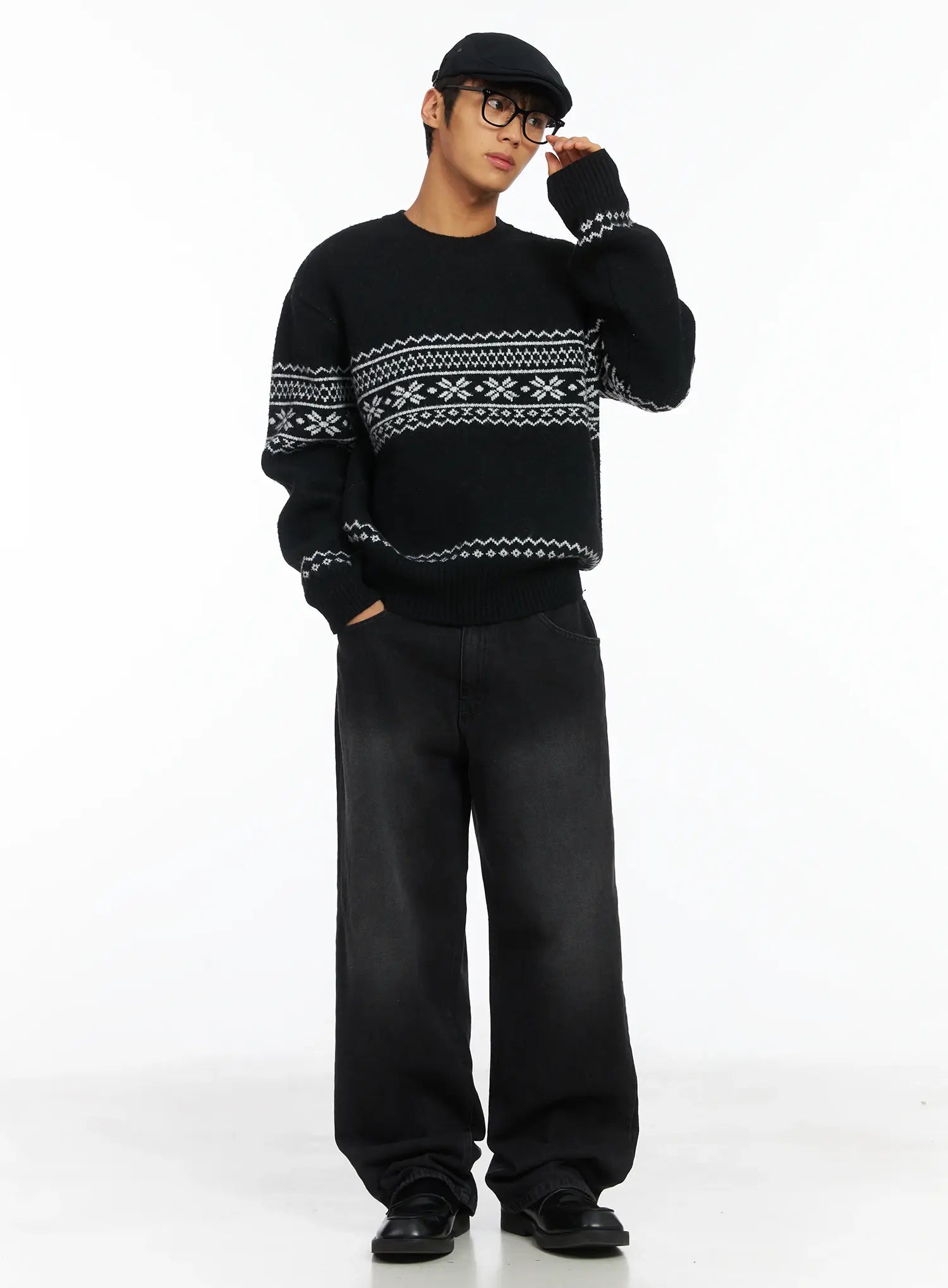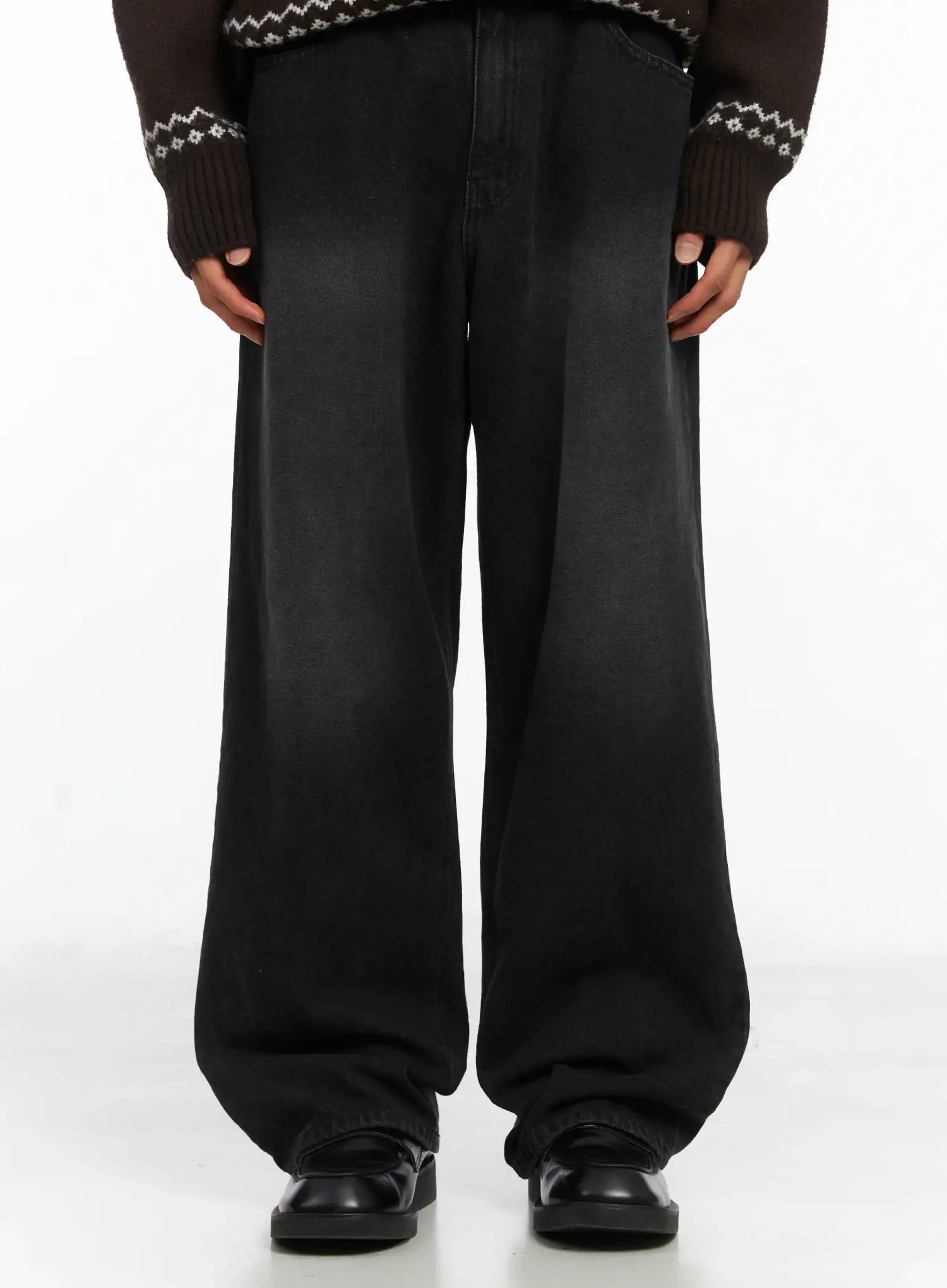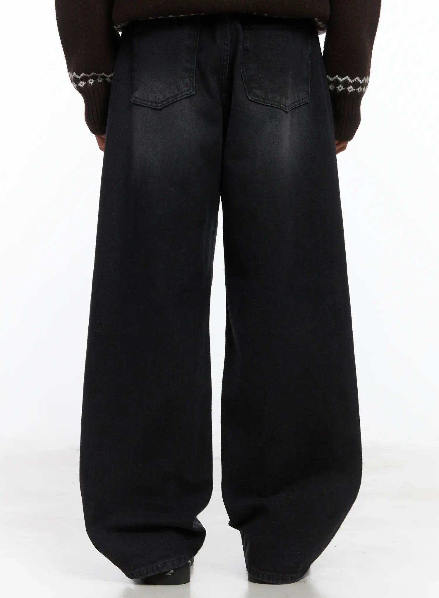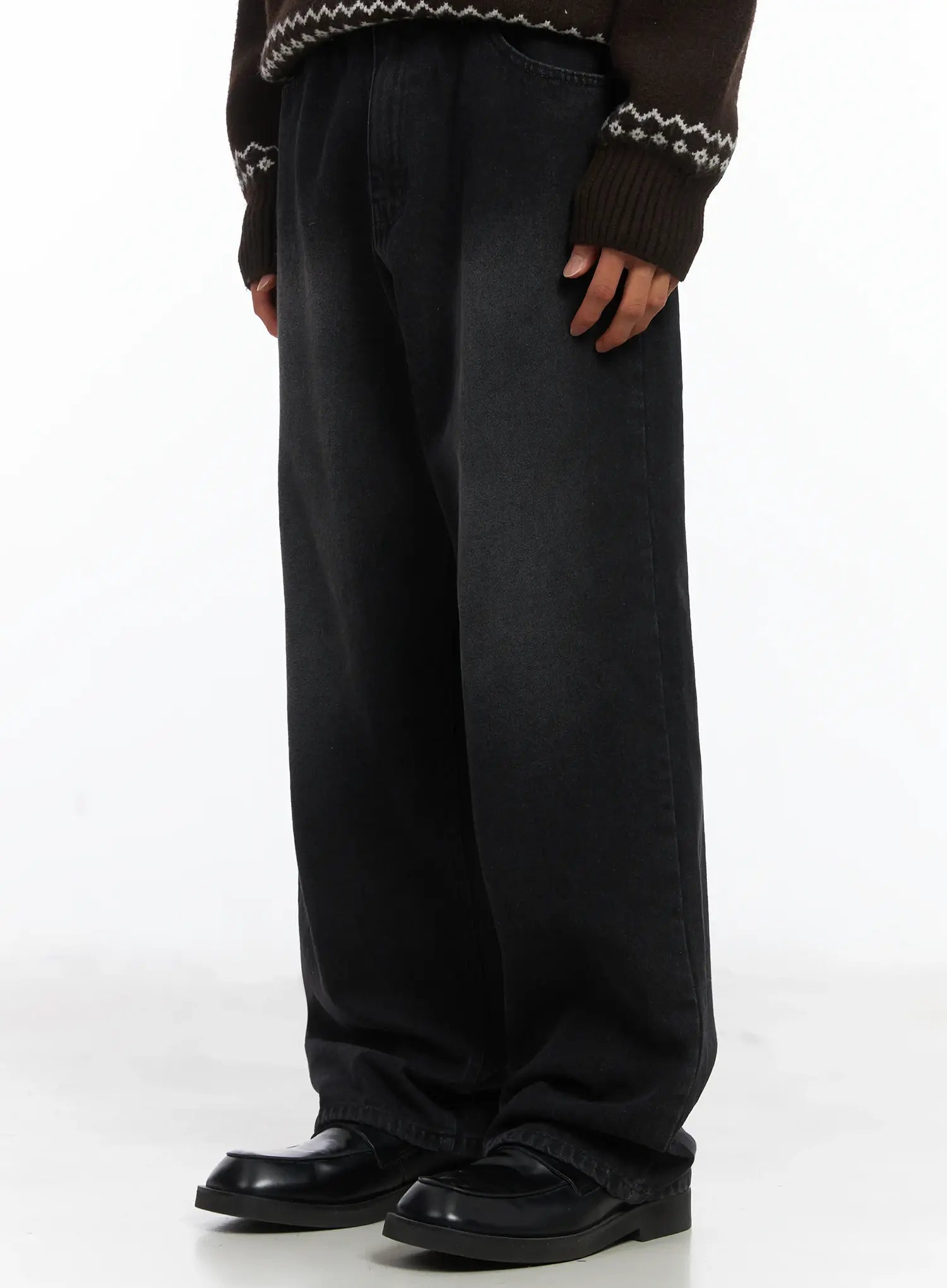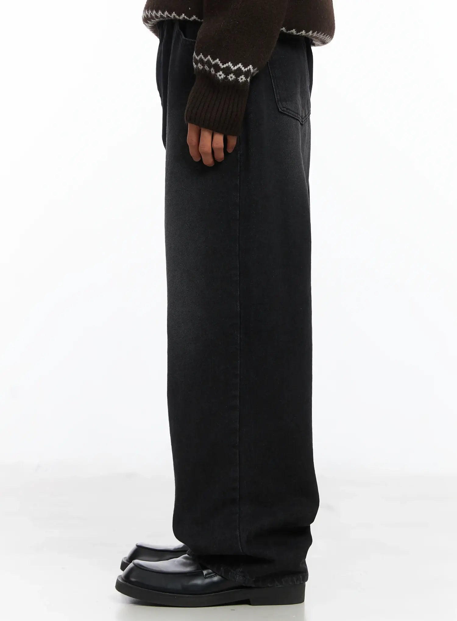 Men's Straight Semi-Wide Fleece Jeans (Black) IJ514
