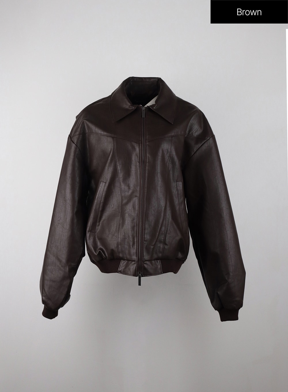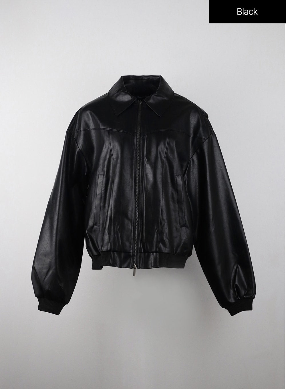 Zip-Up Faux Leather Bomber Jacket IJ403